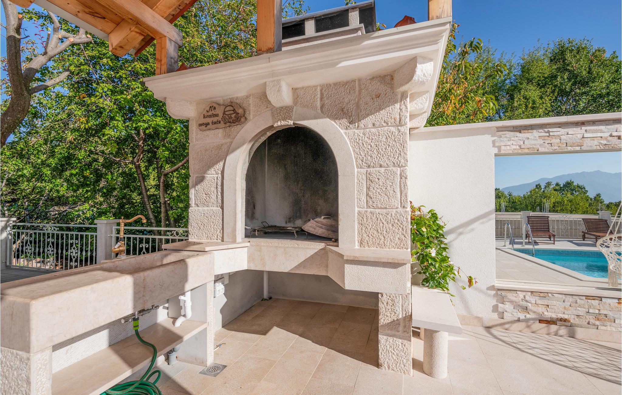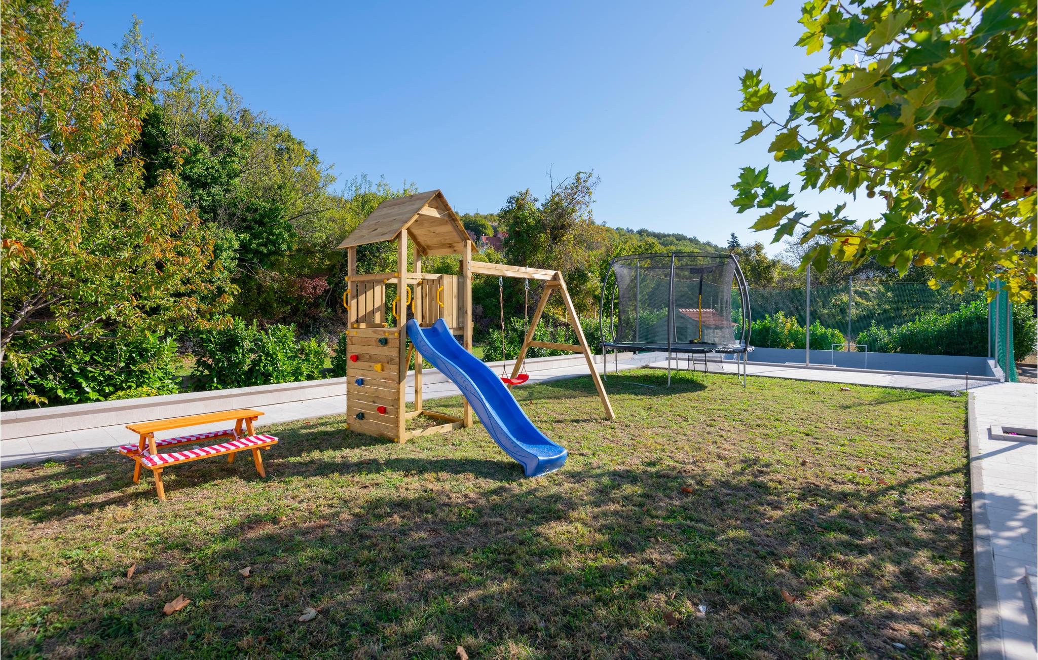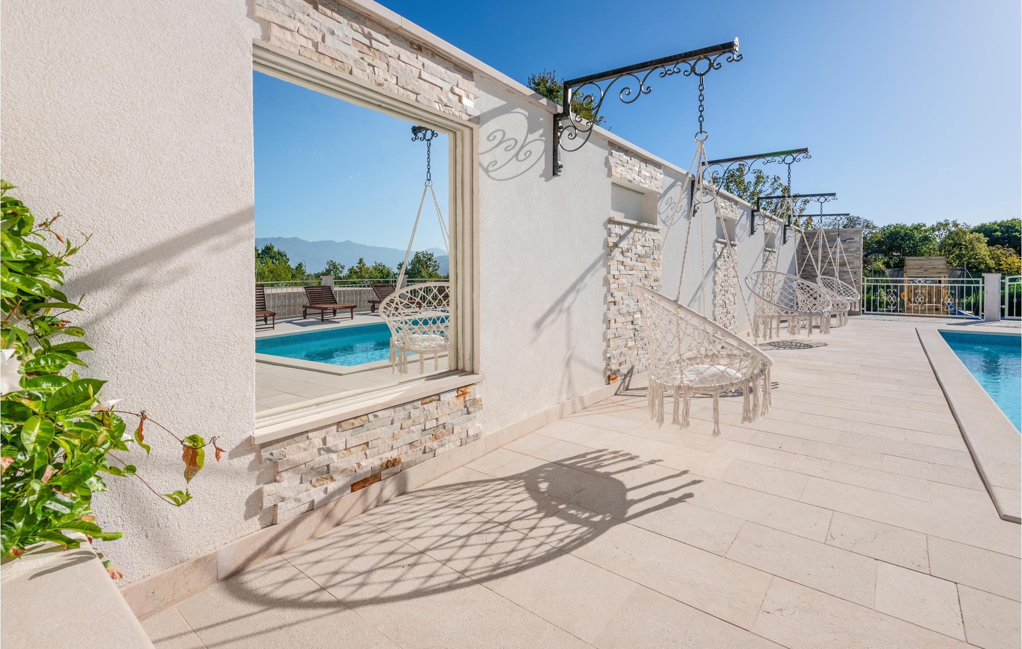 Tilbring en vidunderlig ferie i denne oase af fred. Synlige stenvægge og træbjælker med de stilfulde møbler udstråler en atmosfære, der er uden sidestykke. Nyd de smukke værelser og deres komfort og tilbring mange timer udendørs. Unge og gamle vil have det sjovt her og kan bade sammen i poolen eller løbe rundt på den private legeplads. Om aftenen kan I mødes på den overdækkede terrasse til en grill og lade de varme sommeraftener forsvinde.