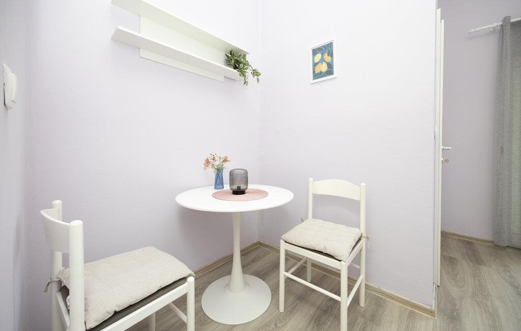 Denne praktisk indrettede ferielejlighed giver jer det optimale hjem til en varieret ferie, hvor I kan lægge hverdagen bag jer. Begynd dagene med en solid morgenmad, planlæg jeres aktiviteter ved spisebordet, og slap af om aftenen med en god bog eller et kortspil.