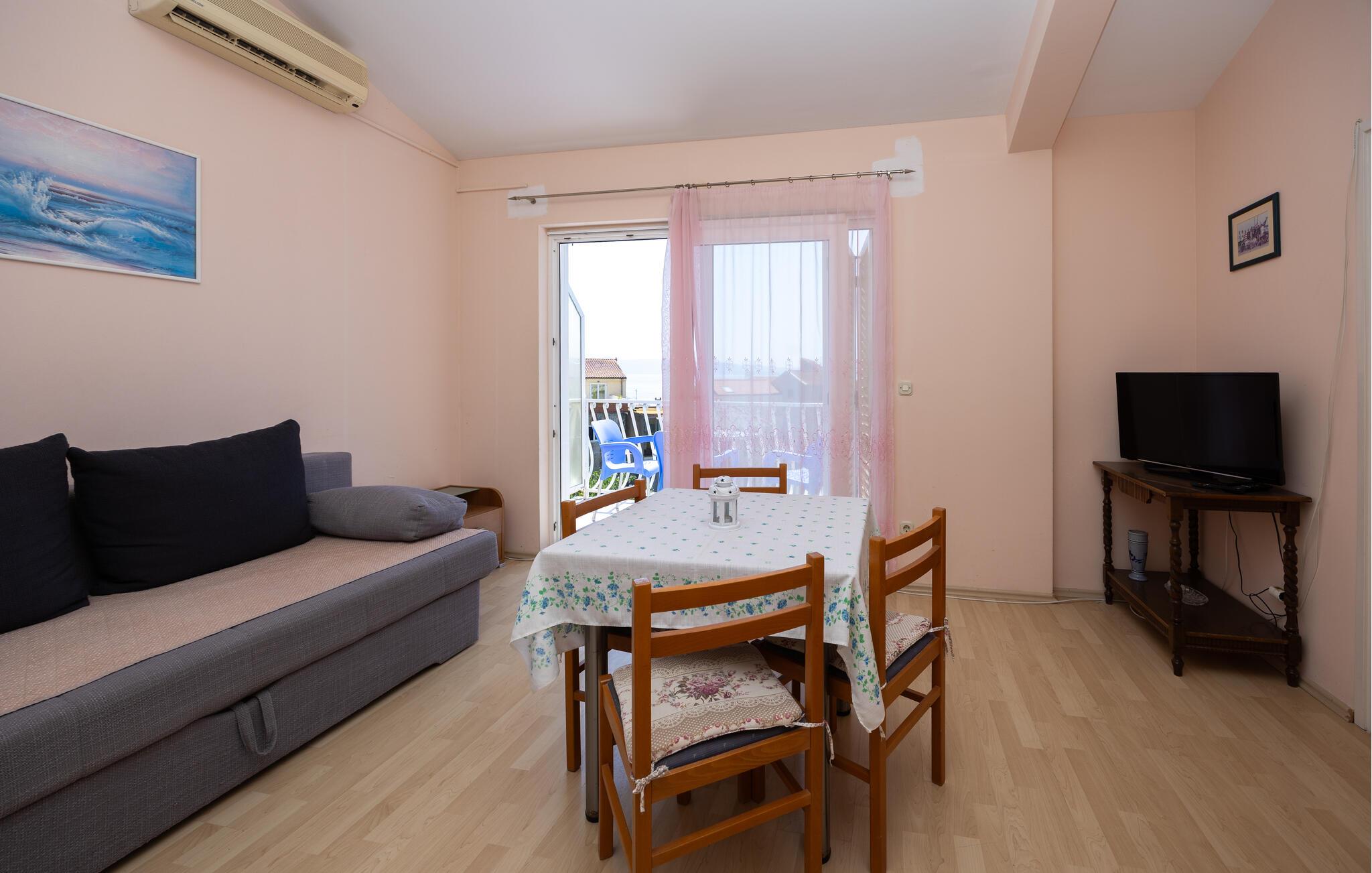 Denne lyse og indbydende ferielejlighed giver jer et hyggeligt hjem, hvor I kan lægge hverdagen bag jer og holde en varieret ferie. Begynd dagene med en solid morgenmad, planlæg jeres aktiviteter ved spisebordet og lad jer synke ned i den behagelige sofa med en god bog om aftenen.