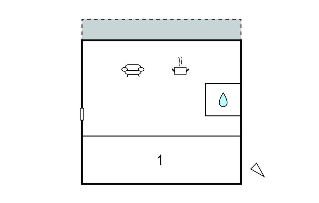 Opholdsstue/køkken 20m2 - 1 Soveplads. (Sofa, madras eller lignende).