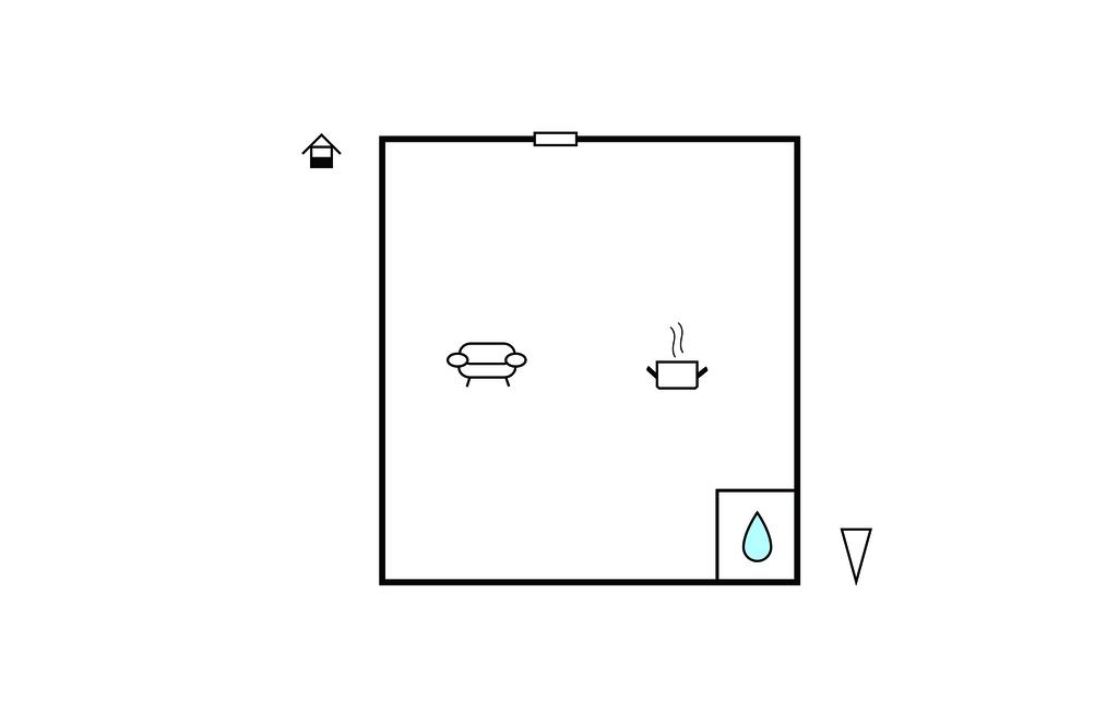 Opholdsstue 15m2 - 2 Sovepladser. (Dobbeltseng(e)).