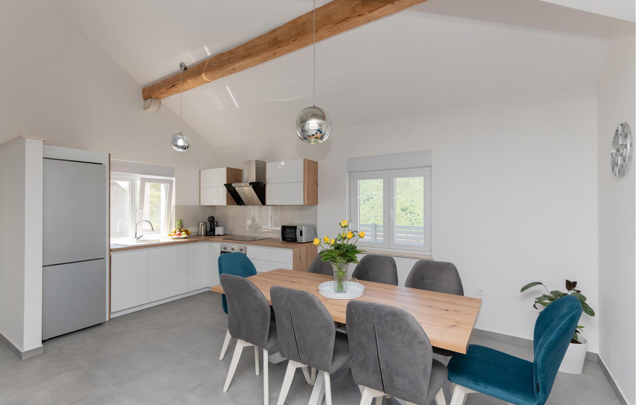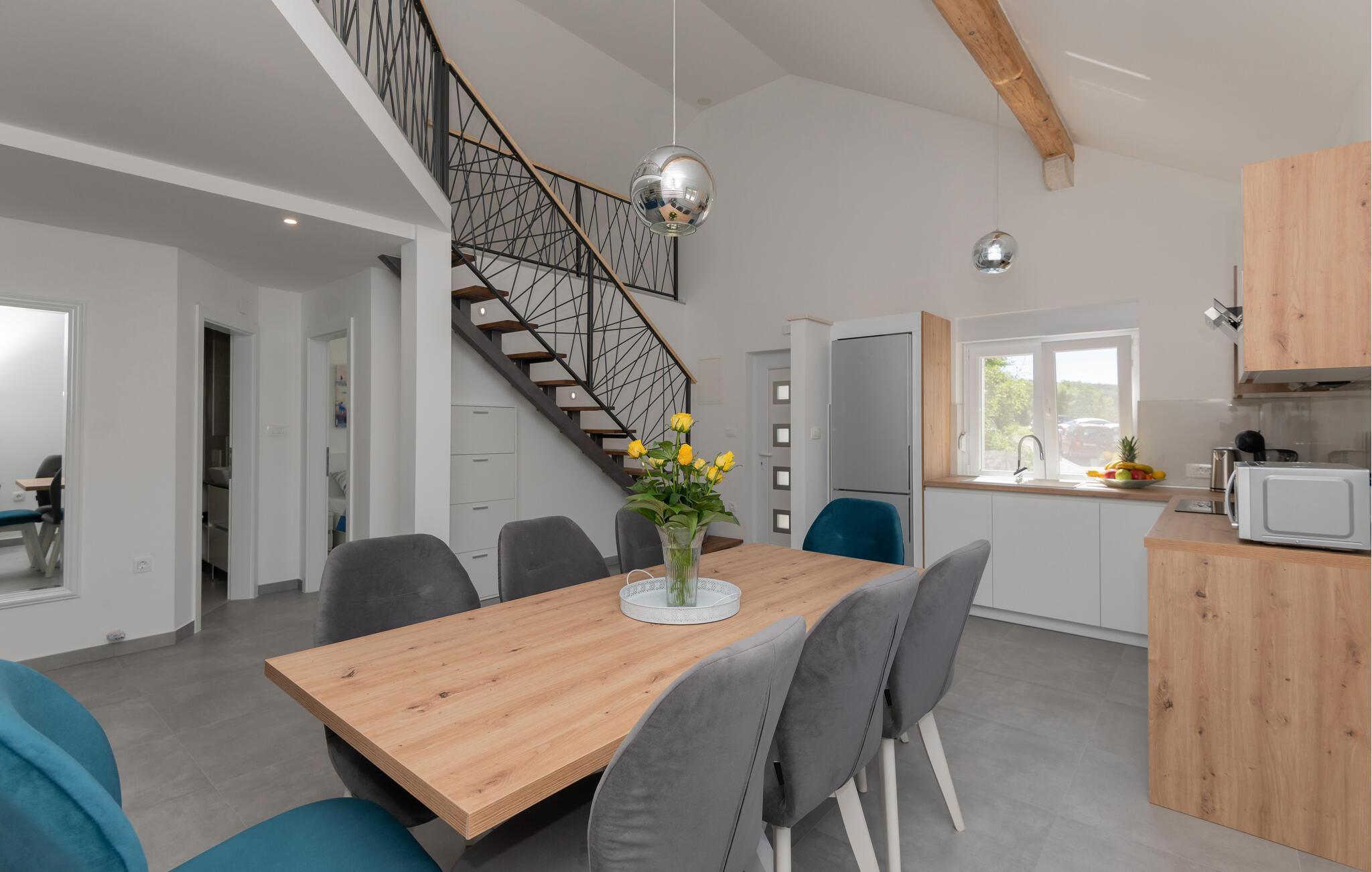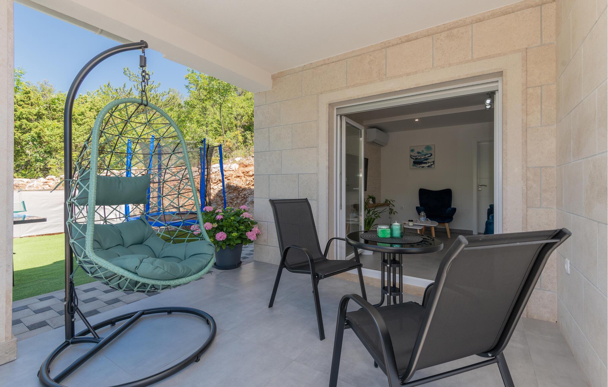 I dette flotte, moderne feriehus i Poljica kan I tilbringe en uforglemmelig ferie, der vil handle om afslapning og familietid. Kom ind og nyd den lyse atmosfære og det smagfulde design. På boligens to etager finder I moderne indretning med et åbent opholdsområde, som glider smukt over i et terrasseområde. I kan også se frem til de forskellige haveområder. Slap af ved poolen på den solrige terrasse eller brug spilleområdet med bordtennis og trampolin til en dyst med familien eller vennerne. I kan afslutte aftenen med en grill i det fri.
