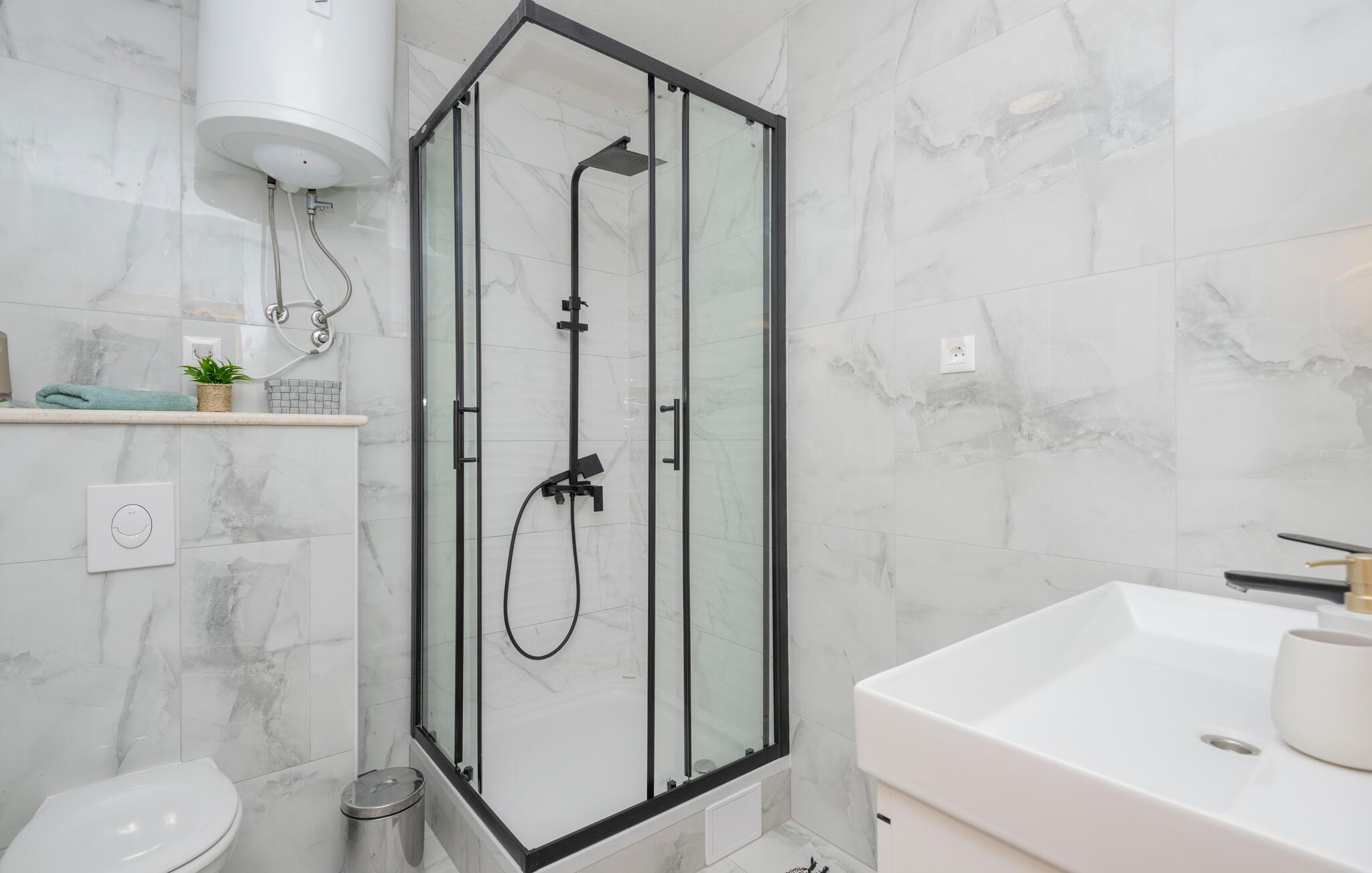 Badeværelse 6m2 (nr. 1) - WC. Varmt og koldt vand. Bruser