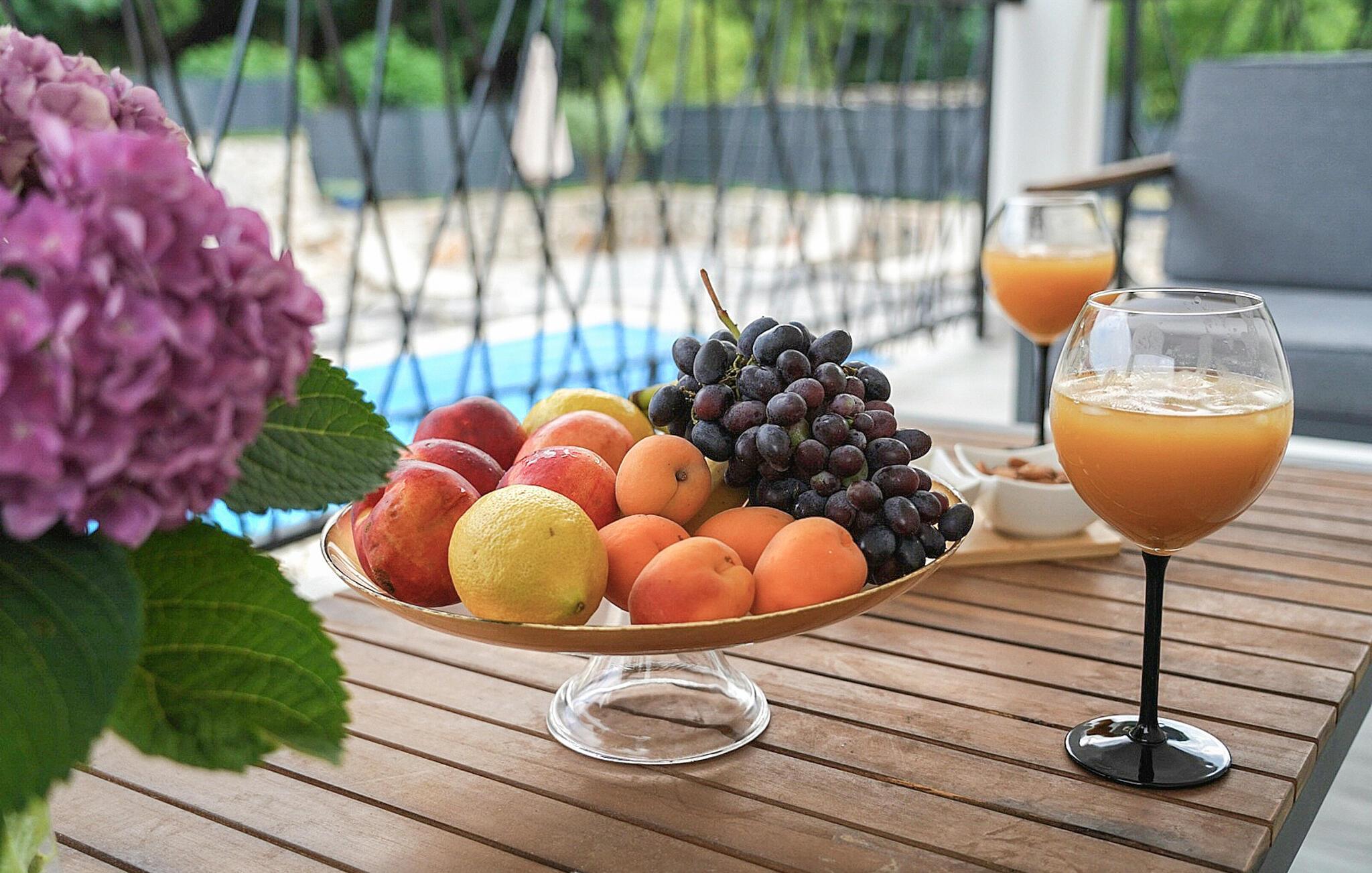 På de varme dage, og de bliver mange, kan I trække udenfor og føle jer i ét med naturen lige fra morgenstunden. Nyd solen på en af ??terrasserne, snup en frisk dukkert i poolen, og senere kan I servere familiens livretter fra grillen og nyde aftensolen med et godt glas vin.