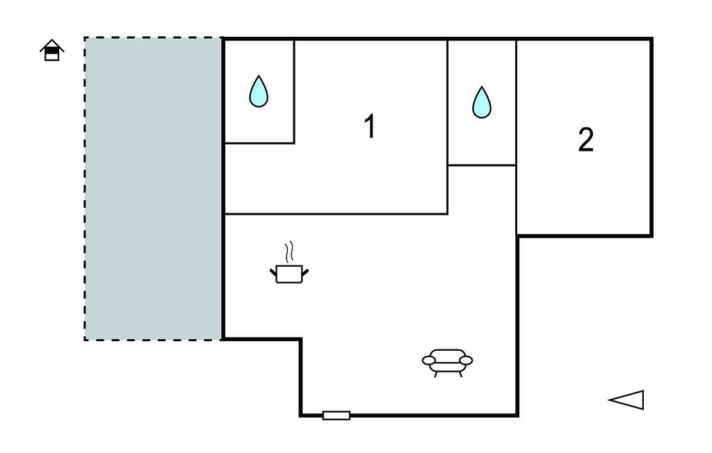 Badeværelse 3m2 (nr. 2) - WC. Varmt og koldt vand. Bruser