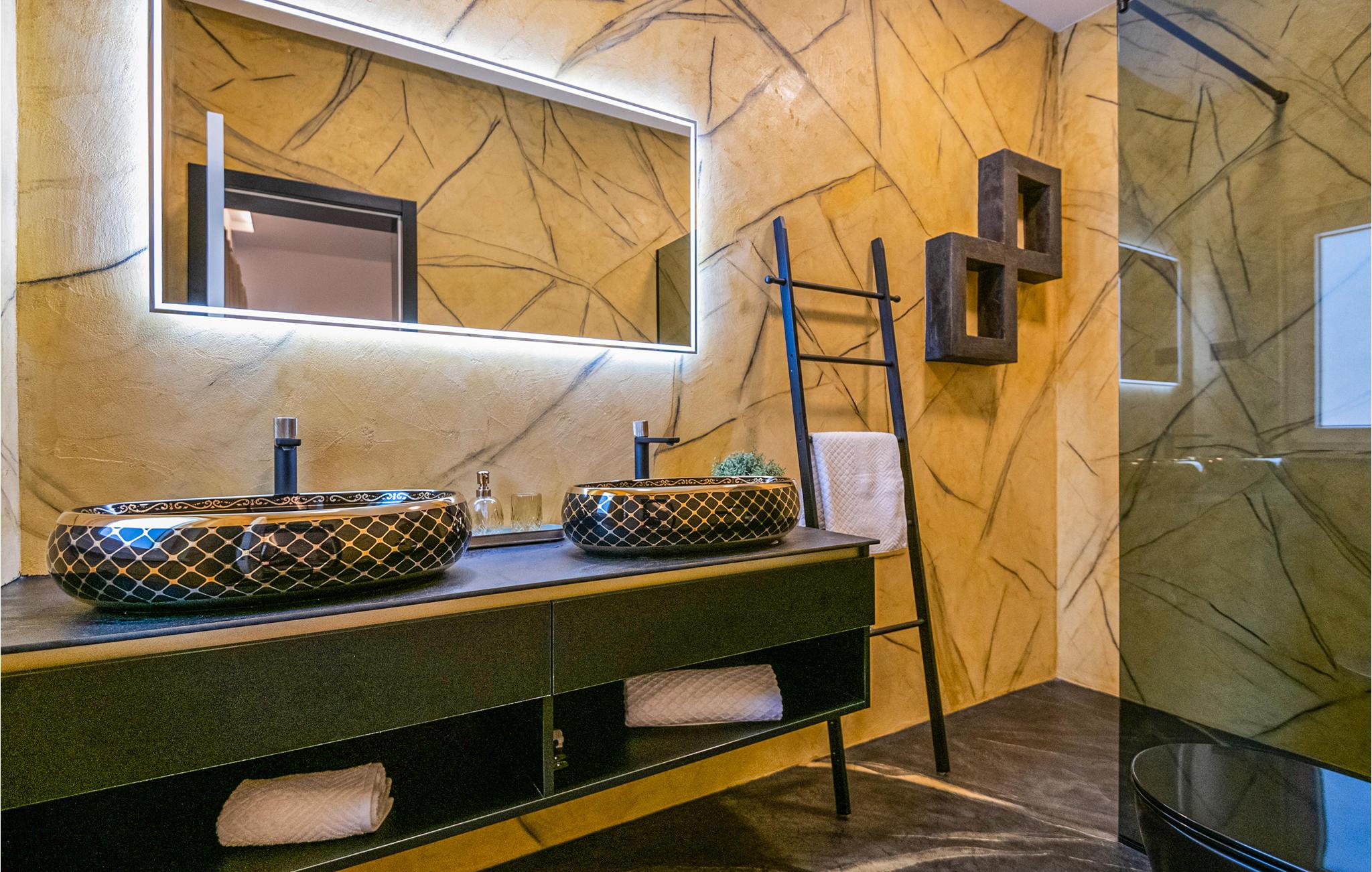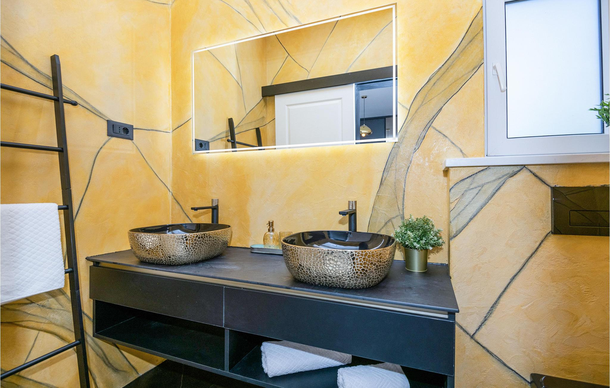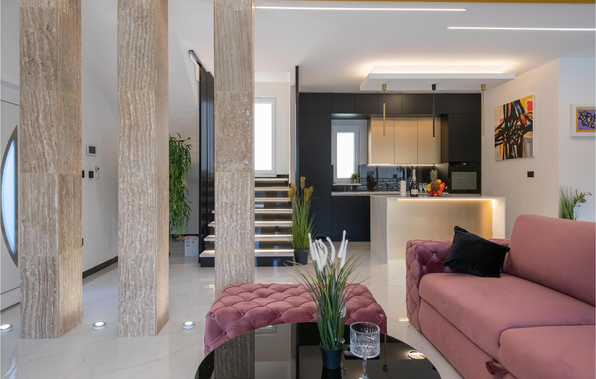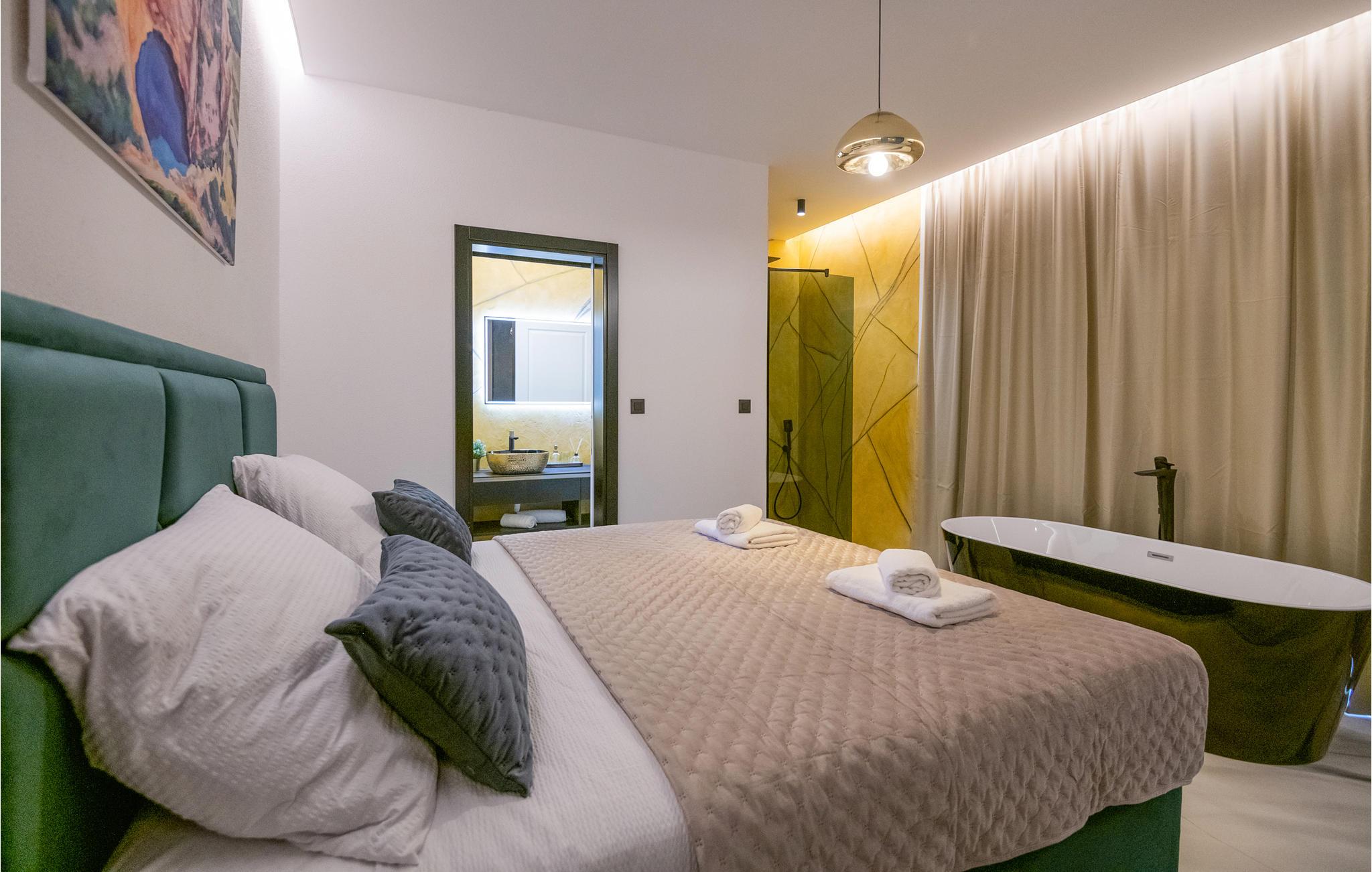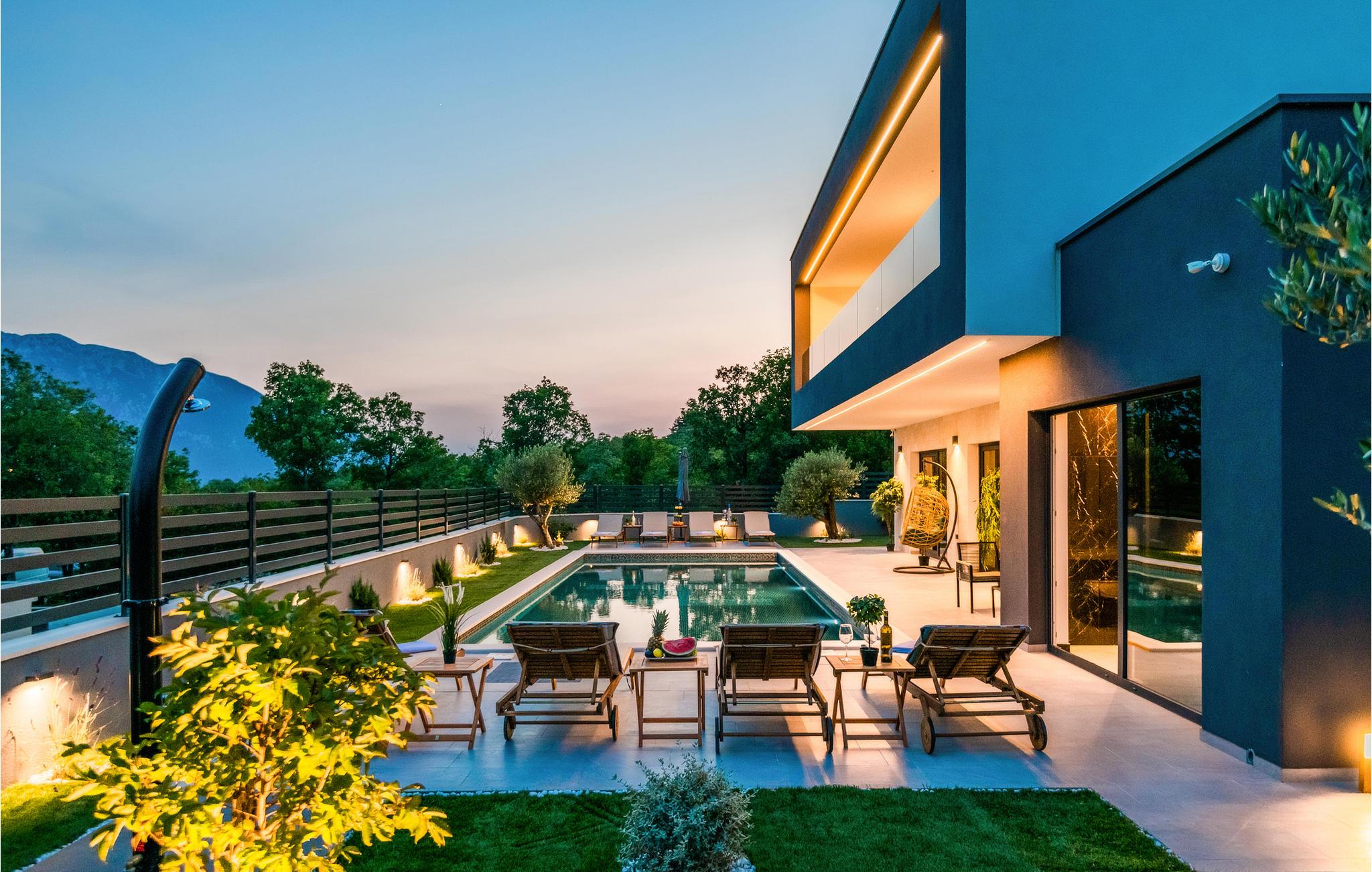 Dette luksuriøse feriehus med swimmingpool og mange faciliteter byder dig velkommen med en smuk udsigt over Sveti Jure-bjergene. Glæd dig til en afslappende ferie i dette skønne feriehus. Drømme går i opfyldelse her, og du kan tilbringe din ferie til dit hjertes lyst. Huset og haven har meget at tilbyde dig, for du kan følge dit sportsprogram i fitnessrummet samt slappe af i saunaen og spabadet. De yderst komfortable soveværelser og den store stue vil også byde på afslapning med deres højkvalitetsmøbler og hygge. Haven lover dig også underholdning, sjov og afslapning. Mød op på din private bane for at spille basketball eller udfordre dig selv til bordtennis. Der skorter heller ikke på badehygge, se dine børn bade, mens du nyder solbadning og udsigten over landskabet. Beliggenheden er ideel til at kombinere naturoplevelser med dage på stranden. Beundre nærliggende søerne Baluen og Røde i Imotski, eller forfrisk dig selv i søerne i naturreservatet Prološko Blato. Landskabet er også ideelt til vandre- og cykelture. Klatrere vil have det sjovt i de nærliggende bjerge og kan nyde en betagende udsigt fra toppene. De smukke stenstrande ved kysten kan nås hurtigt i bil. Hop ind i bølgerne og nyd fantastiske timer ved havet. Forkæl dig selv med en uforglemmelig ferie i Dalmatien!