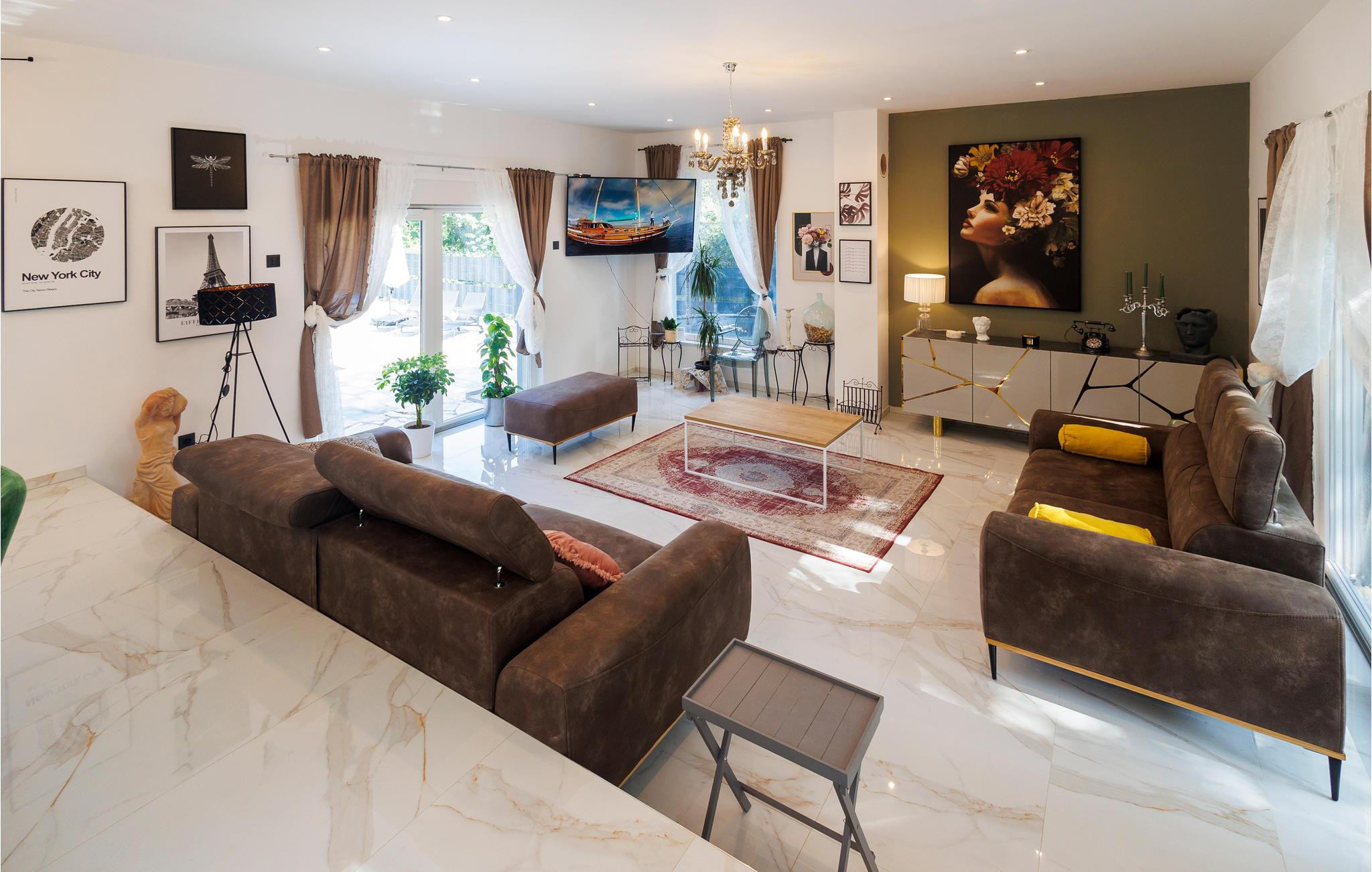 Rummeligt og smagfuldt feriehus med udsigt til Sveti Jure-bjergene.