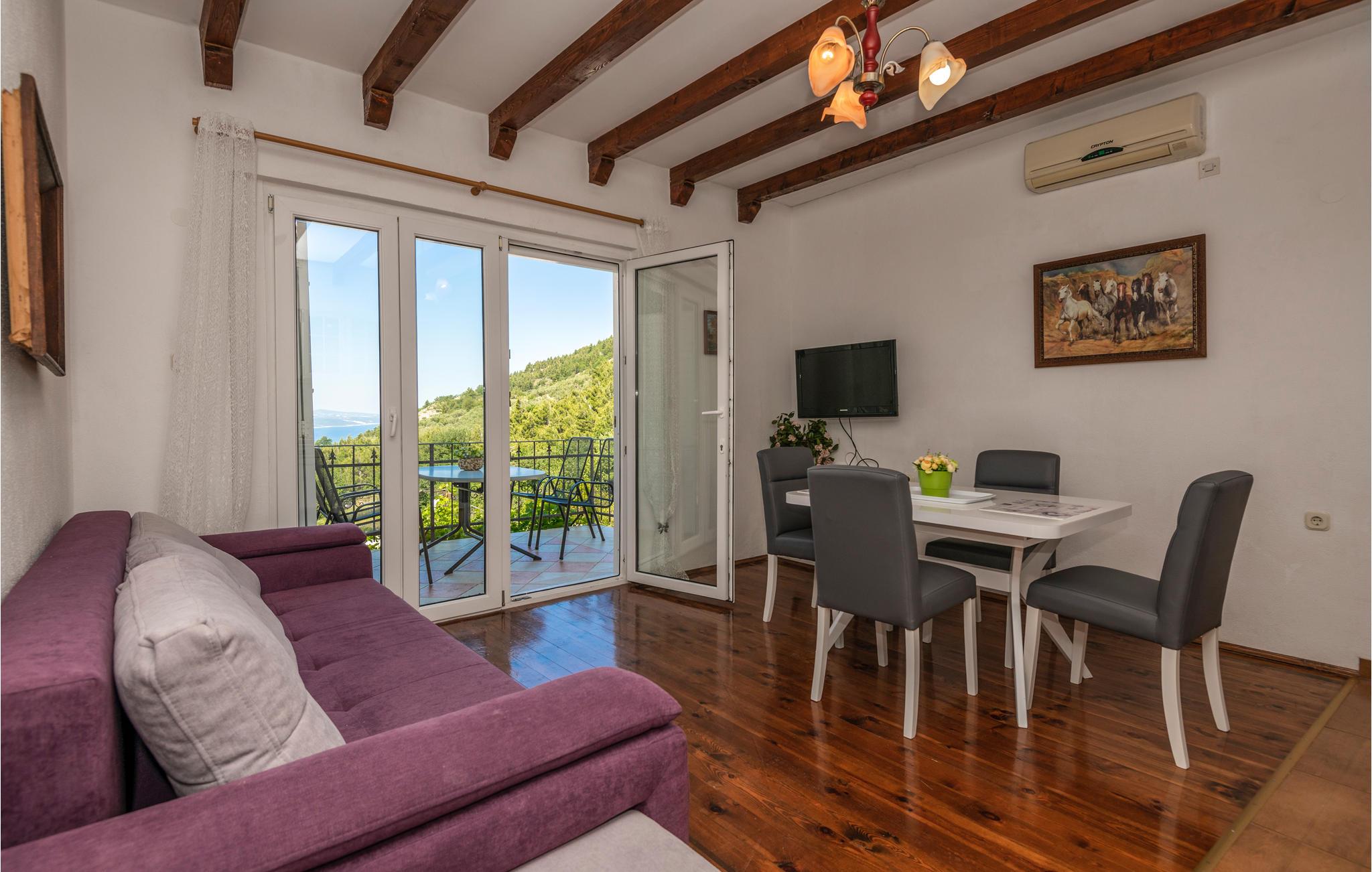 Huset ligger i en dalmatisk landsby på Makarska Riviera, ca. 350 m over havets overflade og ved foden af ??Monte Biokovo naturpark. Det består af to boligenheder på første og anden sal, der er forbundet via en intern trappe. Fra anden sal er der en terrasse med havudsigt, hvor I kan nyde solen og den friske luft. Huset er enkelt indrettet og holdes i original stil. I stueetagen med separat indgang er der et lille køkken med grill til sociale sammenkomster.