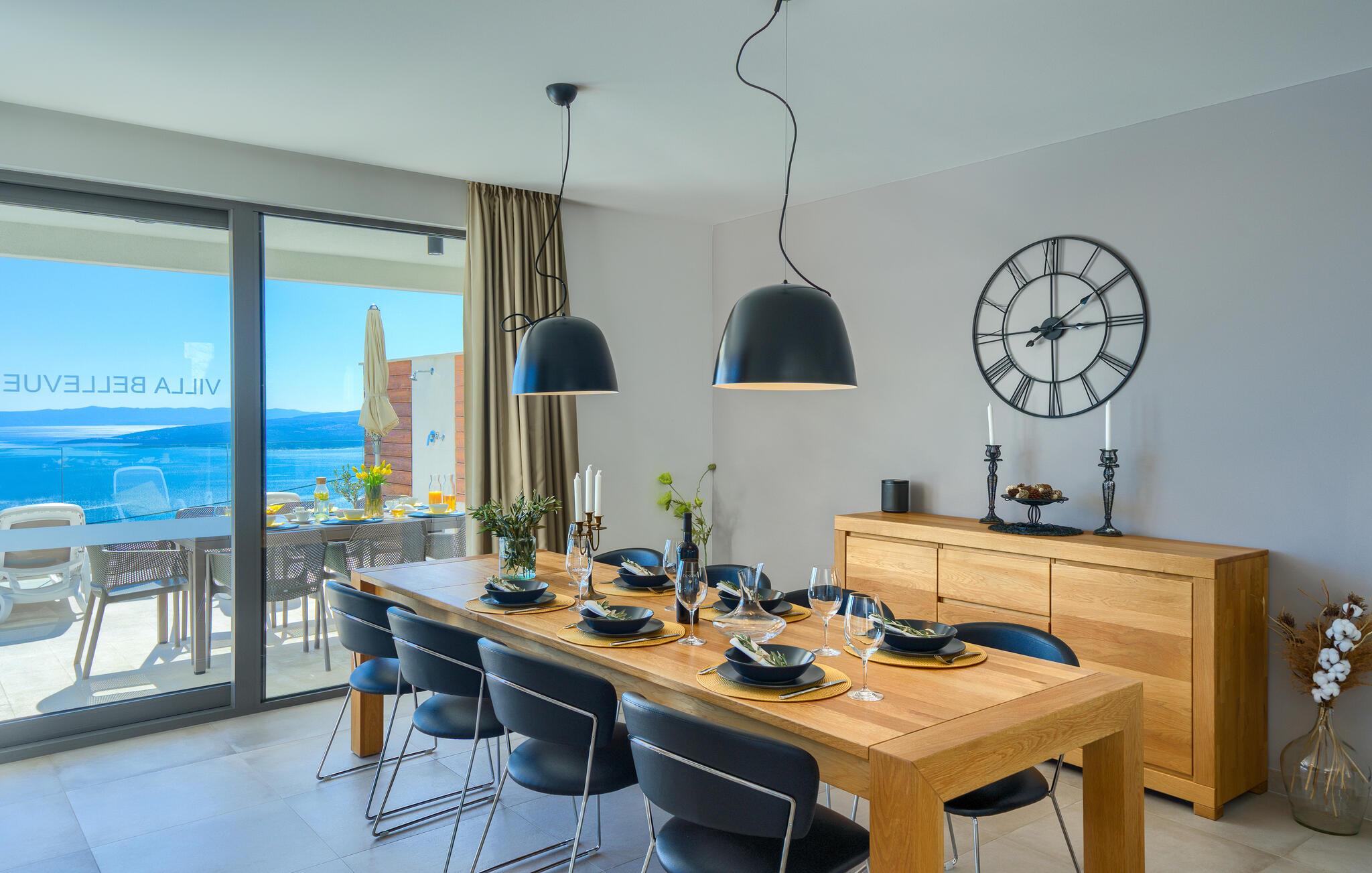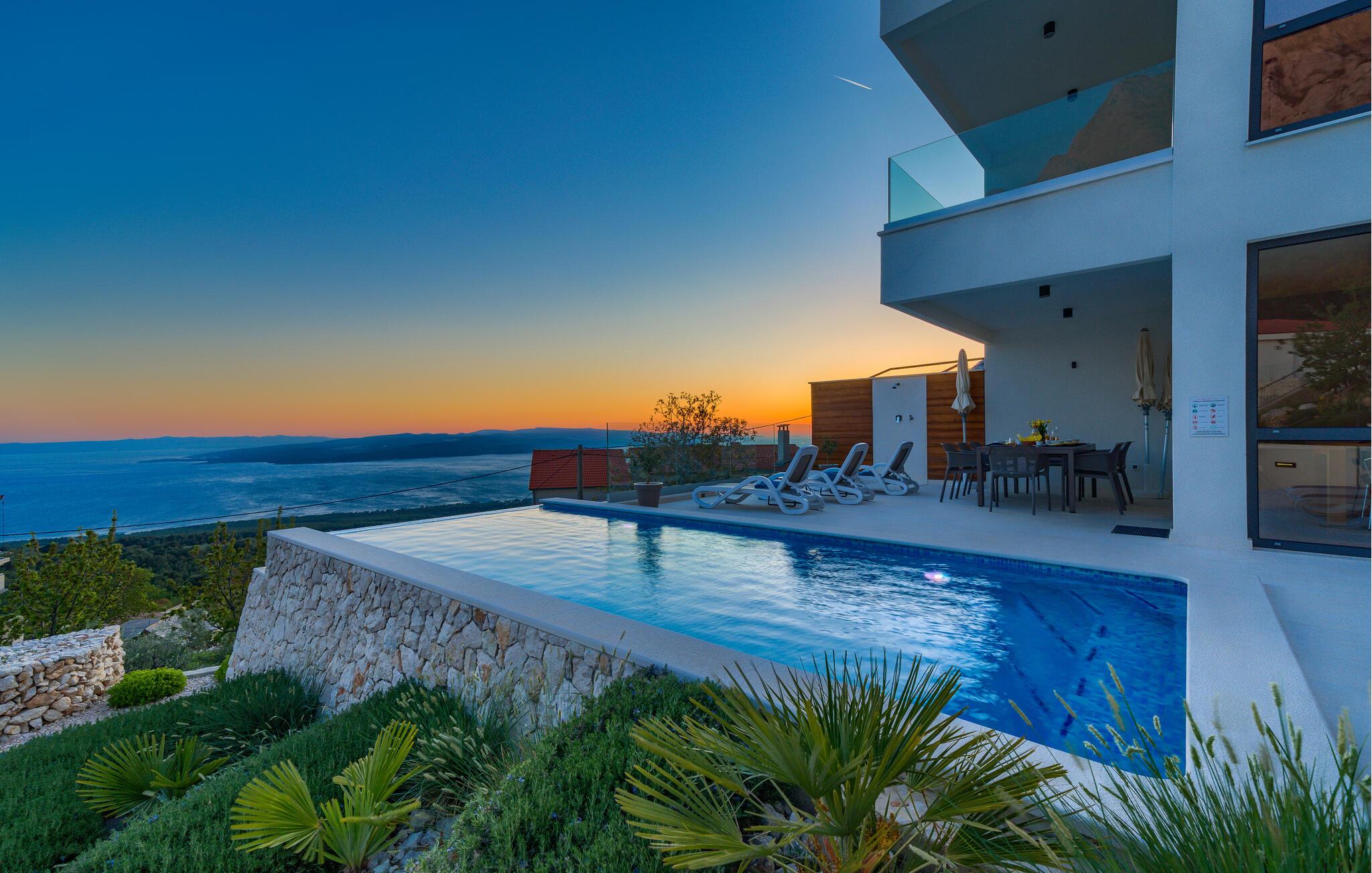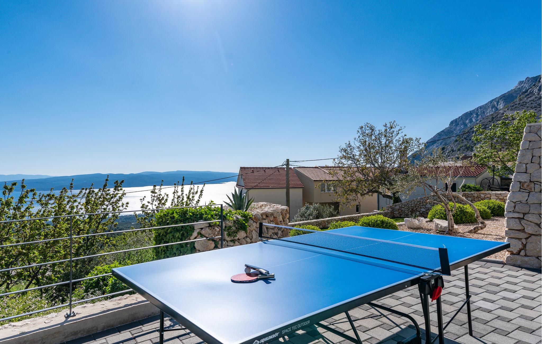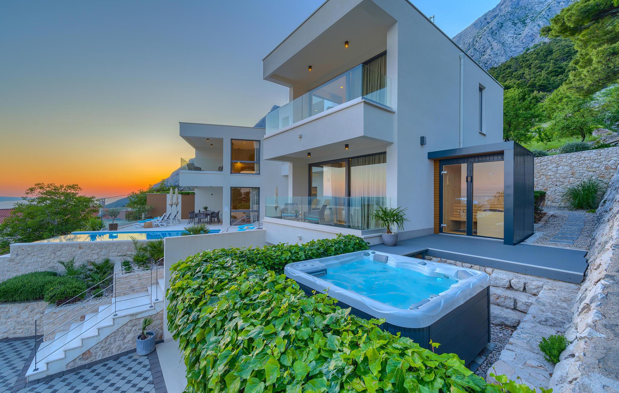 Nyd jeres drømmeferie i dette stilfulde feriehus med udendørs wellness og tæt på stranden. Inde i Villa Bellevue finder I et moderne design, der kombinerer rene linjer med dristige farveaccenter, hvilket giver hvert værelse et særligt præg. Store vinduer åbner op til havudsigt og får de lyse opholds- og spiseområder til at virke endnu mere rummelige. Gør det behageligt i den elegante sofa, nyd hyggelige aftener ved et festligt dækket bord eller slap af med et godt glas vin med udsigt over poolen. Det stilfulde køkken lægger op til at lave mad sammen og dele kulinariske øjeblikke med familie og venner. Udendørsområdet på Villa Bellevue tilbyder alt, hvad I kan ønske jer til en afslappende og oplevelsesrig ferie. Svøm baner i den glitrende pool eller afslut dagen i det varme spabad, mens solen langsomt synker ned i havet. For dem, der kan lide sport, er bordtennis den ideelle mulighed for en lille turnering med familie eller venner. Om aftenen kan I samles omkring grillområdet, hvor duftende specialiteter tilberedes i hyggeligt selskab og nyde magien ved dalmatiske sommeraftener. Villa Bellevue ligger højt over havet og tilbyder udsigt, der strækker sig fra selve bjergene ned til øerne og kysten. Byen Baška Voda, der ligger kun et stenkast væk, kan se tilbage på tusindvis af års historie. Oplev spor af forskellige kulturer her, for eksempel i gamle kirker og arkæologiske steder. Området er rigt på små kapeller, skjulte ruiner og lokale skikke. Tag en tur til den nærliggende Biokovo Naturpark og vandre langs bjergstier til spektakulære udsigtspunkter. Hvis I er i humør til sol, sand og hav, er kysten hjemsted for charmerende promenader, små strande og livlige Baška Voda. Bemærk venligst: Ejendommen accepterer ikke ungdomsgrupper under 25 år eller polterabender. Bookinger fra sådanne grupper vil blive afvist, selv ved ankomst eller under opholdet, og uden refusion.