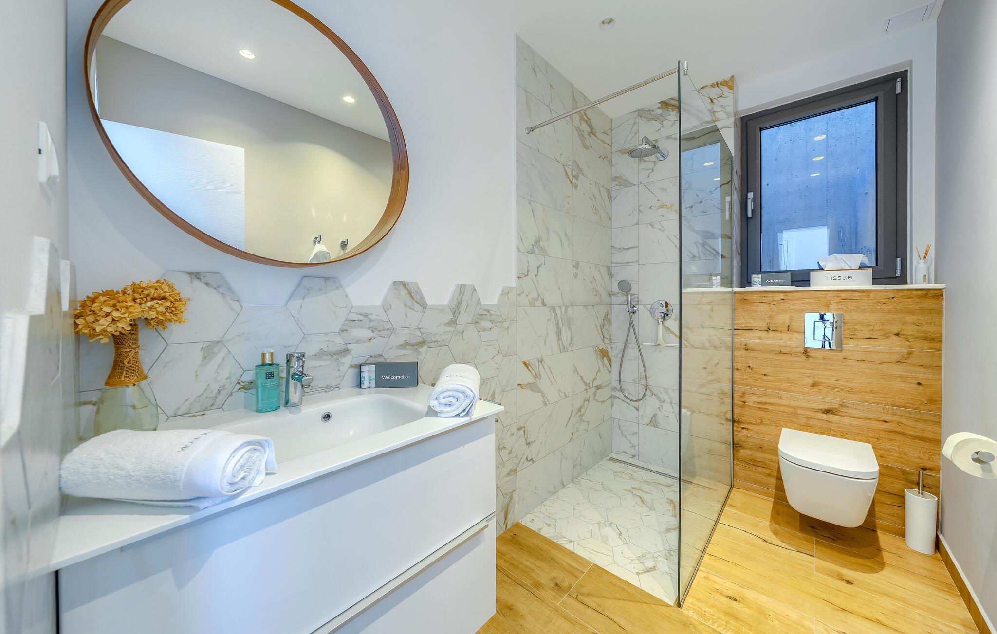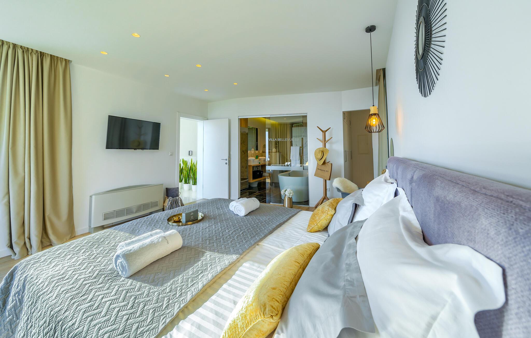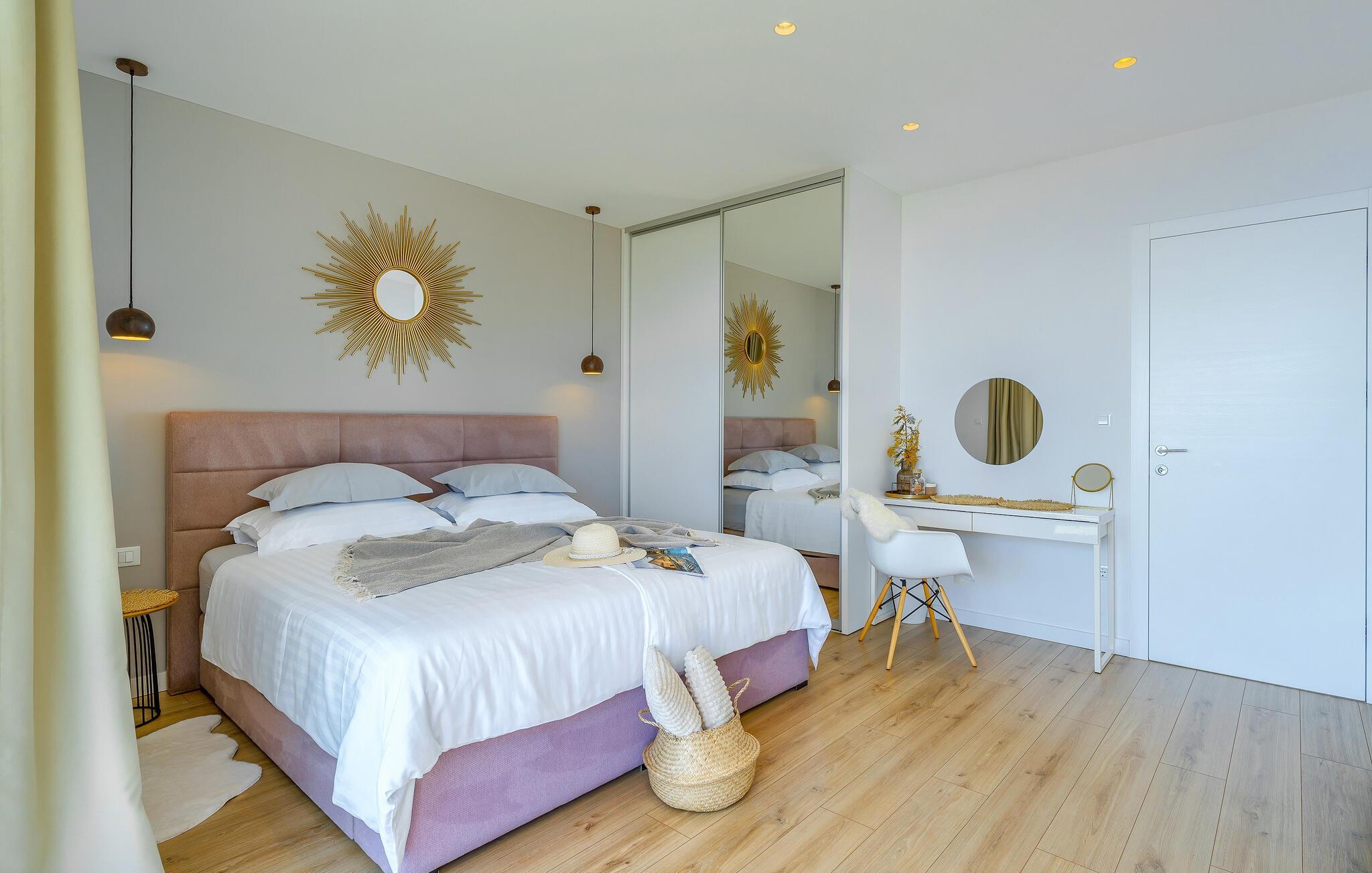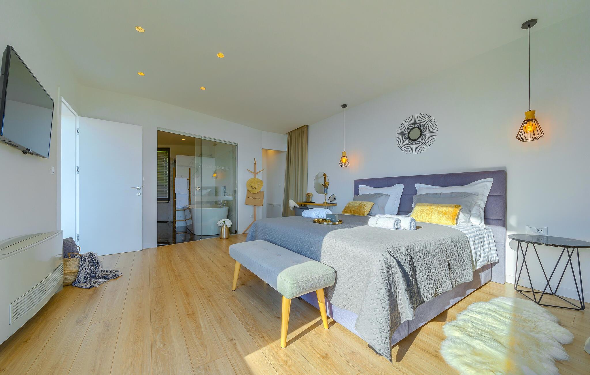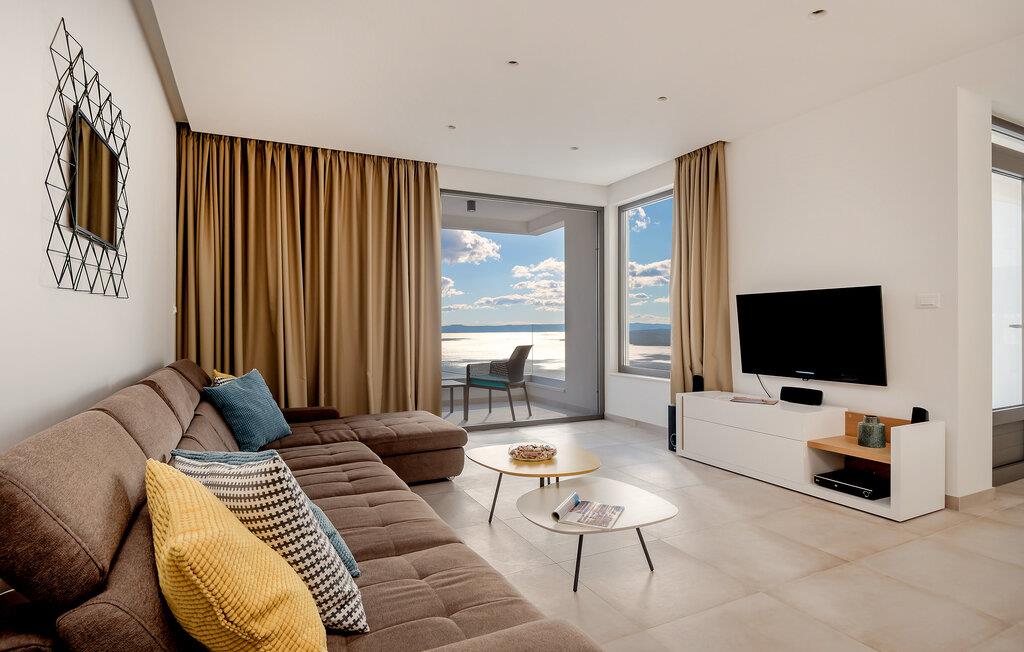 Nyd jeres drømmeferie i dette stilfulde feriehus med udendørs wellness og tæt på stranden. Inde i Villa Bellevue finder I et moderne design, der kombinerer rene linjer med dristige farveaccenter, hvilket giver hvert værelse et særligt præg. Store vinduer åbner op til havudsigt og får de lyse opholds- og spiseområder til at virke endnu mere rummelige. Gør det behageligt i den elegante sofa, nyd hyggelige aftener ved et festligt dækket bord eller slap af med et godt glas vin med udsigt over poolen. Det stilfulde køkken lægger op til at lave mad sammen og dele kulinariske øjeblikke med familie og venner. Udendørsområdet på Villa Bellevue tilbyder alt, hvad I kan ønske jer til en afslappende og oplevelsesrig ferie. Svøm baner i den glitrende pool eller afslut dagen i det varme spabad, mens solen langsomt synker ned i havet. For dem, der kan lide sport, er bordtennis den ideelle mulighed for en lille turnering med familie eller venner. Om aftenen kan I samles omkring grillområdet, hvor duftende specialiteter tilberedes i hyggeligt selskab og nyde magien ved dalmatiske sommeraftener. Villa Bellevue ligger højt over havet og tilbyder udsigt, der strækker sig fra selve bjergene ned til øerne og kysten. Byen Baška Voda, der ligger kun et stenkast væk, kan se tilbage på tusindvis af års historie. Oplev spor af forskellige kulturer her, for eksempel i gamle kirker og arkæologiske steder. Området er rigt på små kapeller, skjulte ruiner og lokale skikke. Tag en tur til den nærliggende Biokovo Naturpark og vandre langs bjergstier til spektakulære udsigtspunkter. Hvis I er i humør til sol, sand og hav, er kysten hjemsted for charmerende promenader, små strande og livlige Baška Voda. Bemærk venligst: Ejendommen accepterer ikke ungdomsgrupper under 25 år eller polterabender. Bookinger fra sådanne grupper vil blive afvist, selv ved ankomst eller under opholdet, og uden refusion.