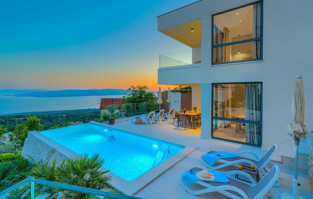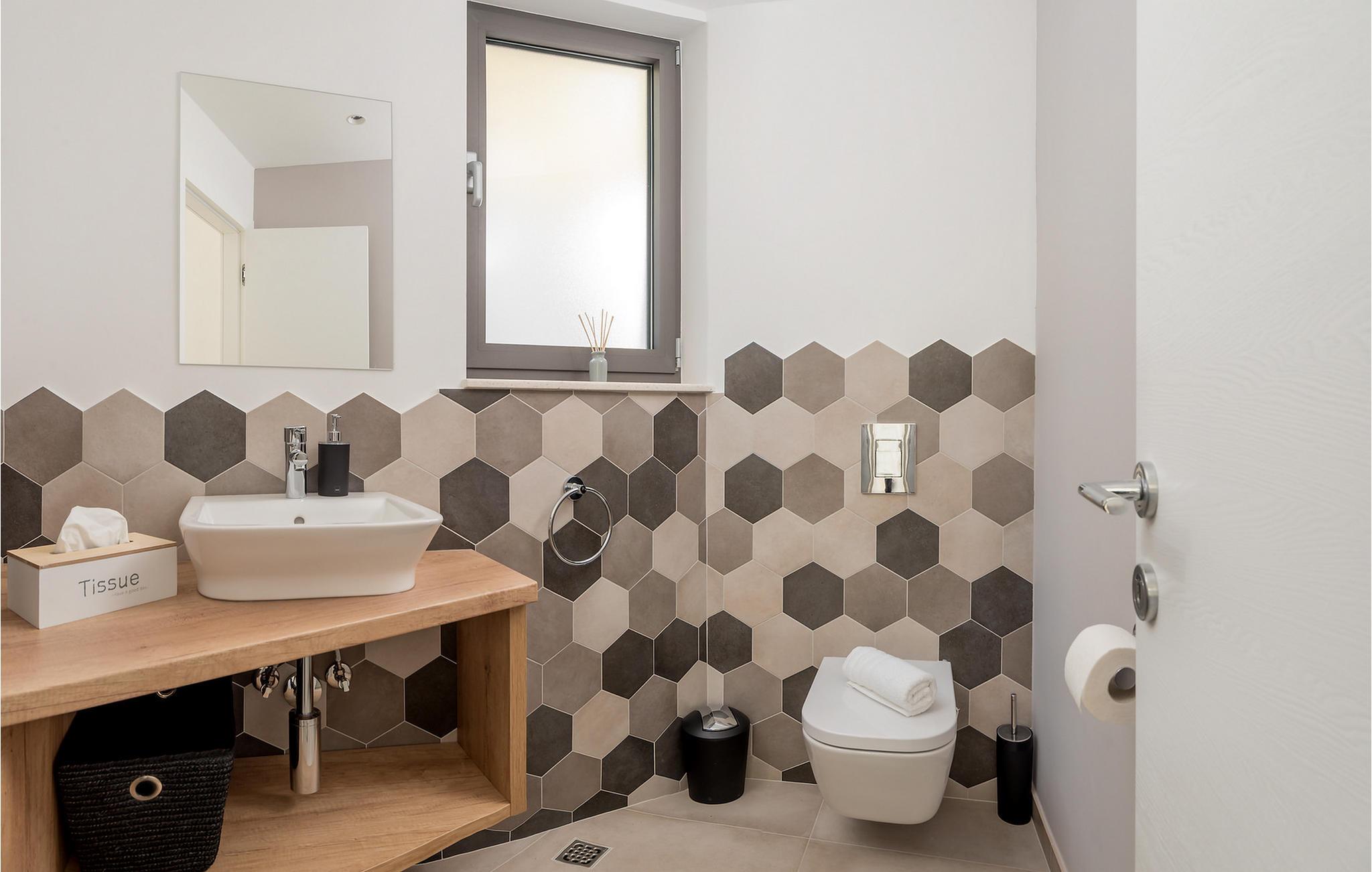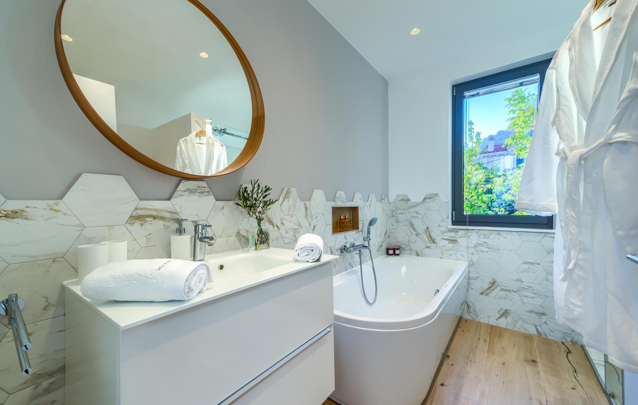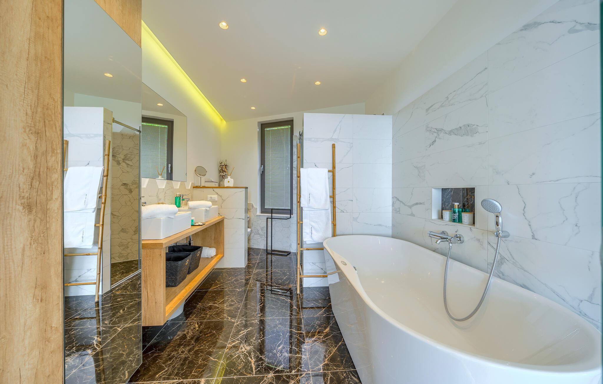 Nyd jeres drømmeferie i dette stilfulde feriehus med udendørs wellness og tæt på stranden. Inde i Villa Bellevue finder I et moderne design, der kombinerer rene linjer med dristige farveaccenter, hvilket giver hvert værelse et særligt præg. Store vinduer åbner op til havudsigt og får de lyse opholds- og spiseområder til at virke endnu mere rummelige. Gør det behageligt i den elegante sofa, nyd hyggelige aftener ved et festligt dækket bord eller slap af med et godt glas vin med udsigt over poolen. Det stilfulde køkken lægger op til at lave mad sammen og dele kulinariske øjeblikke med familie og venner. Udendørsområdet på Villa Bellevue tilbyder alt, hvad I kan ønske jer til en afslappende og oplevelsesrig ferie. Svøm baner i den glitrende pool eller afslut dagen i det varme spabad, mens solen langsomt synker ned i havet. For dem, der kan lide sport, er bordtennis den ideelle mulighed for en lille turnering med familie eller venner. Om aftenen kan I samles omkring grillområdet, hvor duftende specialiteter tilberedes i hyggeligt selskab og nyde magien ved dalmatiske sommeraftener. Villa Bellevue ligger højt over havet og tilbyder udsigt, der strækker sig fra selve bjergene ned til øerne og kysten. Byen Baška Voda, der ligger kun et stenkast væk, kan se tilbage på tusindvis af års historie. Oplev spor af forskellige kulturer her, for eksempel i gamle kirker og arkæologiske steder. Området er rigt på små kapeller, skjulte ruiner og lokale skikke. Tag en tur til den nærliggende Biokovo Naturpark og vandre langs bjergstier til spektakulære udsigtspunkter. Hvis I er i humør til sol, sand og hav, er kysten hjemsted for charmerende promenader, små strande og livlige Baška Voda. Bemærk venligst: Ejendommen accepterer ikke ungdomsgrupper under 25 år eller polterabender. Bookinger fra sådanne grupper vil blive afvist, selv ved ankomst eller under opholdet, og uden refusion.