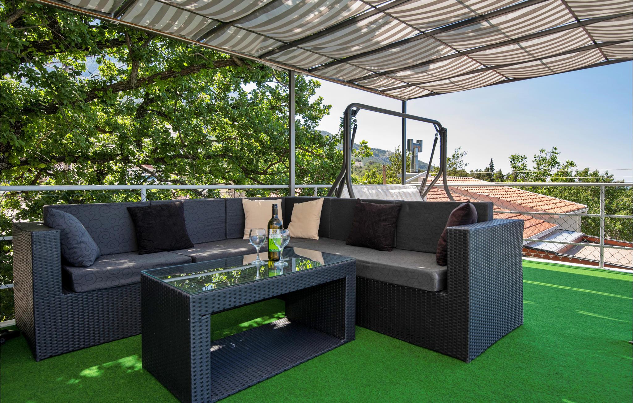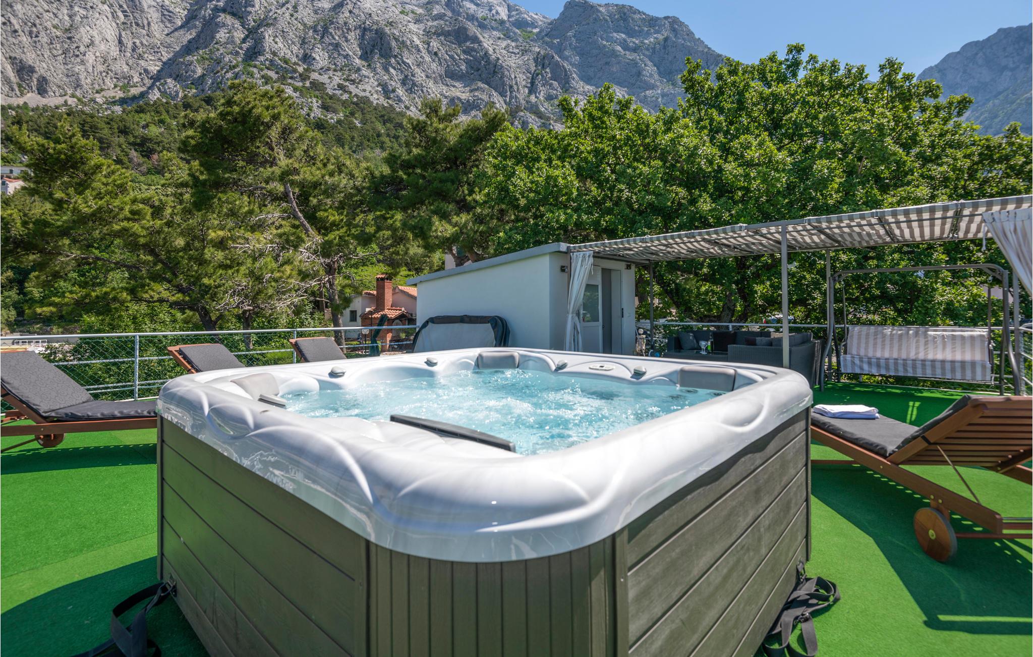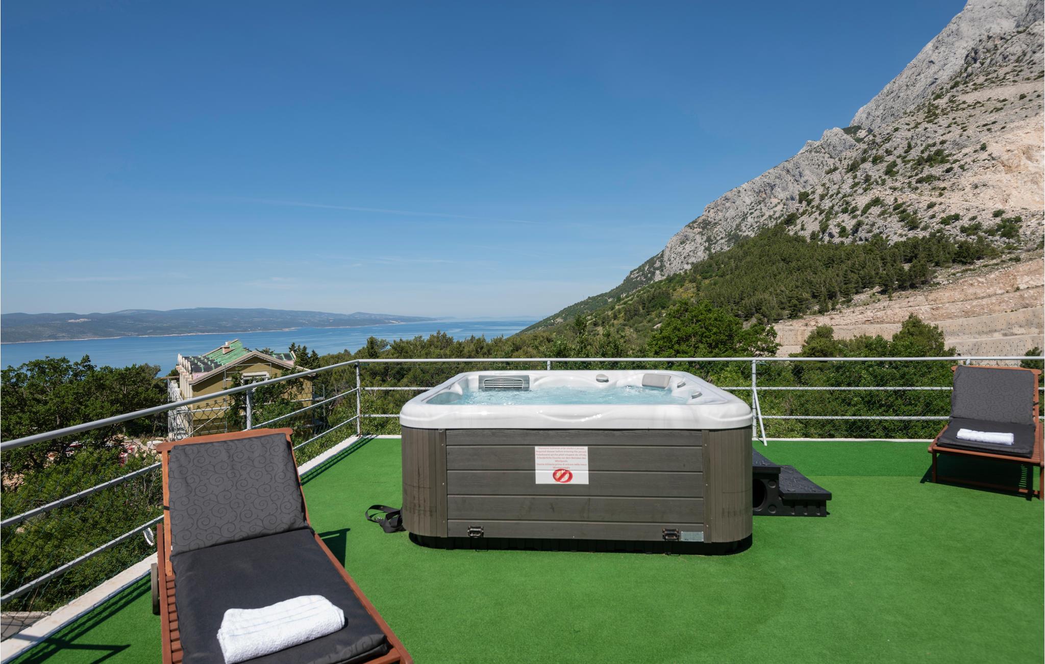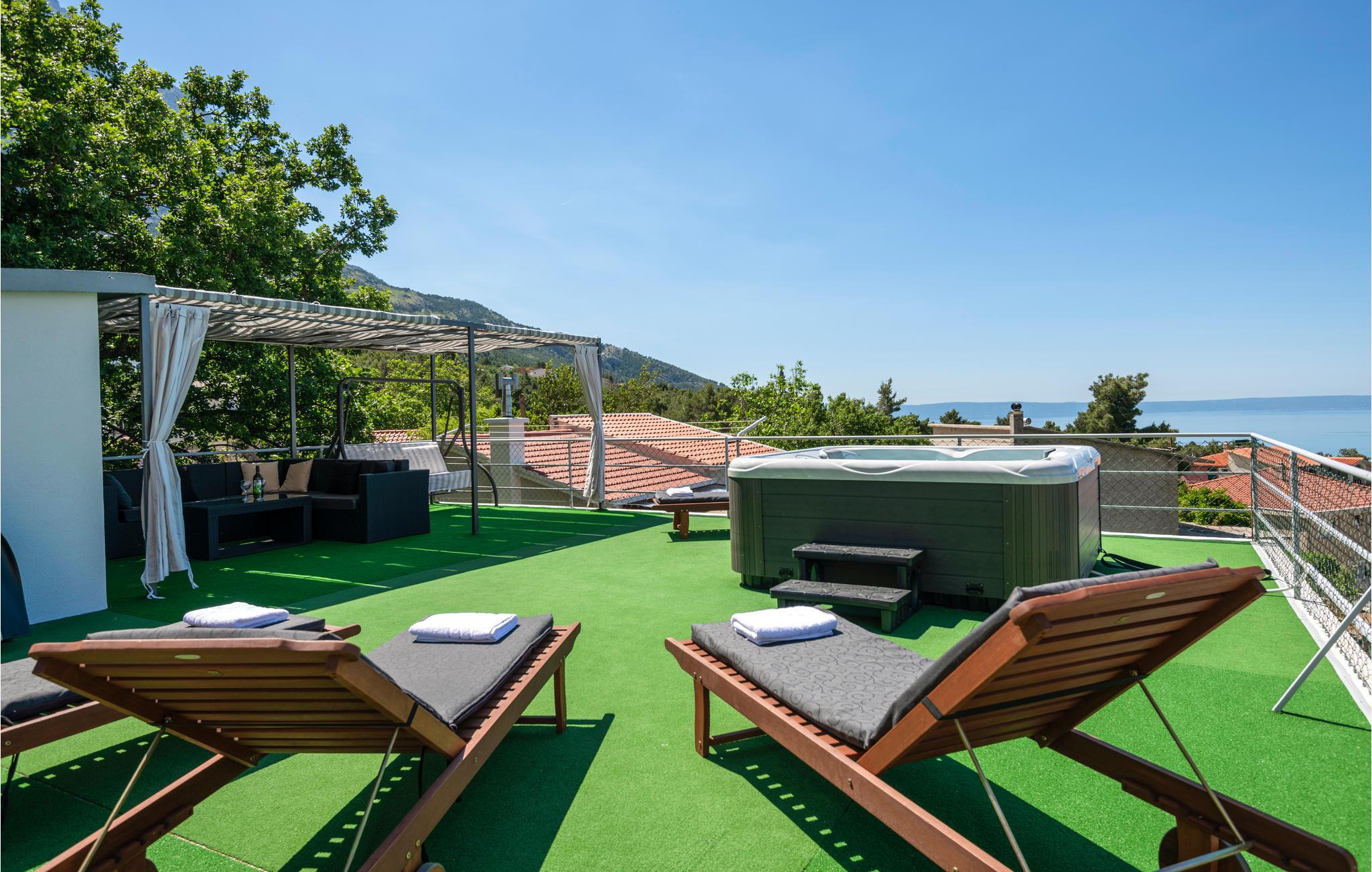 Ved Biokovo bjergets fod, beliggende i den smukke historiske landsby Bast i nærheden af Baška Voda, ligger dette kønt indrettede og veludstyredeferiehus. Det består af stueetage og en første sal, og på tagterrassen ligger der en lækker terrasse med whirlpool, hvor I kan slappe dejligt af mens I nyder udsigten til det blå hav med de mange små øer. I stueetagen finder I nok et udendørs køkken med grill, samt en møbleret terrasse. Makarska rivieraen med de talrige forlystelser, restauranter og ikke mindst den skønne strand ligger kun 10 km fra huset, mens den smukke landsby Baška Voda kun ligger fire km fra Bast.
