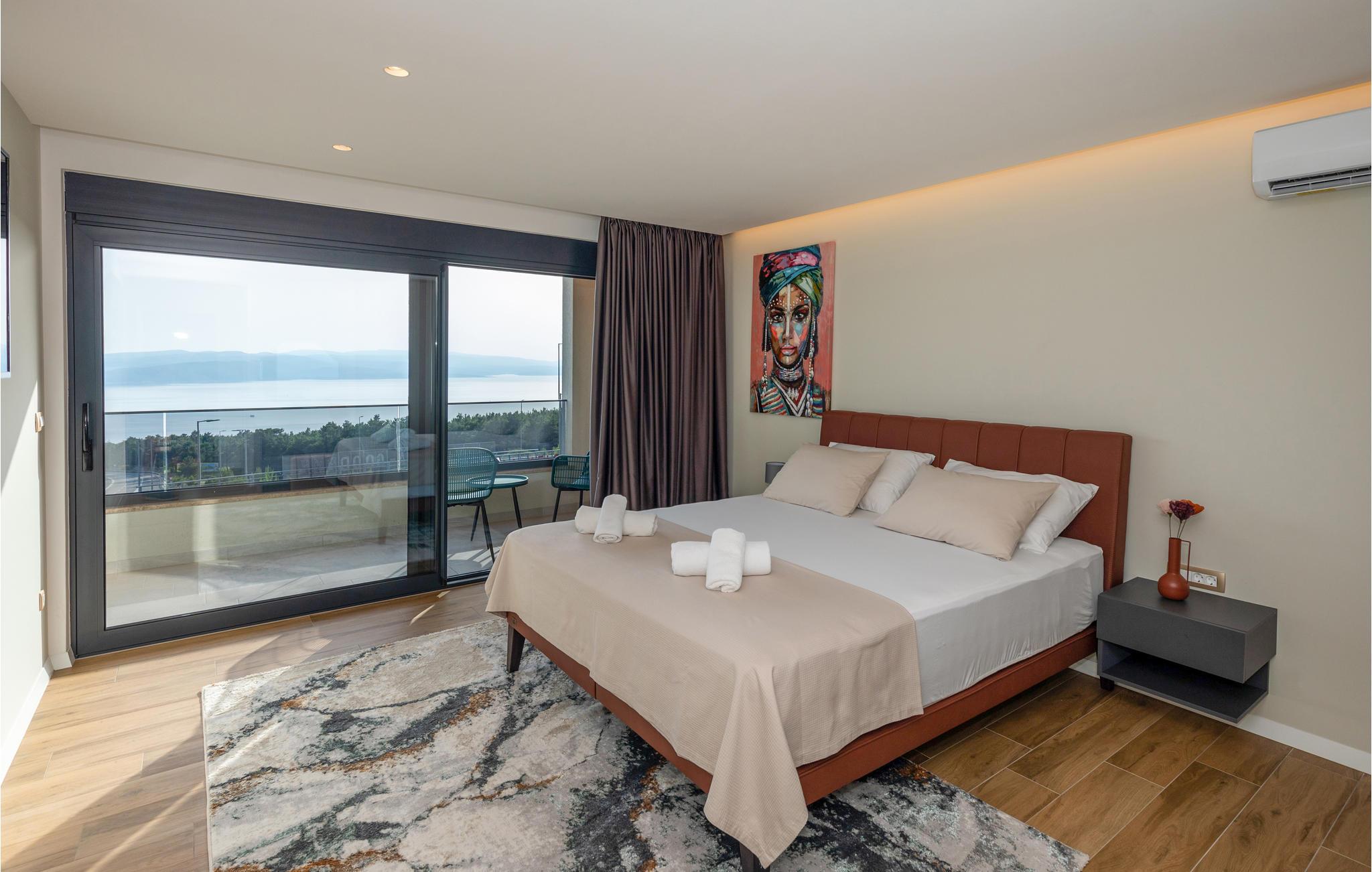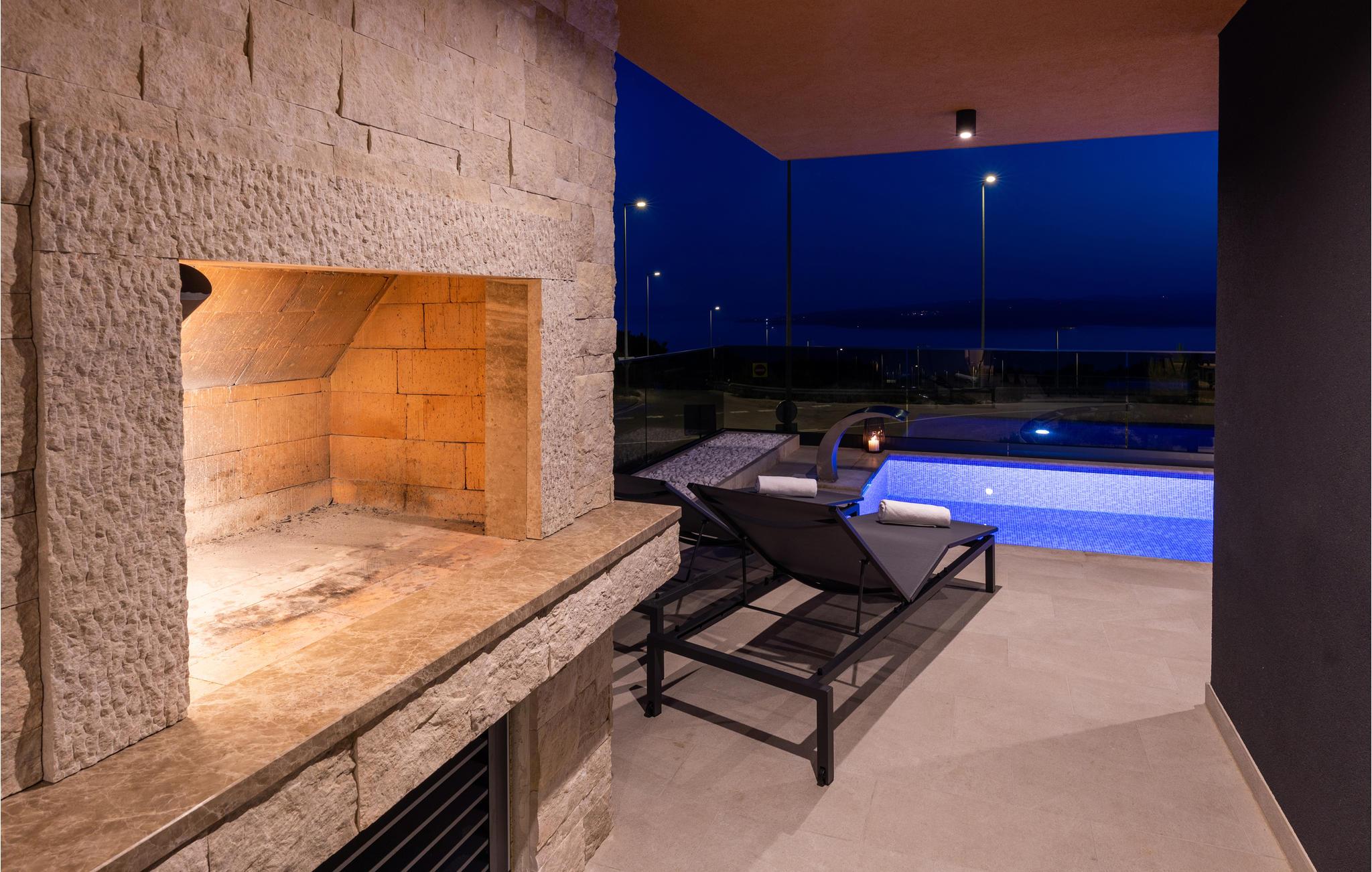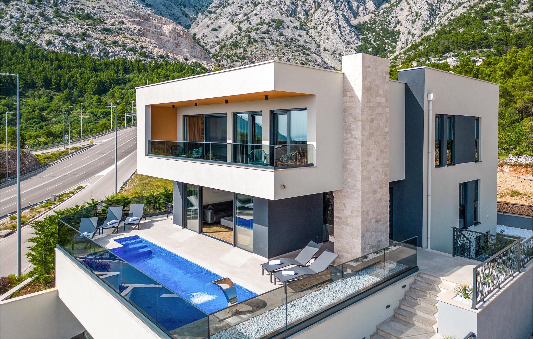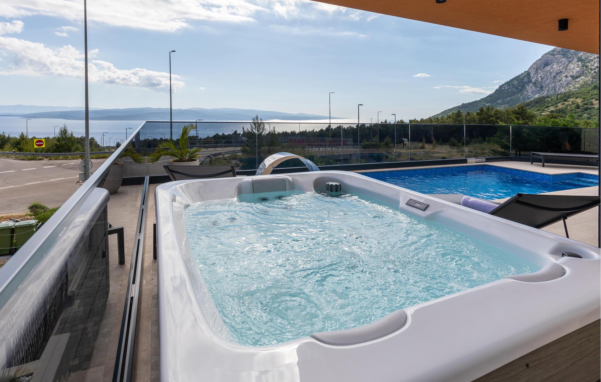 Dette luksuriøse feriehus med mange faciliteter venter på jer med en smuk udsigt over havet. Blot få kilometer fra strandene byder dette skønne og rummelige feriehus velkommen med god adgang til kysten og oplandet. Det moderne hus byder velkommen på tre fuldt udstyrede etager, som byder på komfort, underholdning og en god tid sammen med den store familie eller vennepar. Mens den nederste etage bruges til underholdning og hygge med billard og bordfodbold, kan du en etage over mødes med dine kære i stuen og slappe af i sofaen. Spil kort ved spisebordet eller lav lækre måltider i køkkenet. Den øverste etage er designet til afslapning, hvor du ikke kun kan tilbringe afslappende nætter, men også nyde udsigten over bugten og øerne om morgenen fra balkonen. Glæd dig til mange timer i poolen eller solbadning på terrassen. Om aftenen kan du tilberede din grillmad i den murede grill og afslutte hyggelige aftener udendørs. Fra huset kan du hurtigt komme til strandene ved Adriaterhavet i bil. Besøg de charmerende kystbyer i Dalmatien og dyk ned i det krystalklare hav. Tag på ture til de omkringliggende øer eller planlæg en dagstur til den imponerende by Split. Naturelskere og aktive feriegæster kan også tage på store vandreture i Sveti Jure-bjergene og belønne indsatsen ved opstigningen med en betagende panoramaudsigt!