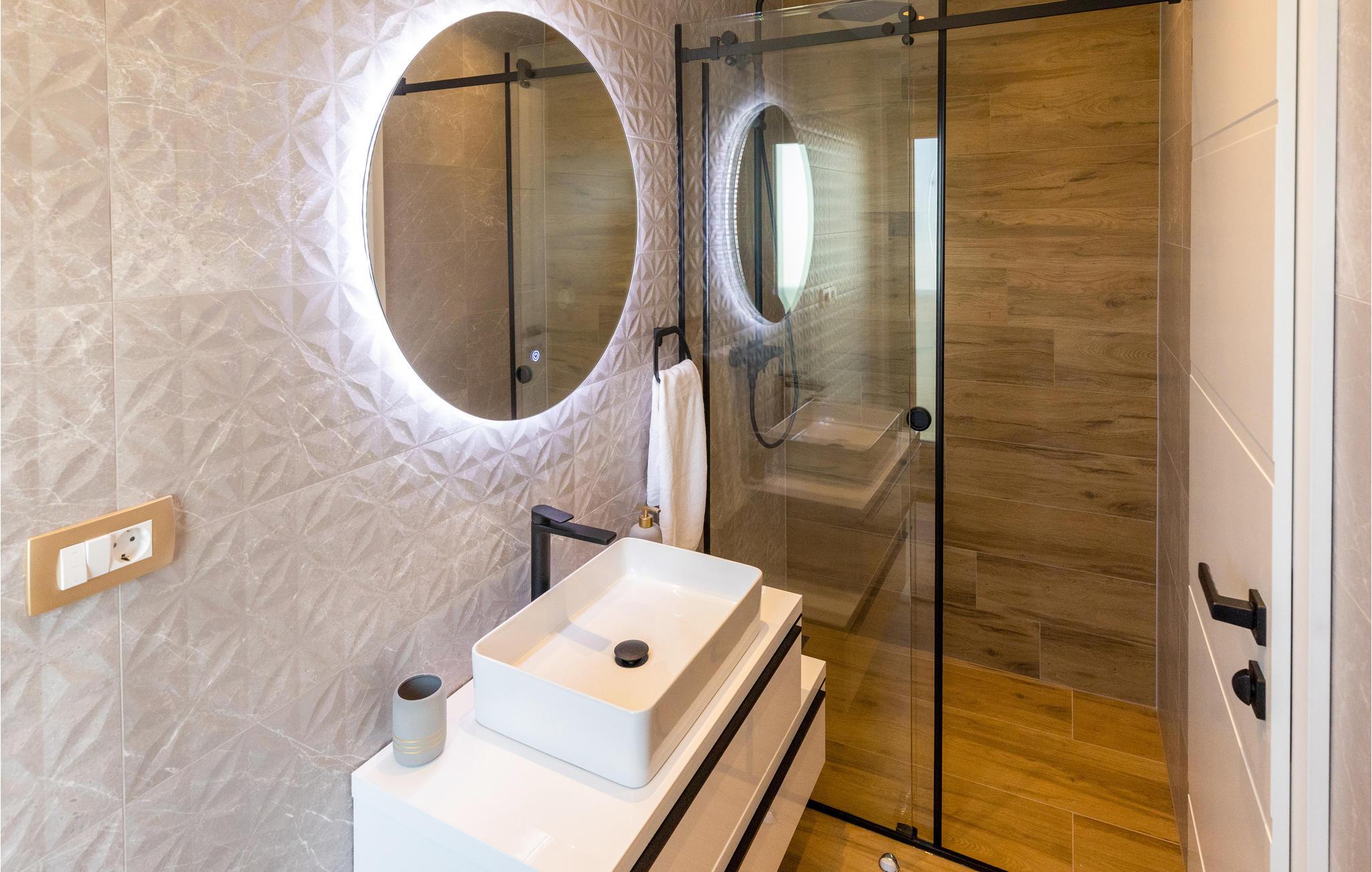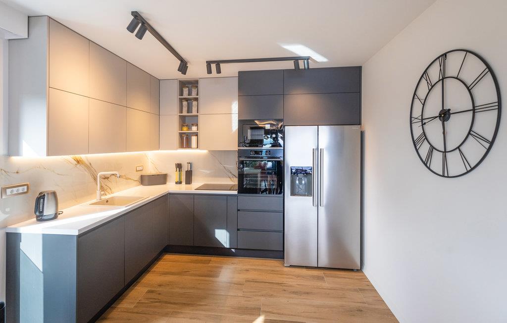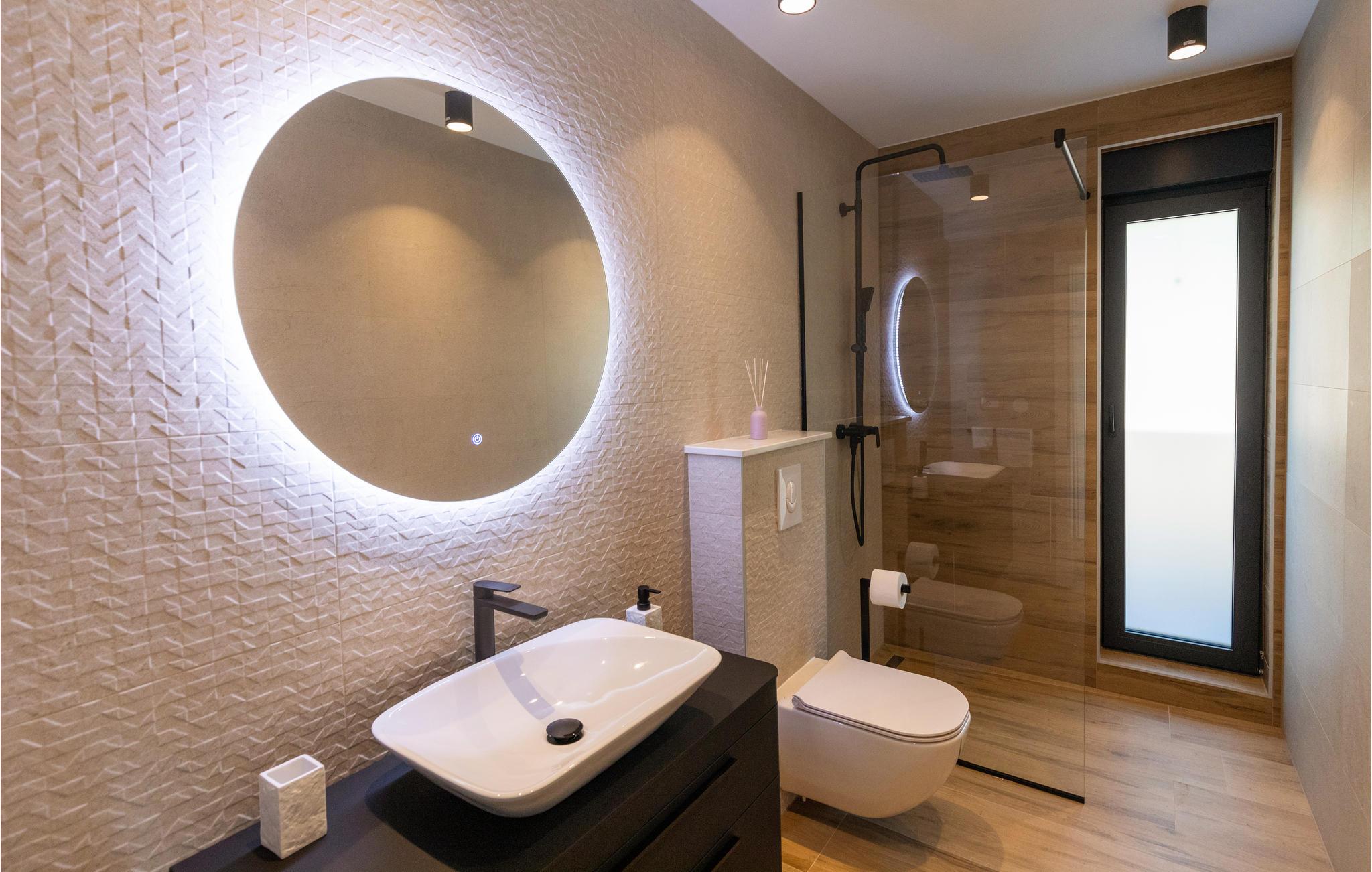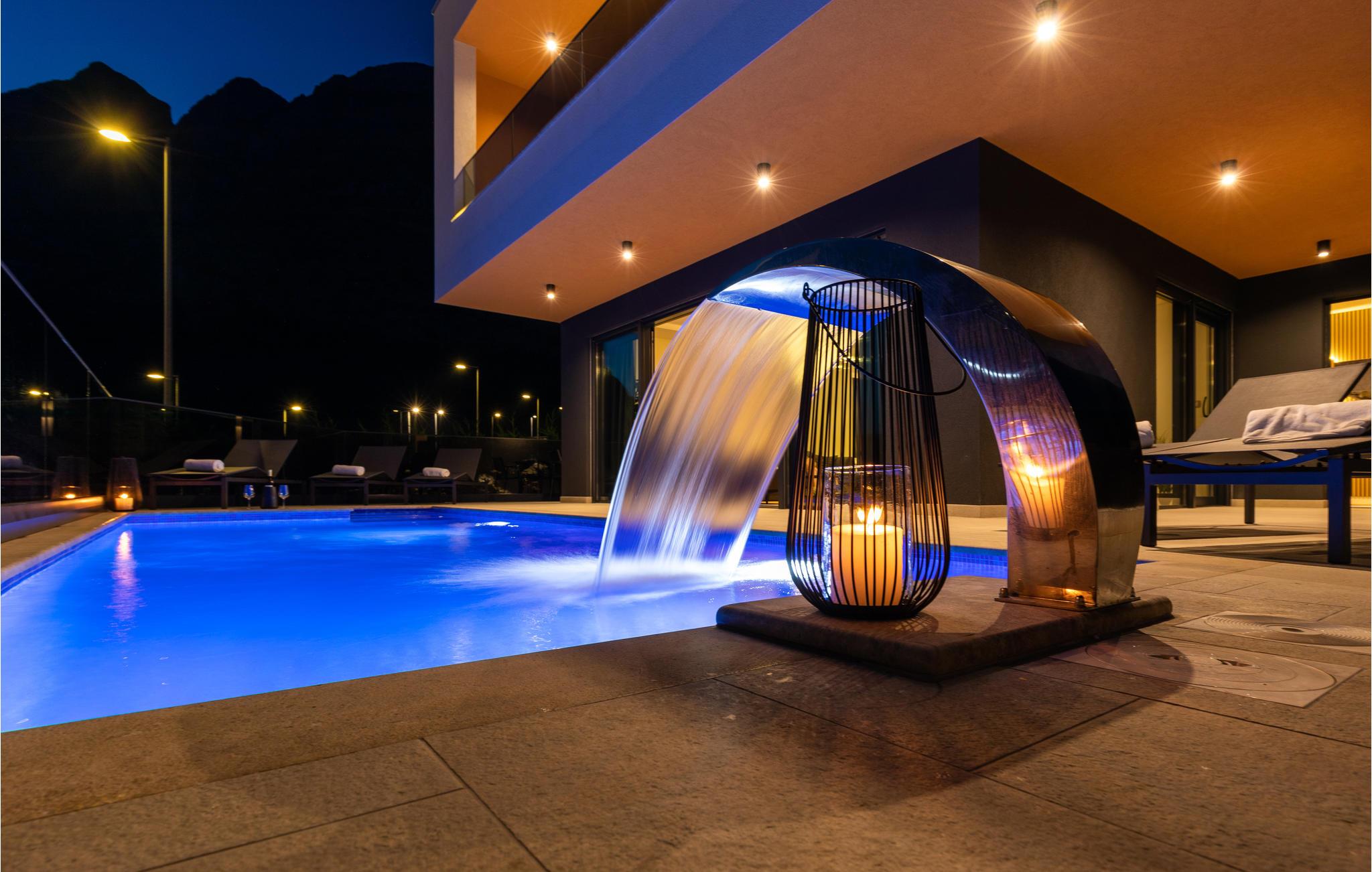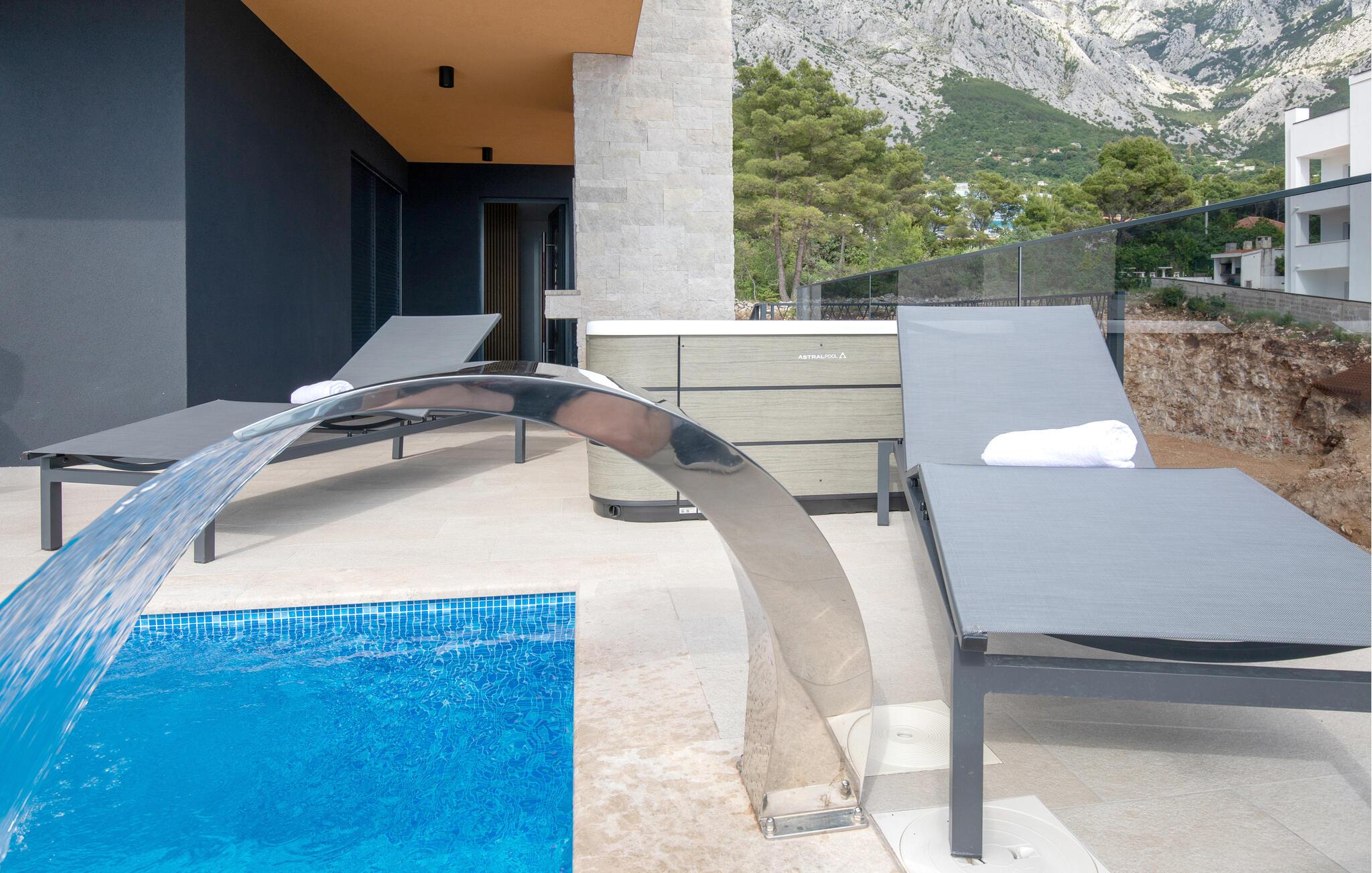 Dette luksuriøse feriehus med mange faciliteter venter på jer med en smuk udsigt over havet. Blot få kilometer fra strandene byder dette skønne og rummelige feriehus velkommen med god adgang til kysten og oplandet. Det moderne hus byder velkommen på tre fuldt udstyrede etager, som byder på komfort, underholdning og en god tid sammen med den store familie eller vennepar. Mens den nederste etage bruges til underholdning og hygge med billard og bordfodbold, kan du en etage over mødes med dine kære i stuen og slappe af i sofaen. Spil kort ved spisebordet eller lav lækre måltider i køkkenet. Den øverste etage er designet til afslapning, hvor du ikke kun kan tilbringe afslappende nætter, men også nyde udsigten over bugten og øerne om morgenen fra balkonen. Glæd dig til mange timer i poolen eller solbadning på terrassen. Om aftenen kan du tilberede din grillmad i den murede grill og afslutte hyggelige aftener udendørs. Fra huset kan du hurtigt komme til strandene ved Adriaterhavet i bil. Besøg de charmerende kystbyer i Dalmatien og dyk ned i det krystalklare hav. Tag på ture til de omkringliggende øer eller planlæg en dagstur til den imponerende by Split. Naturelskere og aktive feriegæster kan også tage på store vandreture i Sveti Jure-bjergene og belønne indsatsen ved opstigningen med en betagende panoramaudsigt!