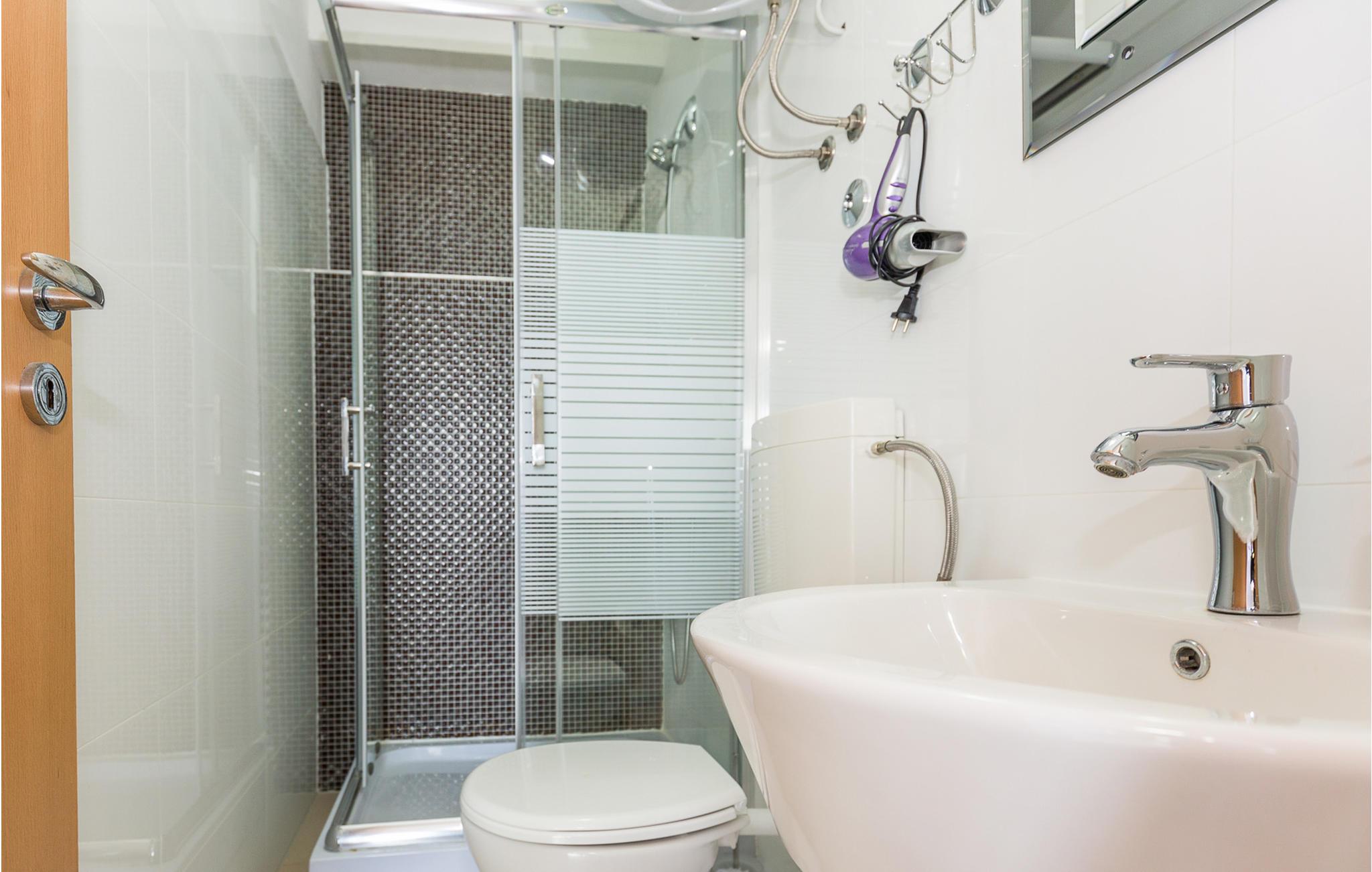 Badeværelse (nr. 1) - WC. Varmt og koldt vand. Bruser