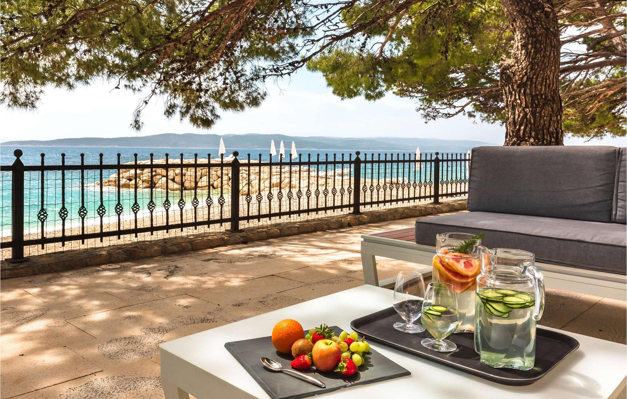 Kun få skridt fra stenstranden kan I dykke ned i det krystalklare hav. I den store have kan I fordybe jer i en god bog på de komfortable loungemøbler og nyde en afslappende siesta på dagsengen.