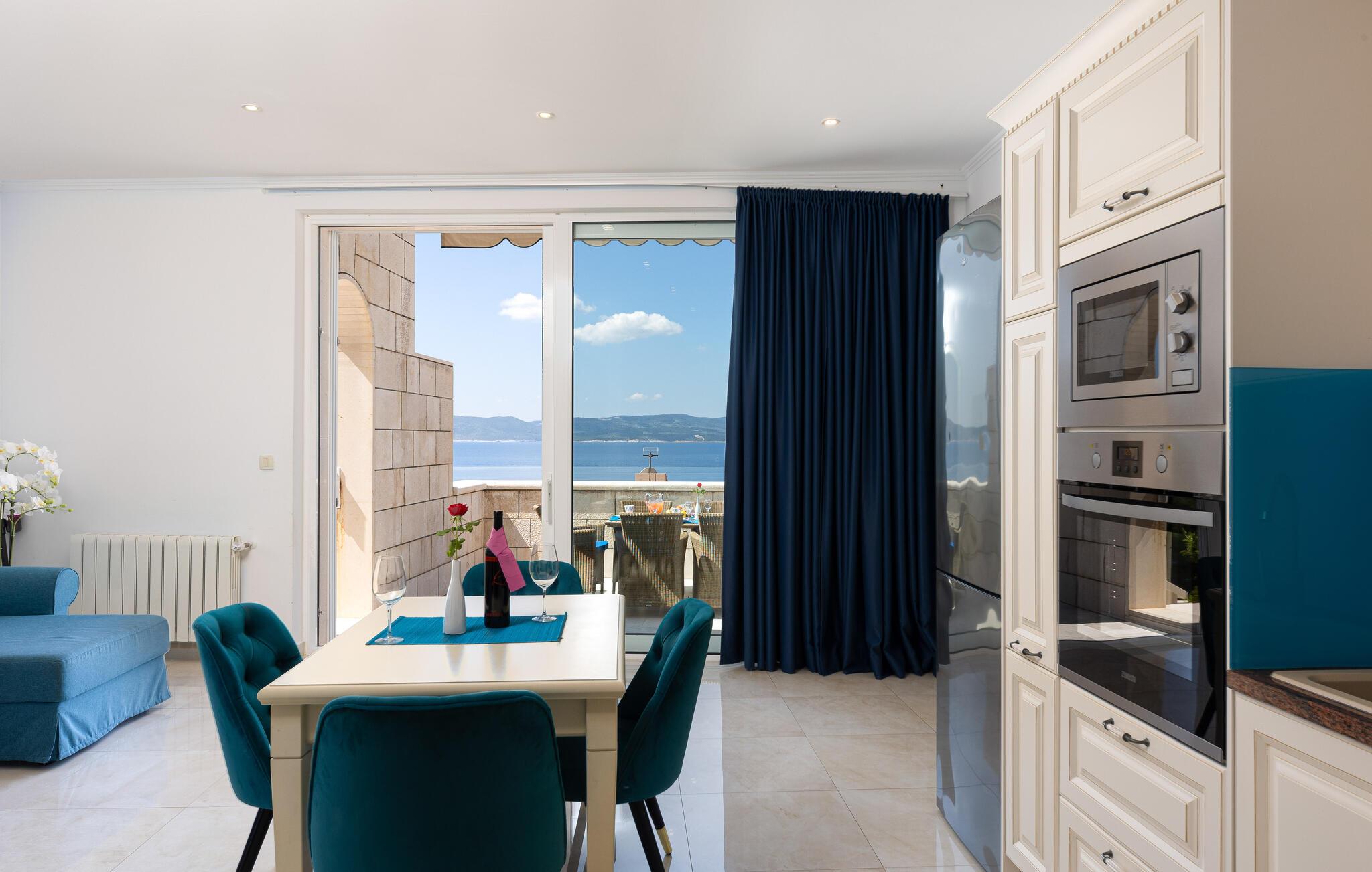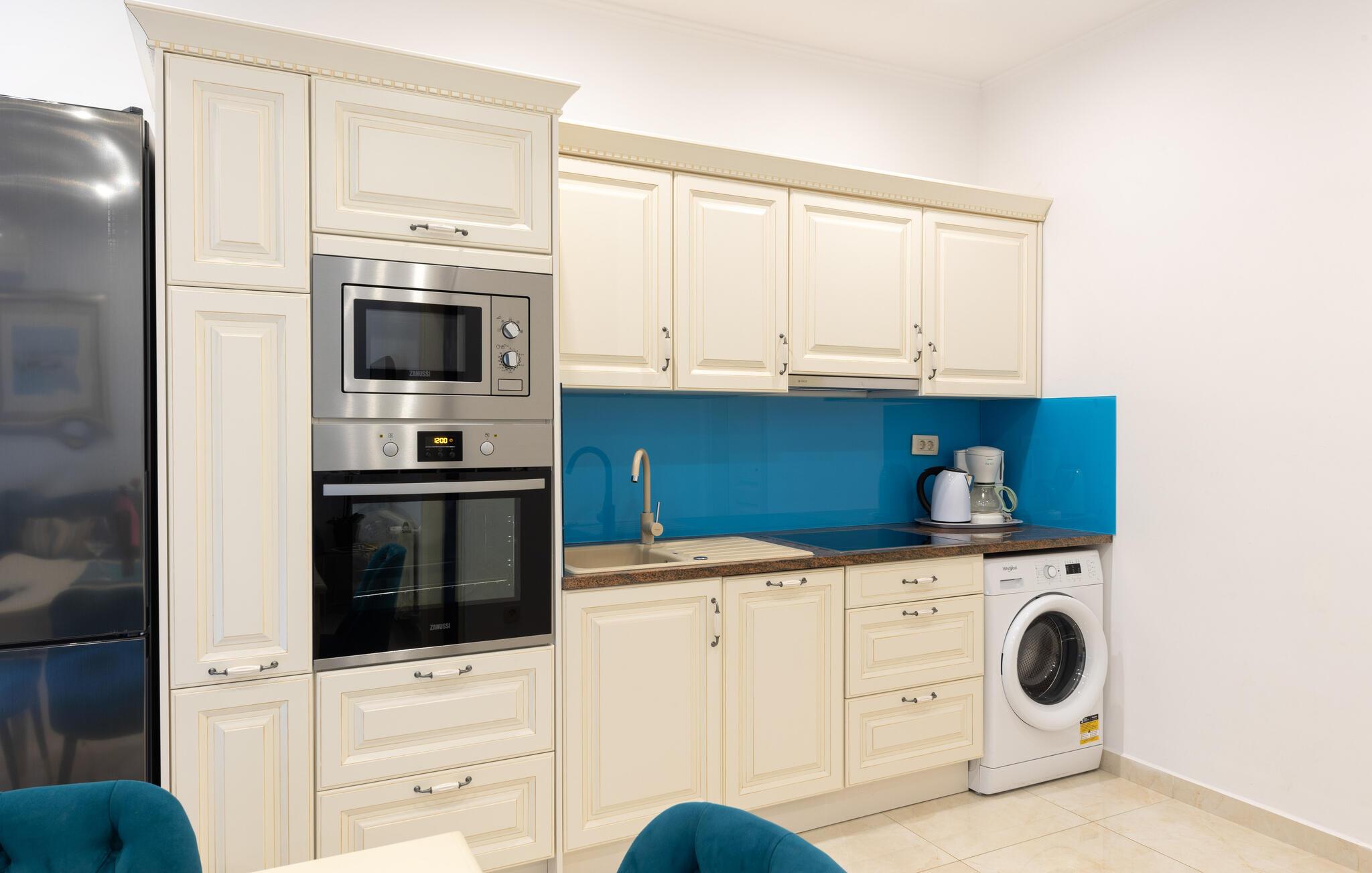 Denne lyse og komfortable ferielejlighed forkæler jer med moderne bekvemmeligheder og en frisk, elegant atmosfære. Gør skønne kulinariske højdepunkter i det åbne køkken og glæd jer til harmoniske stunder i den åbne opholdsstue, mens den blide havbrise strømmer gennem rummene. Føl jer godt tilpas i den store sofa til en filmaften eller hav det sjovt med et brætspil.