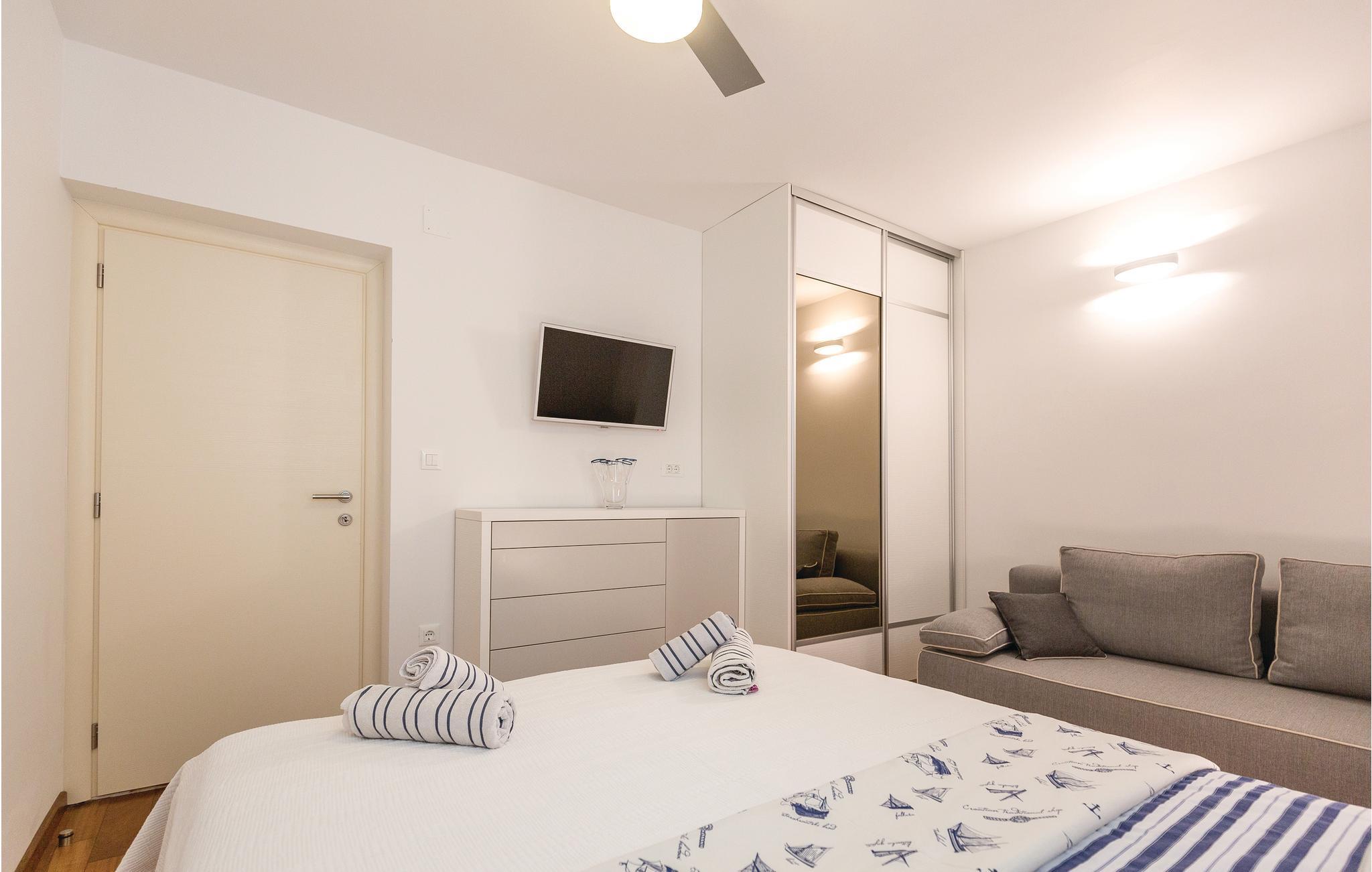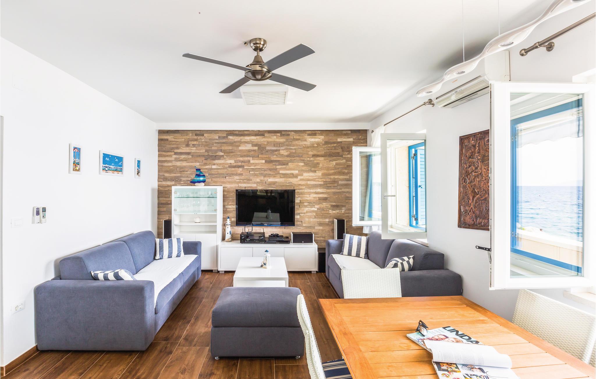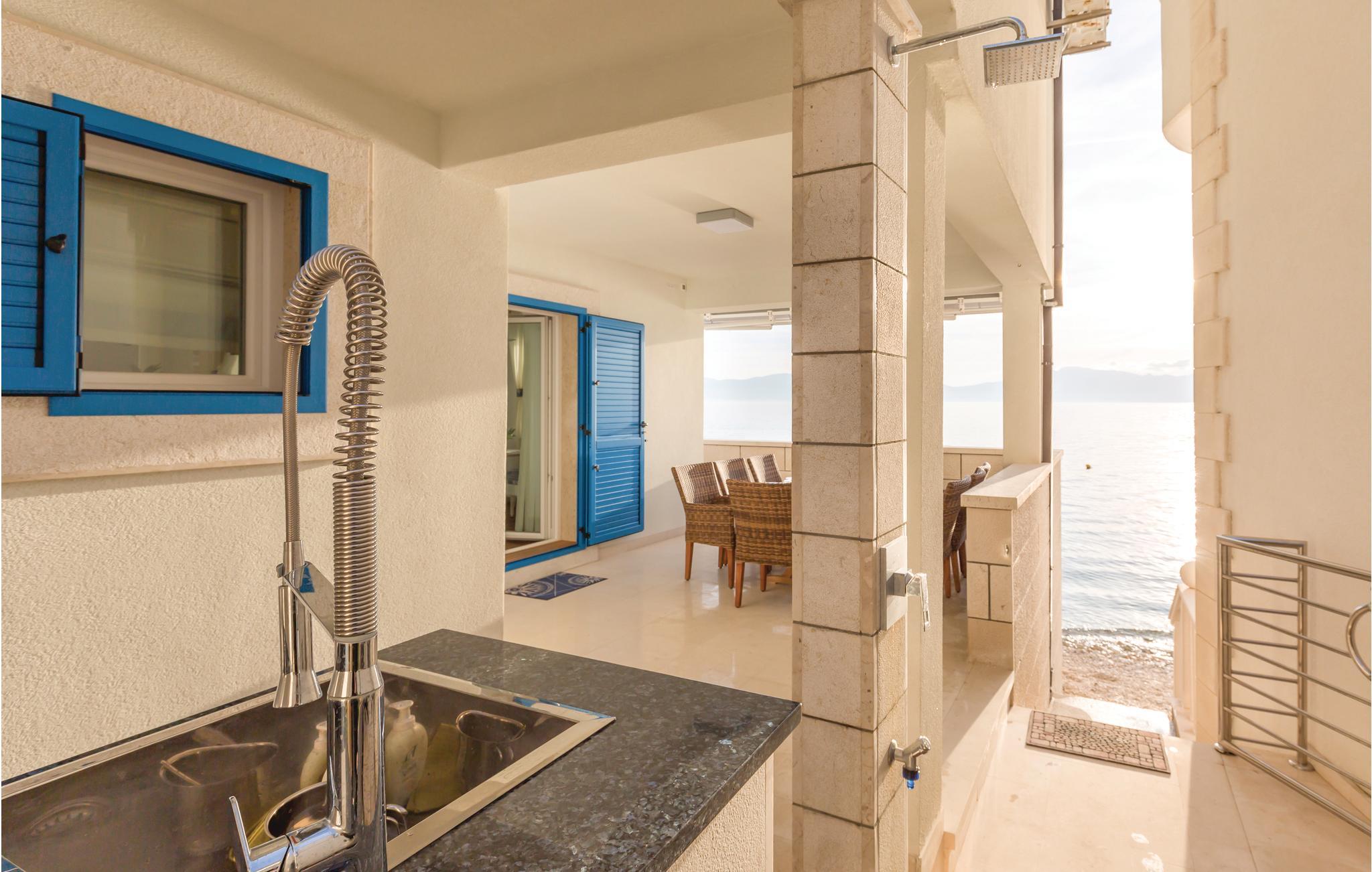 I den lille by Brist, ved Makarskas riviera ligger dette feriehus lige ud til havet. Det er moderne indrettet og fordelt på stueplan og første sal der er forbundet med en indre trappe. Ud over parkeringspladsen, er grunden helt indhegnet. Foran huset er der en overdækket terrasse med grill og kun få trin adskiller jer fra havet og stranden hvor der er solsenge. Børn og barnlige sjæle kan se frem til at spille PlayStation. Det særlige ved denne feriebolig er de attraktive og børnevenlige omgivelser, nærheden til restaurant og forskellige fritidsunderholdning på stranden. Bådeanlægsplads efter aftale med ejer.