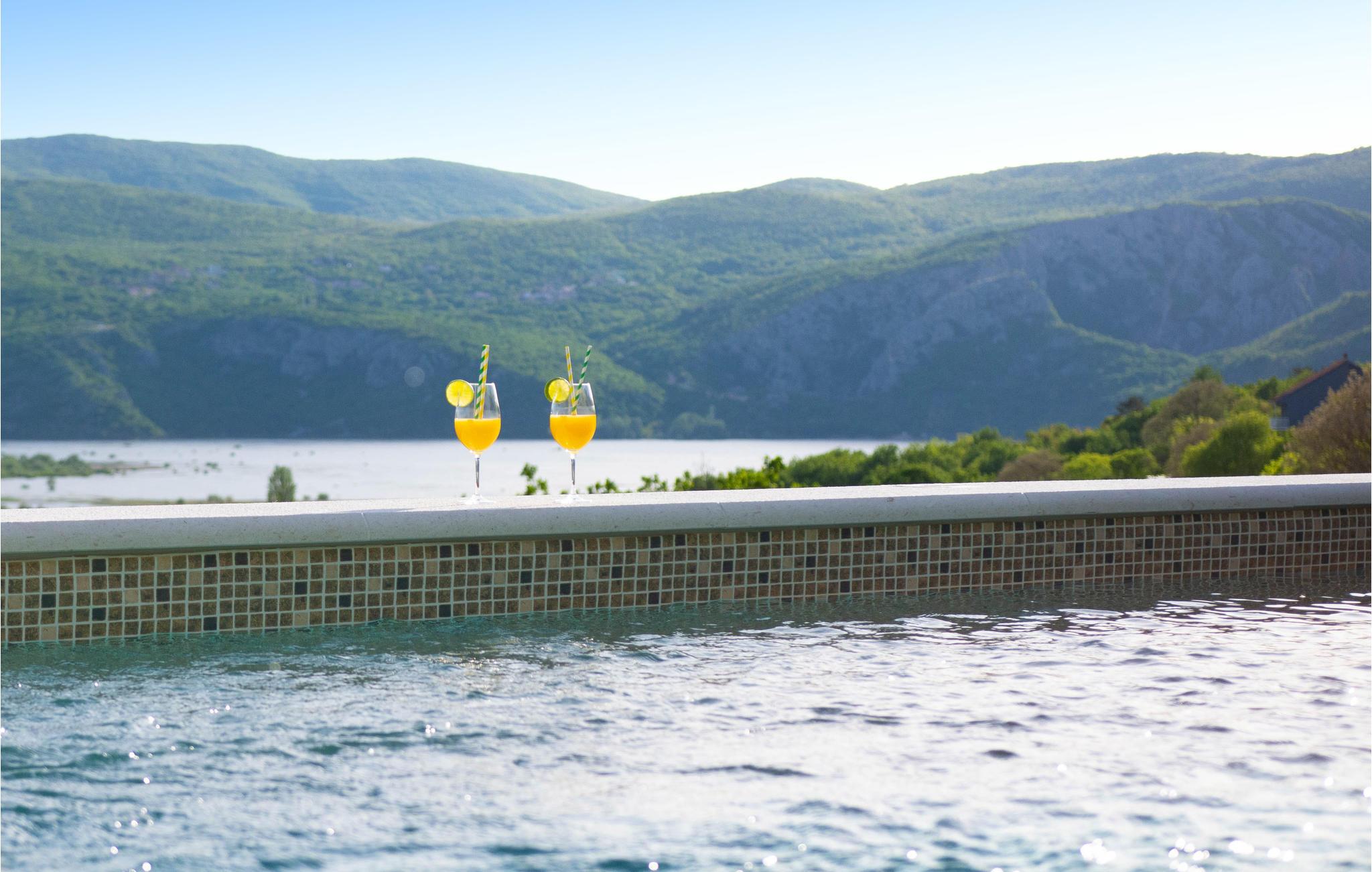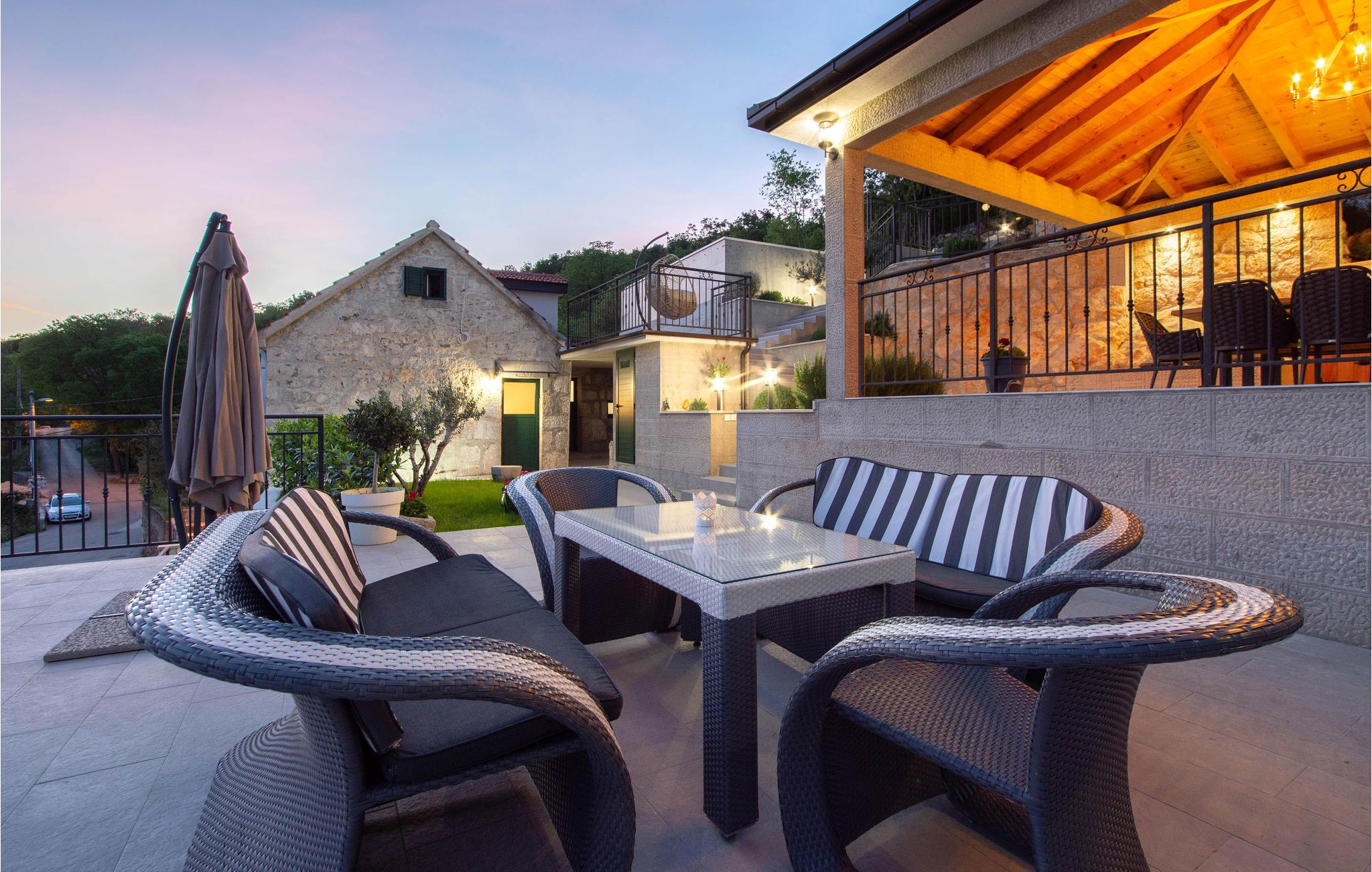 Tag en dukkert udenfor i poolen, hvor der er vidunderlig panoramaudsigt til Biokovo. På den overdækkede terrasse inviterer udekøkkenet dig til at tilberede måltider.