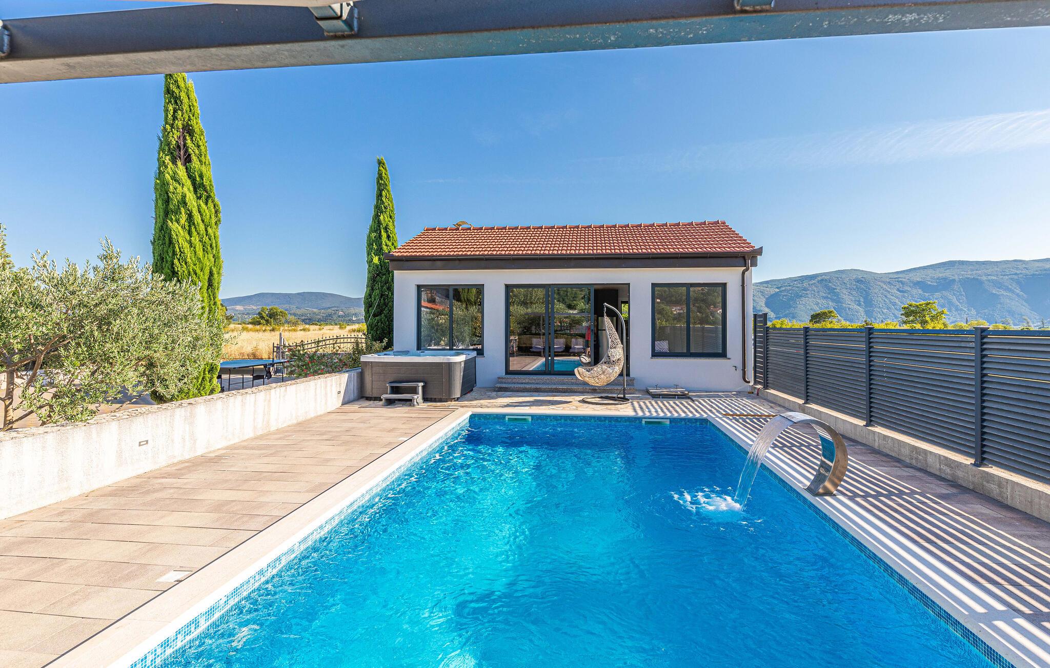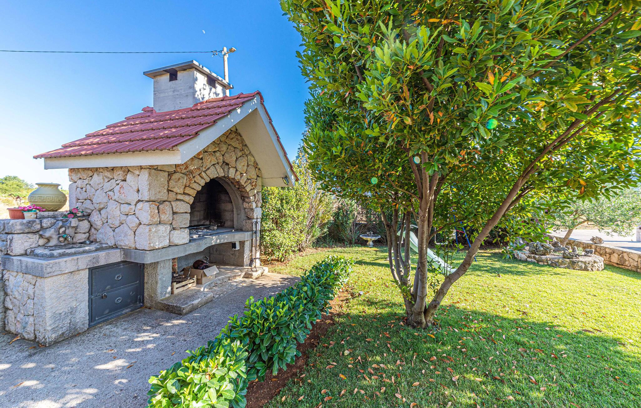 Oplev en meget afvekslende ferie i dette herlige feriehus i Proložac Donji ikke langt fra Imotski. Huset er indrettet med alt der kan gøre ferien behagelig og komfortabel. Efter en svømmetur i poolen er der oplagt at slappe af i solen med en god bog. I sommerkøkkenet og på grillen kan aftensmaden tilberedes i den friske luft. På første sal er der en Playstation til familiens legebørn. Udendørs er der både fitnessapparater og mulighed for at dyrke andre fritidsaktiviteter. I nærheden er en sø, hvor der kan fiskes og en dejlig spadseresti. Hop en tur på cyklen og oplev de skønne omgivelser, og tag del i de utallige former for sommerunderholdning der er i Imotski dens omgivelser. Planlæg afslappede badedage på en af de utallige skønne kiesstrande ved Makarskas riviera.