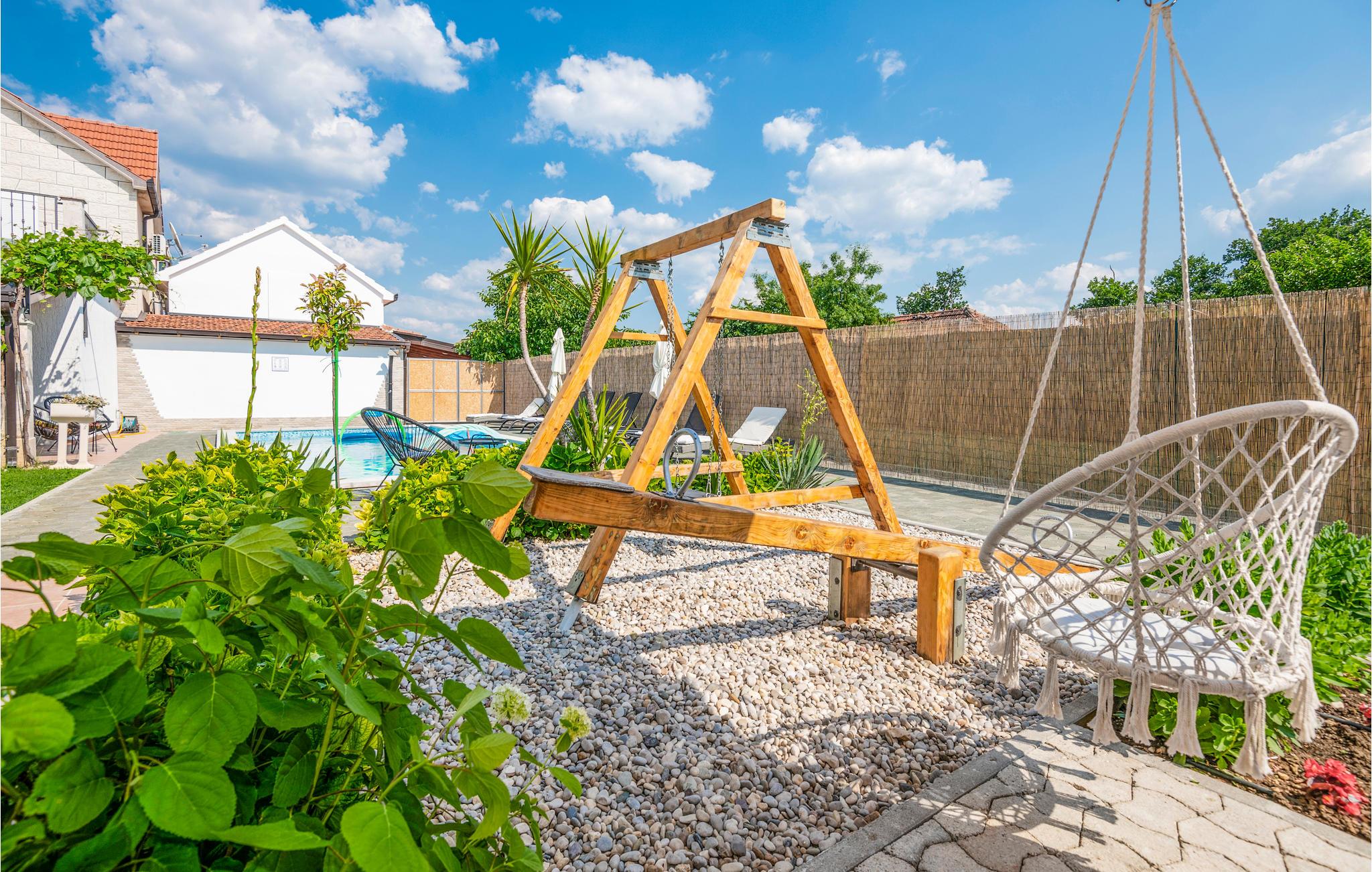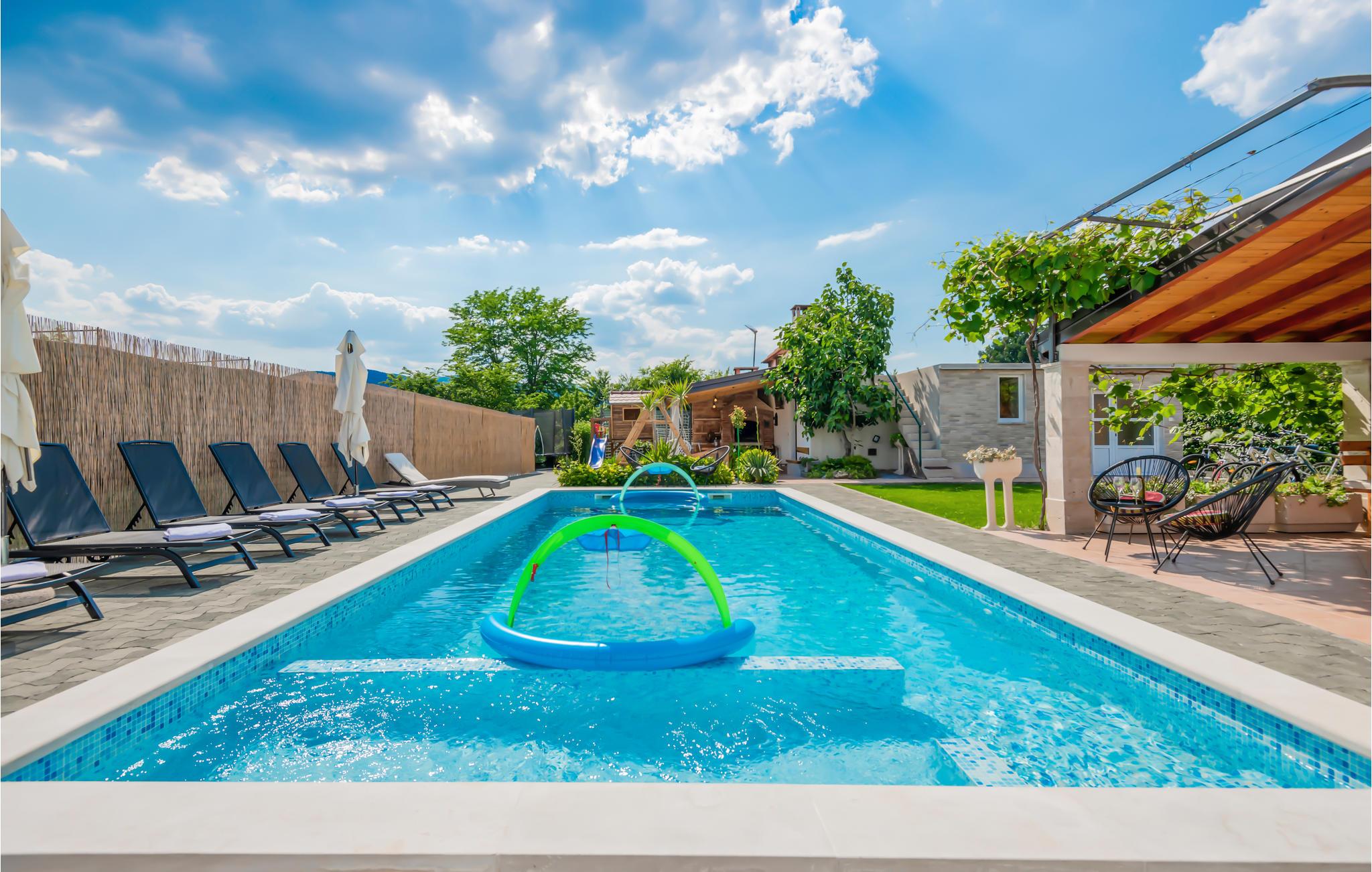 Dette rummelige feriehus ligger i den lille by Prolašac Donji, i nærheden af byen Imotski. Det er indrettet til jeres komfortable ferie som er fuld af behagelige oplevelser. Foran huset er der en overdækket terrasse, ved siden af den store pool, hvor I kan slappe af på de hede sommerdage. Jeres børn kan tilbringe timer på legepladsen og I kan lave mad udendørs på grillen. Der kan dyrkes flere former for sport på den nærliggende sportsplads, bl.a. fod- og basketball. Ved byen Imotski er der en vidunderlig sø, hvor I også kan fiske. Det tager kun ca. en halv time at køre til de populære kystbyer Baška Voda, Brela og Makarska.