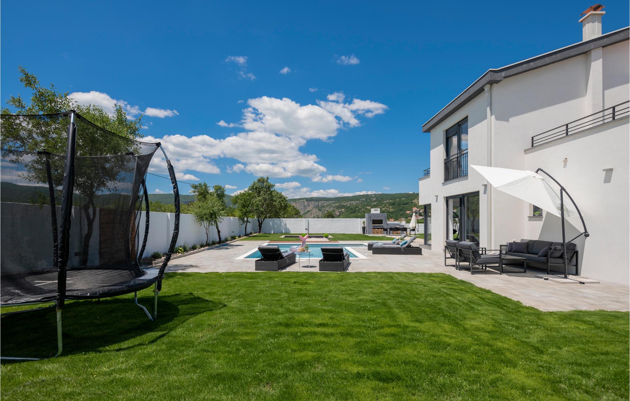 I kan tage en dukkert i poolen foran huset eller slappe af med en god bog. Tilbered dine yndlingsgrillespecialiteter, der er også udendørs faciliteter for børn. Der er en fiskesø i nærheden med en smuk promenade. Der er en fodbold-, tennis- og basketballbane kun 1 km fra huset, som I kan bruge gratis. Den nærliggende by Imotski byder på mange kulturelle begivenheder om sommeren. I kan også besøge Makarska Riviera med sine smukke stenstrande.