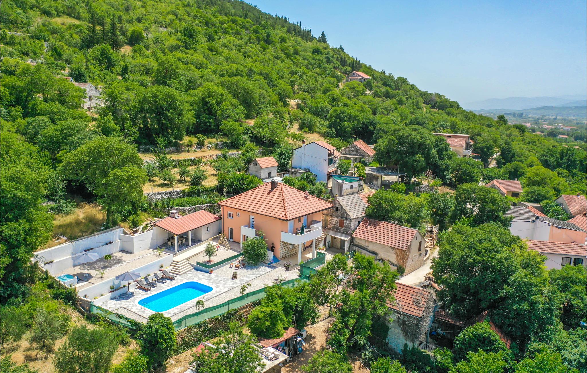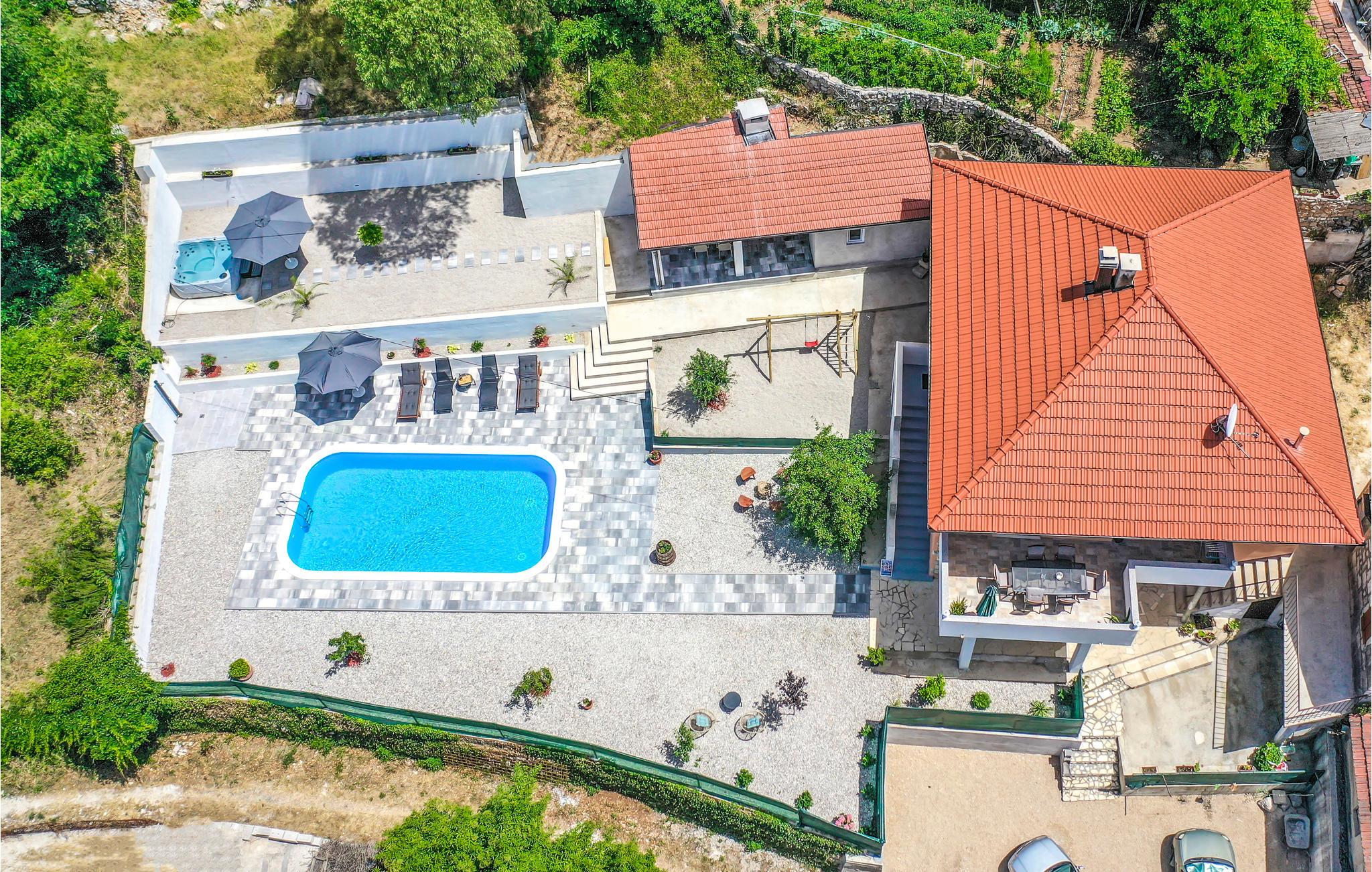 Et højdepunkt i huset er det smukke udendørs område med swimmingpool, hvor I kan tilbringe mange timer i vandet eller slappe af på liggestolene. Afslut dagen med en tur i jacuzzien og et lækkert måltid fra grillen. I kan nemt tilberede dine yndlingsretter i udekøkkenet.