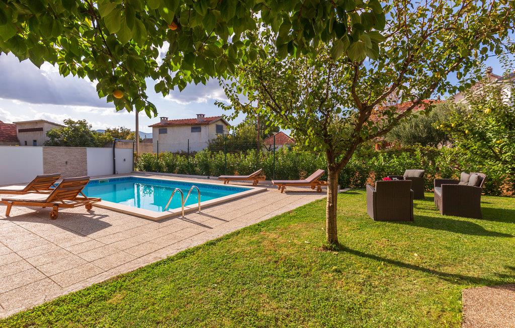 Dette enkelt og indbydende indrettede feriehus ligger i byen Donji Prolozac. Huset er omgivet at frugttræer og vinbjerge og i haven er poolen parat, til vandsjov og svømmeture på de dejligt varme og lange feriedage. Terrassen indbyder til hyggeligt udendørs samvær og på legepladsen er der mange timers underholdning til de små familiemedlemmer. Til de større findes der aktivitetsrum med spændende udfordringer. Til byen Imotski, med mange former for ferieunderholdning er der seks km. Der er 25 km til de skønne kiesstrande ved Makarskas riviera.
