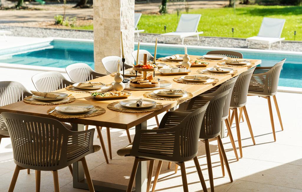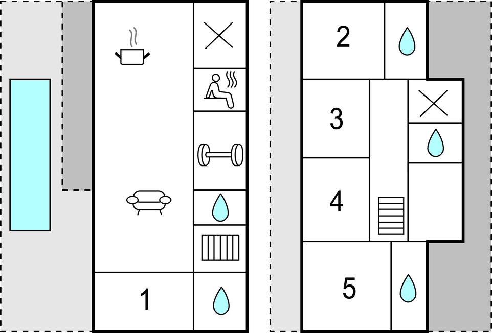 Begynd jeres dag med en forfriskende dukkert i den rummelige pool omgivet af en elegant solterrasse, og slap af i det udendørs spabad. Spis sammen i det skyggefulde udendørsområde eller slap af i hængekøjen i havens skyggefulde skovområde og lad jeres sjæl slappe af. Udearealet byder de små feriegæster på talrige legemuligheder med trampolin, gynge, rutsjebane og legehus. Hele familien kan spille fodbold eller badminton i haven.
