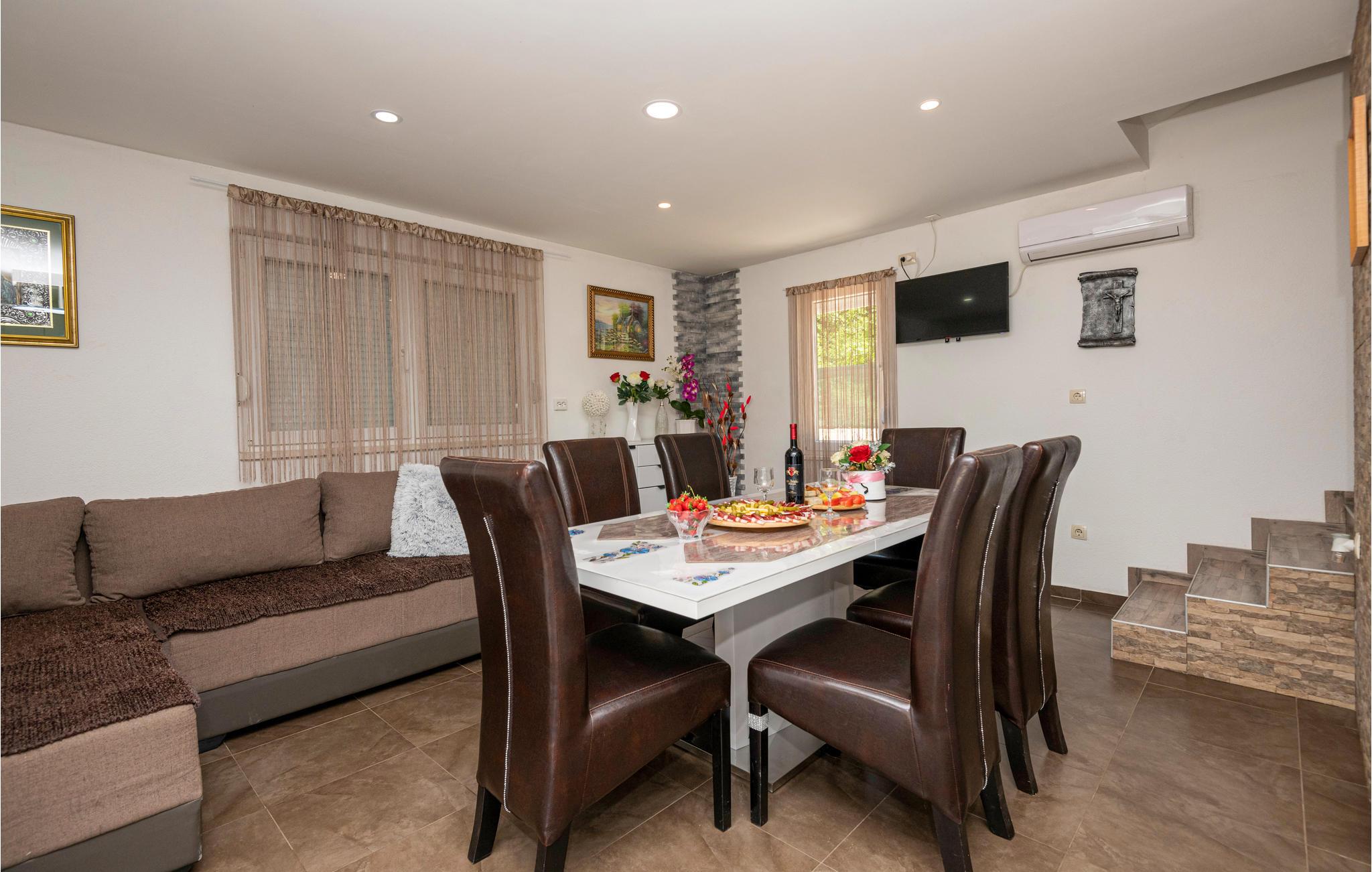 Velkommen til dette fine feriehus med udsigt til landskabet. Her kan du tilbringe en afslappende ferie under den kroatiske sol. Poolen er et højdepunkt og bliver helt sikkert genstand for mange timers badesjov hver dag. På grunden er der også gynge, trampolin, rutchebane og legehus til de mindste gæsters underholdning. Til huset hører flere terrasser, hvor solen og feriens måltider kan nydes.