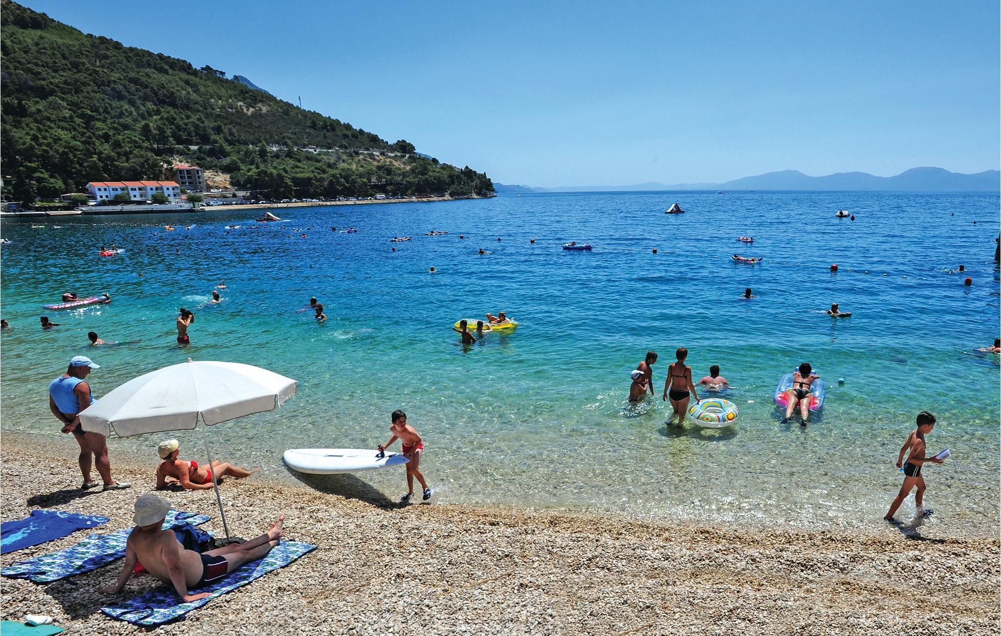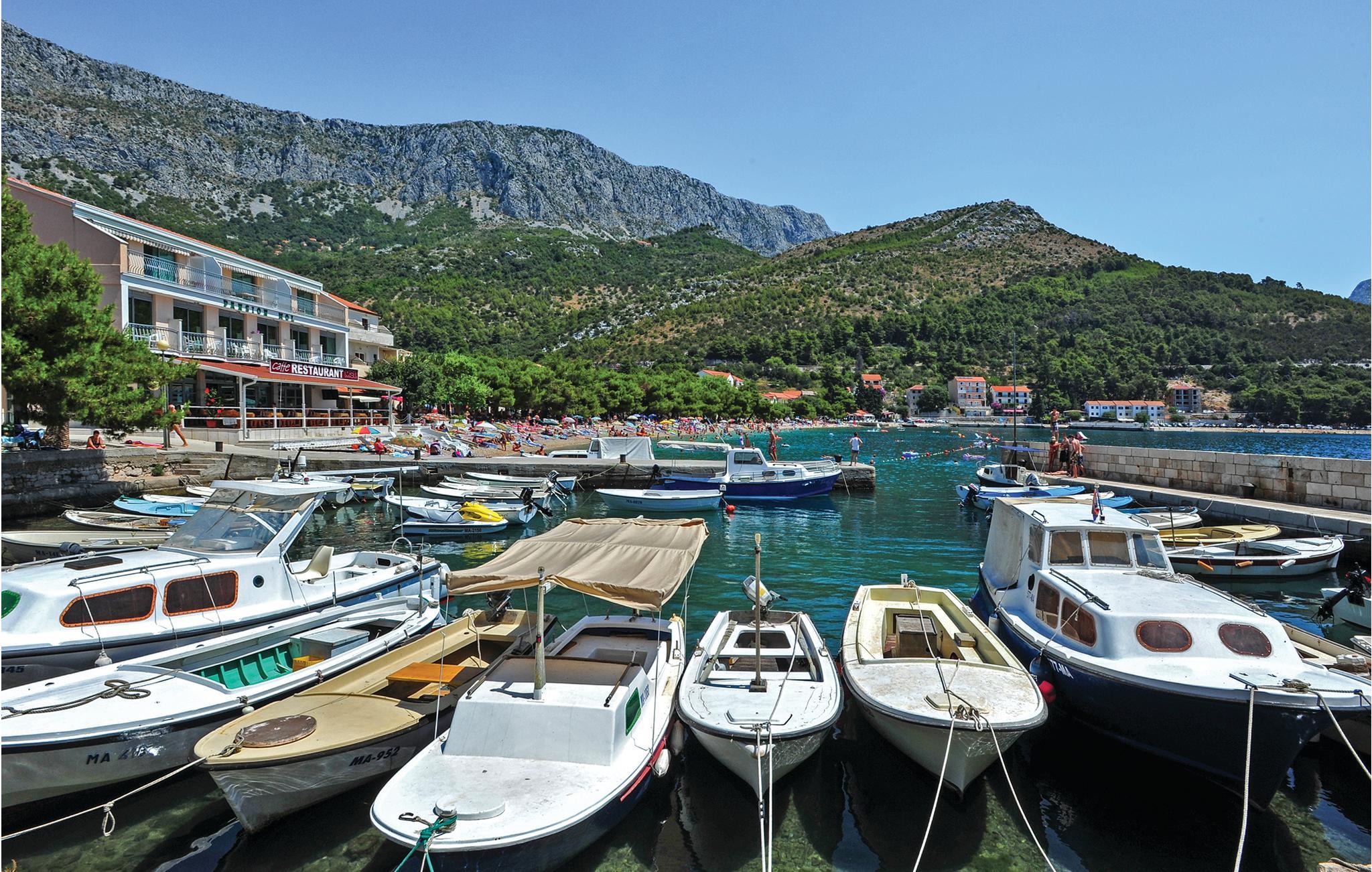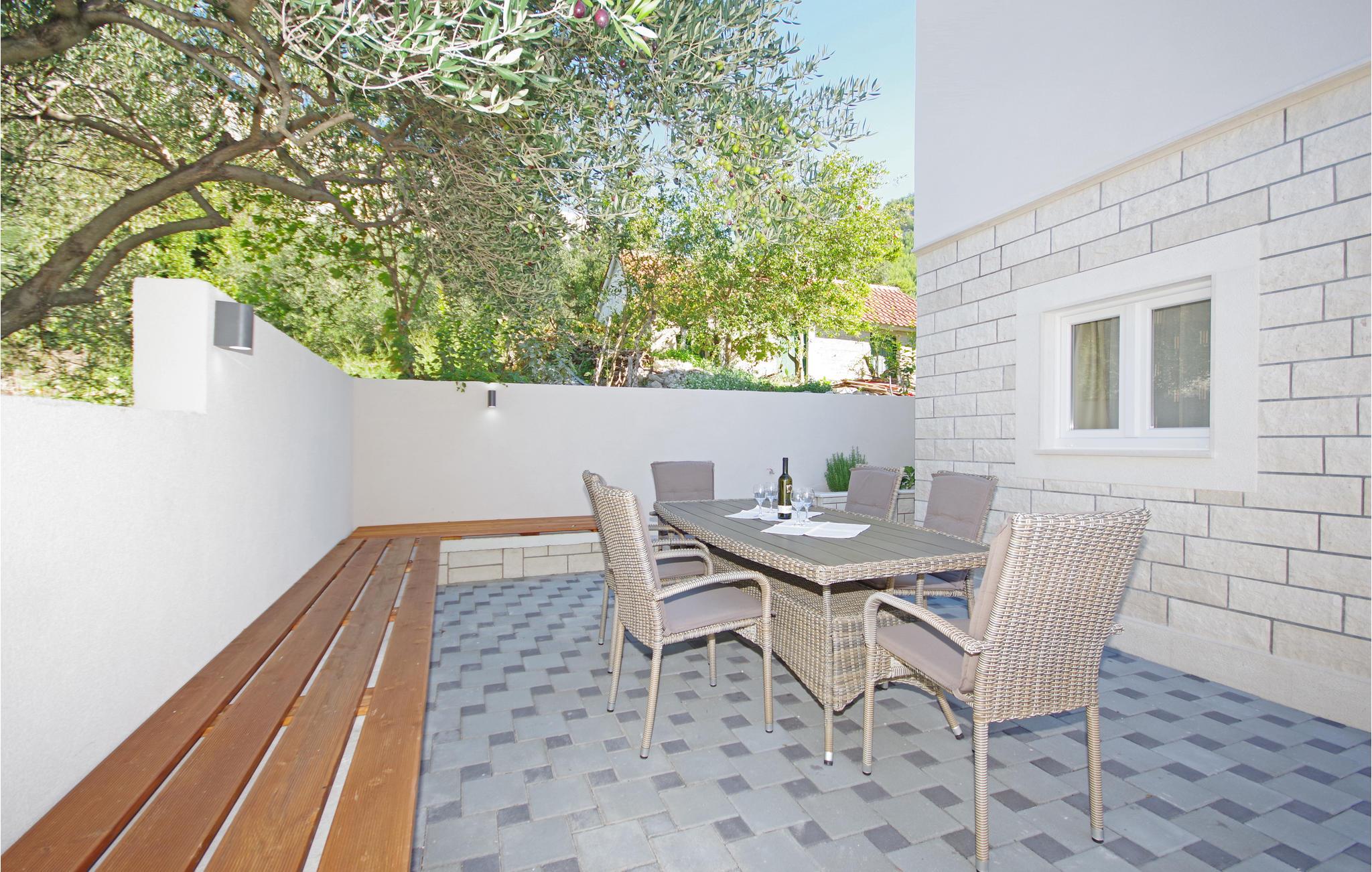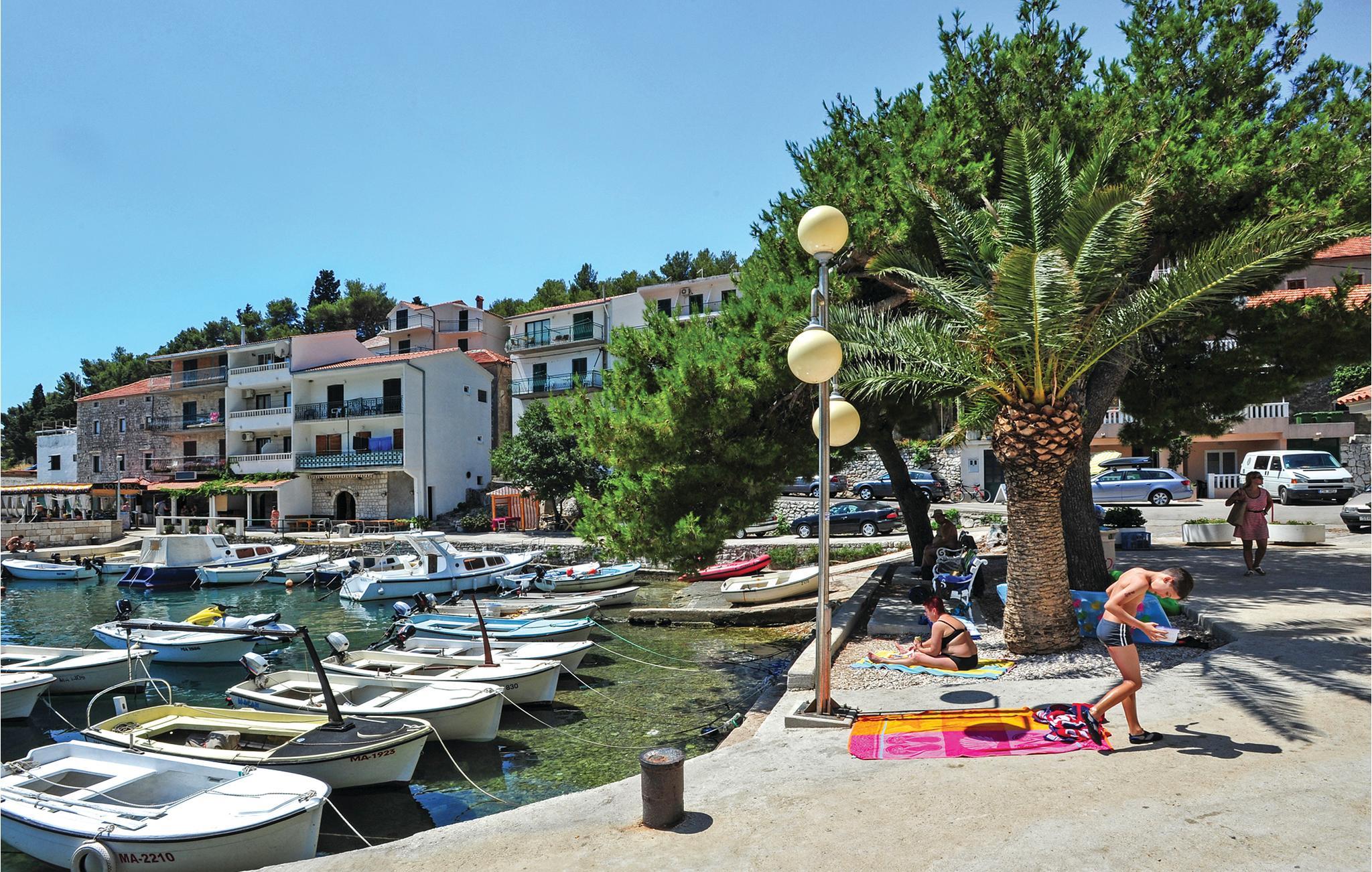 Tilbring en afslappende ferie i Drvenik, ved den dejlige riviera i Makarska. Dette flotte feriehus ligger i bymidten i beboelsen Gornja Vala og byder på alt, I skal bruge til en behagelig ferie. Foran huset er der anlagt en terrasse, som er omgivet af oliventræer og indbyder til afslappende timer i godt selskab. Vi anbefaler dagsture til øen Hvar, som I kan komme til med færgen fra Drvenik. Der står to parkeringspladser til rådighed ca. 50 m fra huset.