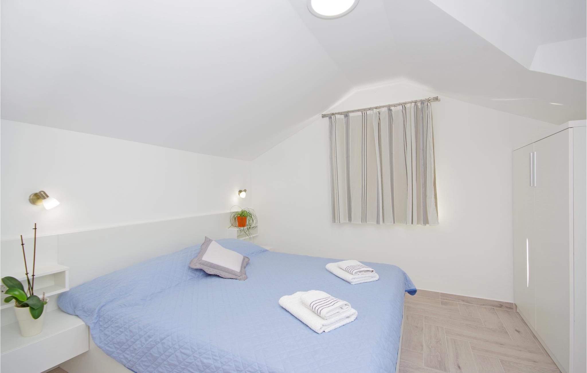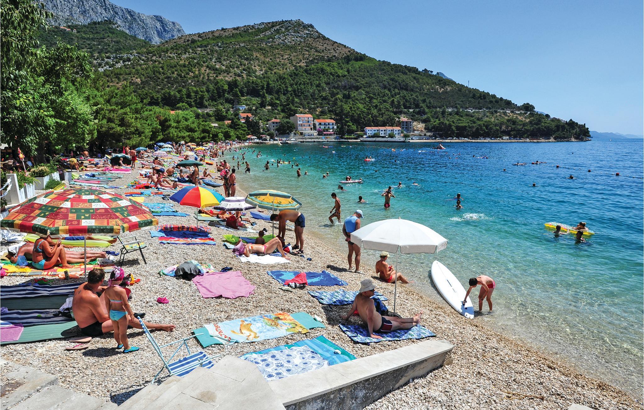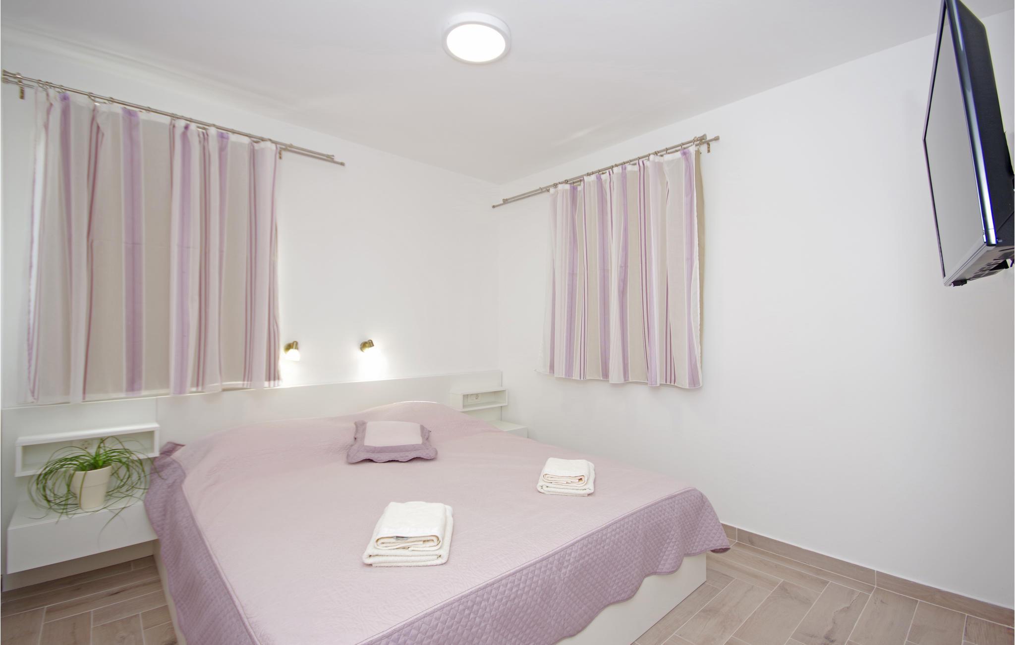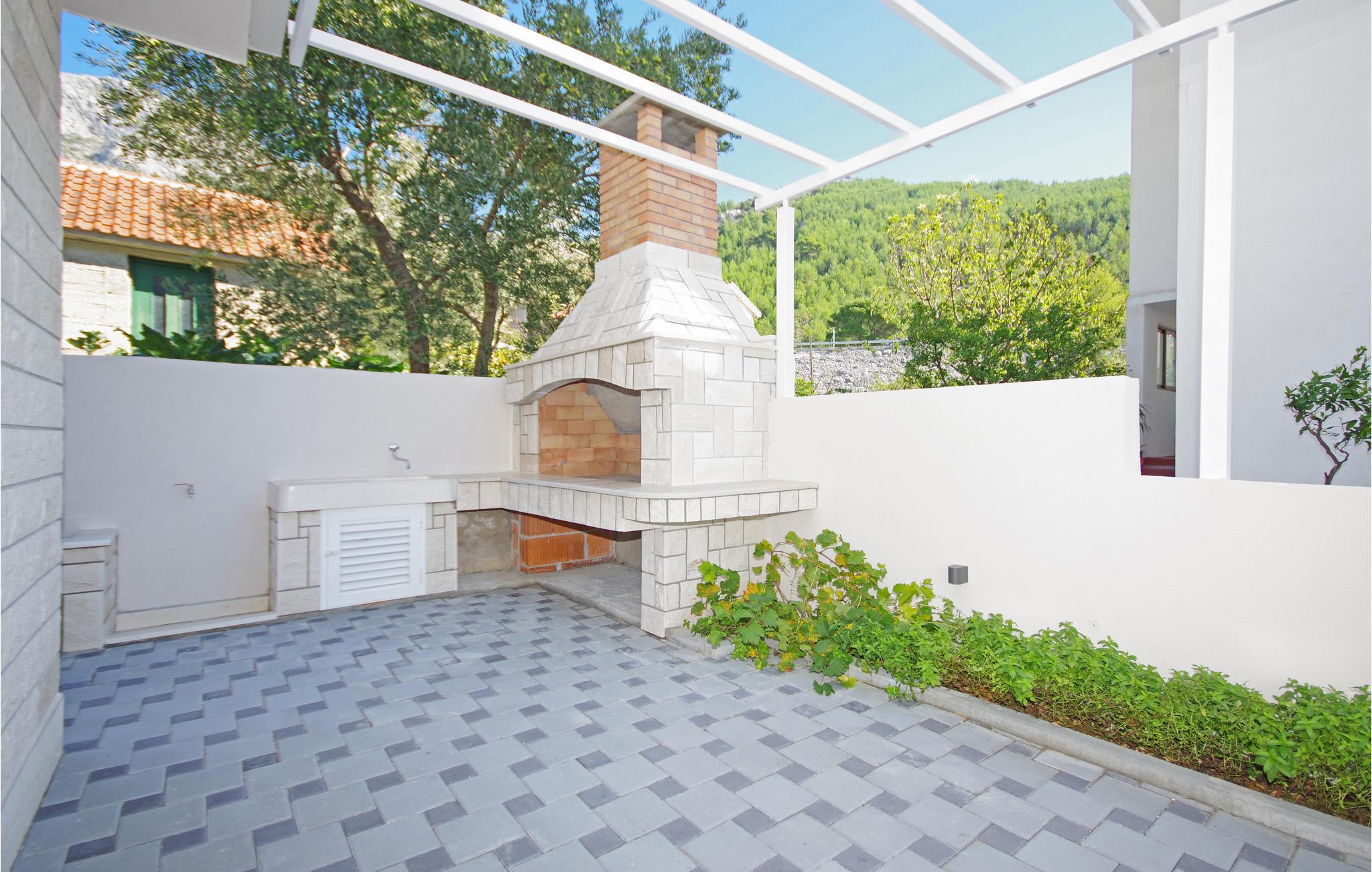 Tilbring en afslappende ferie i Drvenik, ved den dejlige riviera i Makarska. Dette flotte feriehus ligger i bymidten i beboelsen Gornja Vala og byder på alt, I skal bruge til en behagelig ferie. Foran huset er der anlagt en terrasse, som er omgivet af oliventræer og indbyder til afslappende timer i godt selskab. Vi anbefaler dagsture til øen Hvar, som I kan komme til med færgen fra Drvenik. Der står to parkeringspladser til rådighed ca. 50 m fra huset.