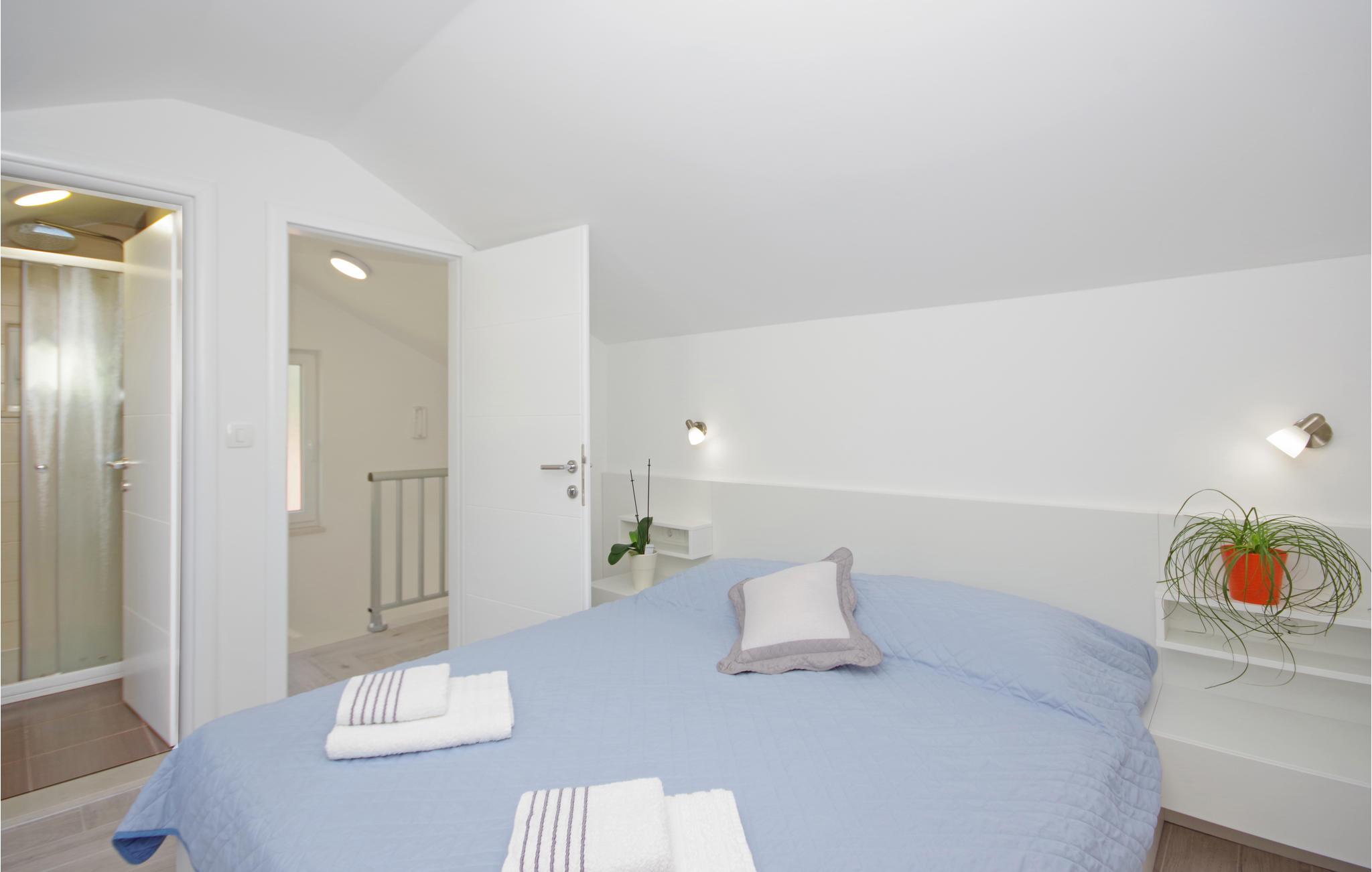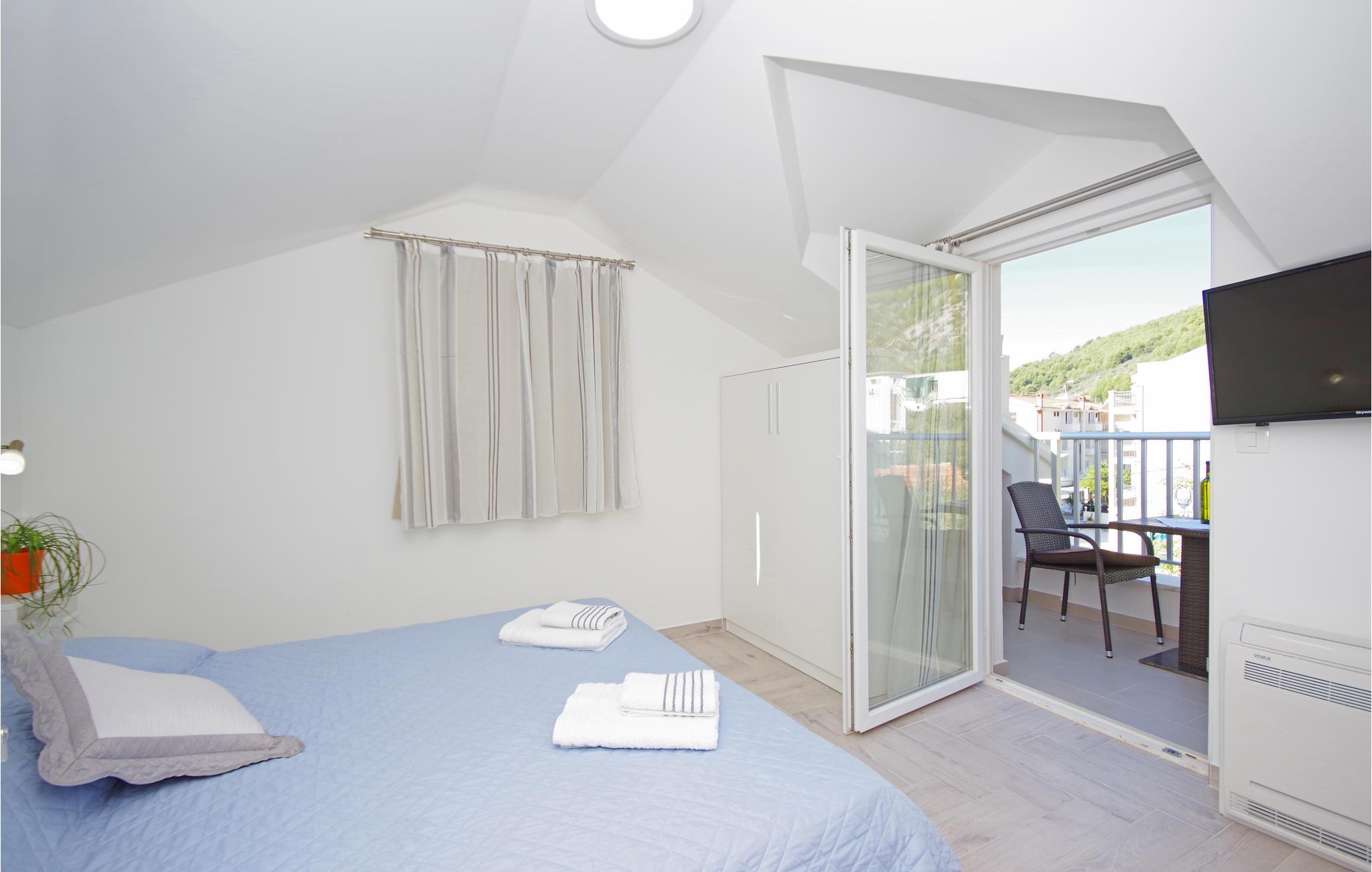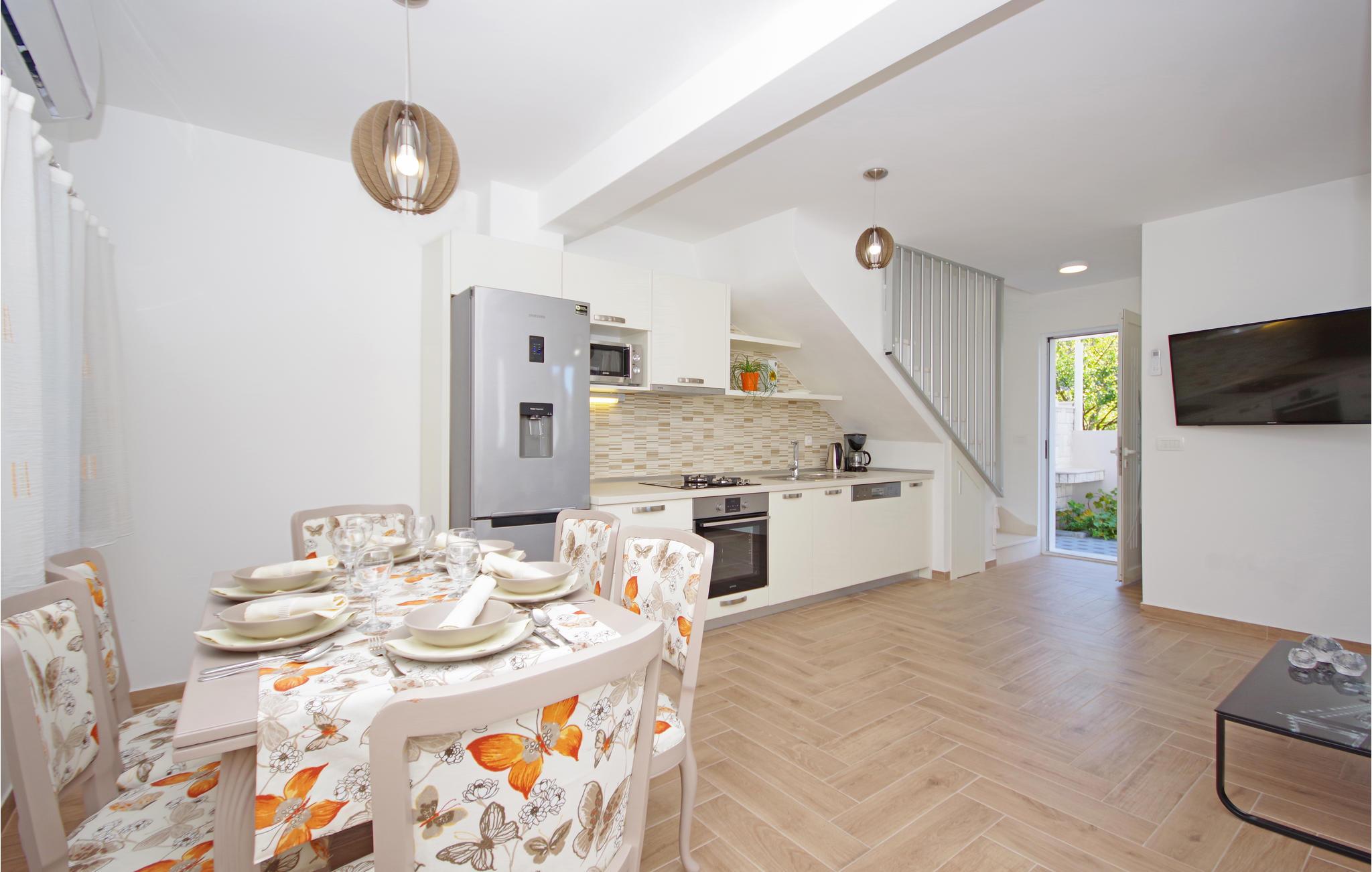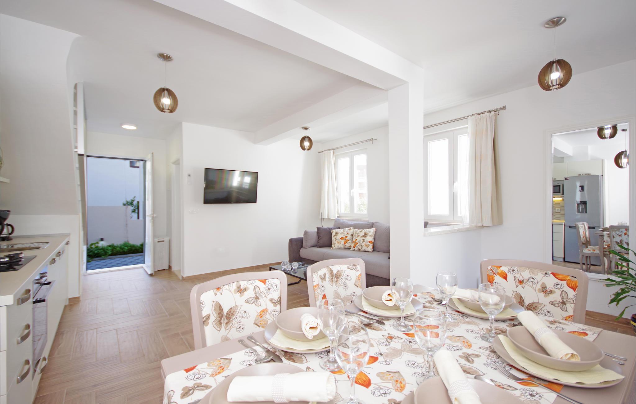 Tilbring en afslappende ferie i Drvenik, ved den dejlige riviera i Makarska. Dette flotte feriehus ligger i bymidten i beboelsen Gornja Vala og byder på alt, I skal bruge til en behagelig ferie. Foran huset er der anlagt en terrasse, som er omgivet af oliventræer og indbyder til afslappende timer i godt selskab. Vi anbefaler dagsture til øen Hvar, som I kan komme til med færgen fra Drvenik. Der står to parkeringspladser til rådighed ca. 50 m fra huset.