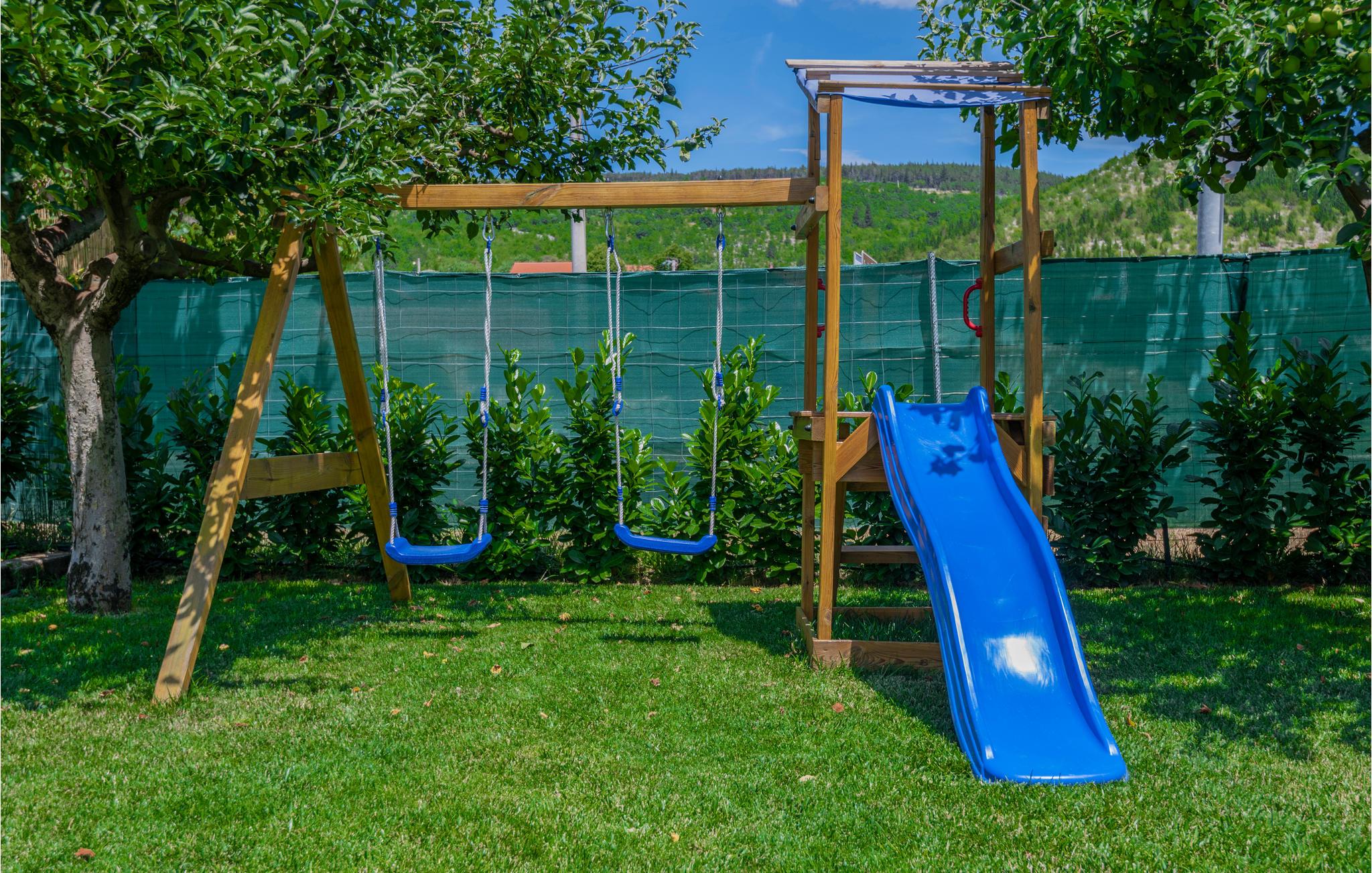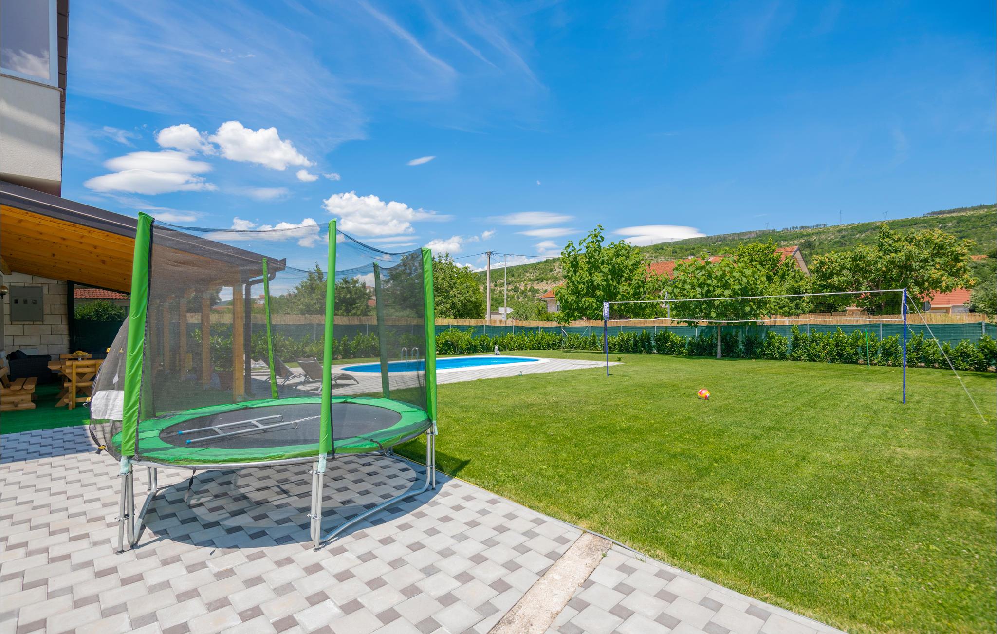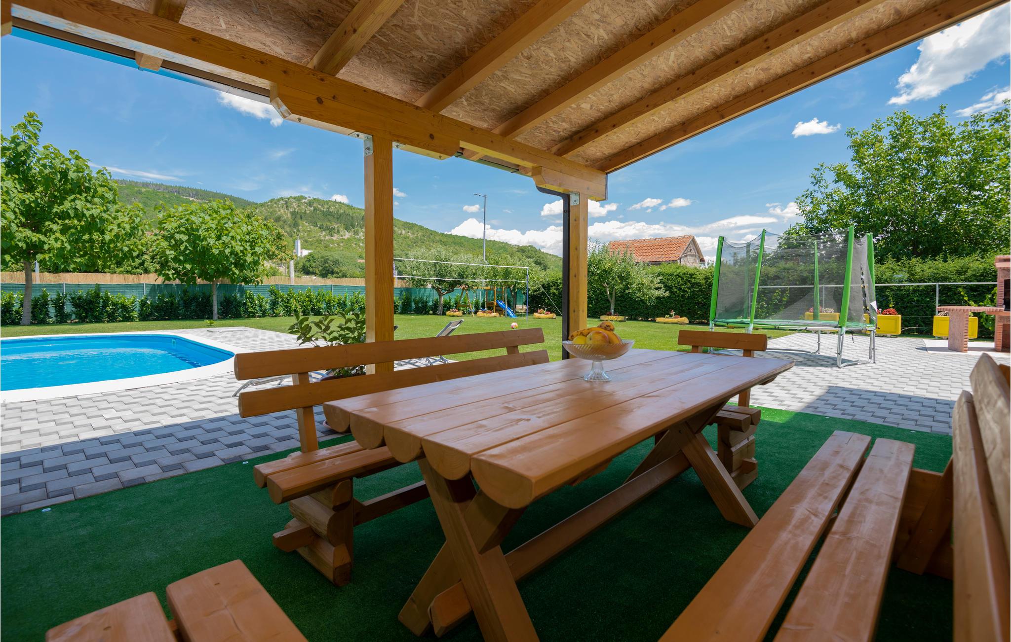 Dette fantastiske feriehus med pool ligger i Mellemdalmatiens bagland, i den lille by Glavina Donja. Det er fordelt på to etager med ekstra køkken og aktivitetsrum i stueplan, med billard playstation og dart. Mens soveværelserne og stuen der er kombineret med køkkenet ligger på første sal. Hop en tur i poolen når som helst og nyd at se børnene lege i haven. Lav mad på grillen, drik et glas af den hjemmelavede vin til det færdige resultat, mens den lune sommeraften bliver til nat. Der er dejlige kiesstrande i både Baška Voda og Brela. Grib chancen og besøg de historiske byer: Imotski, Makarska og Split.