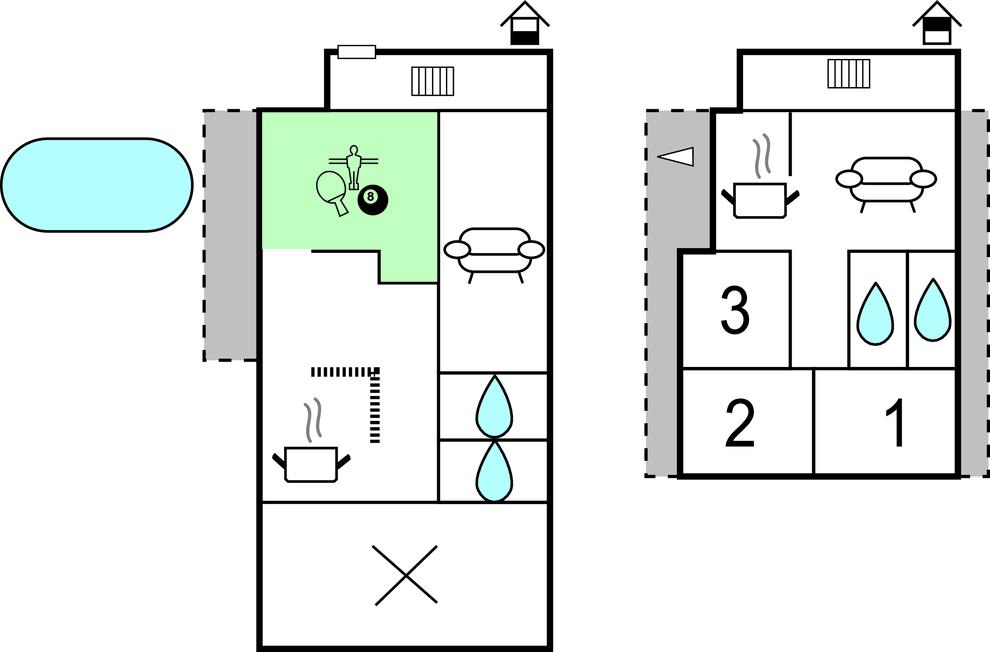 Opholdsstue - 2 Sovepladser. (Sofa, madras eller lignende).