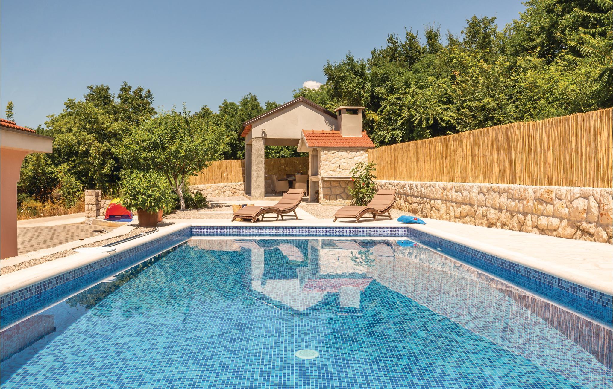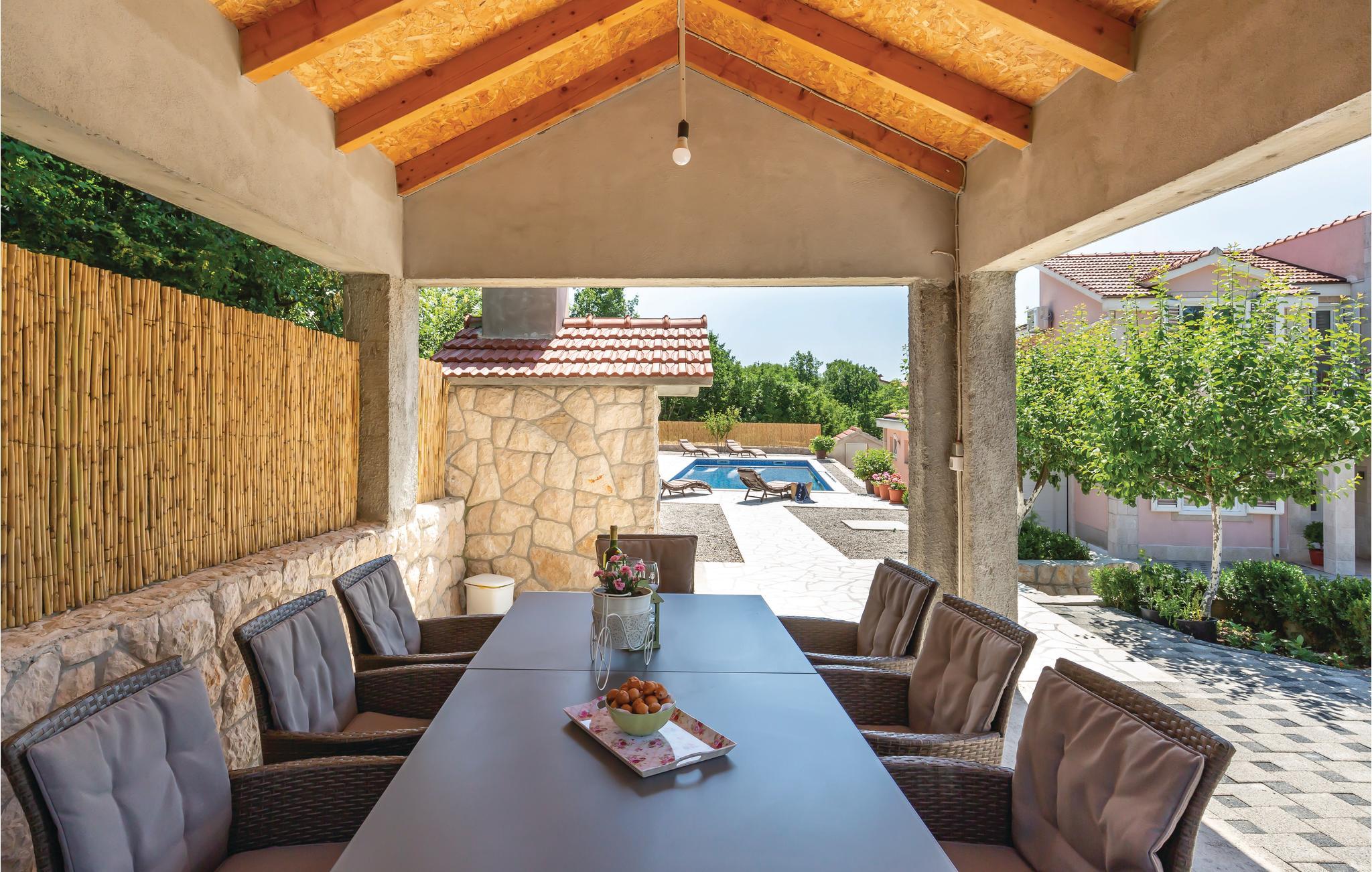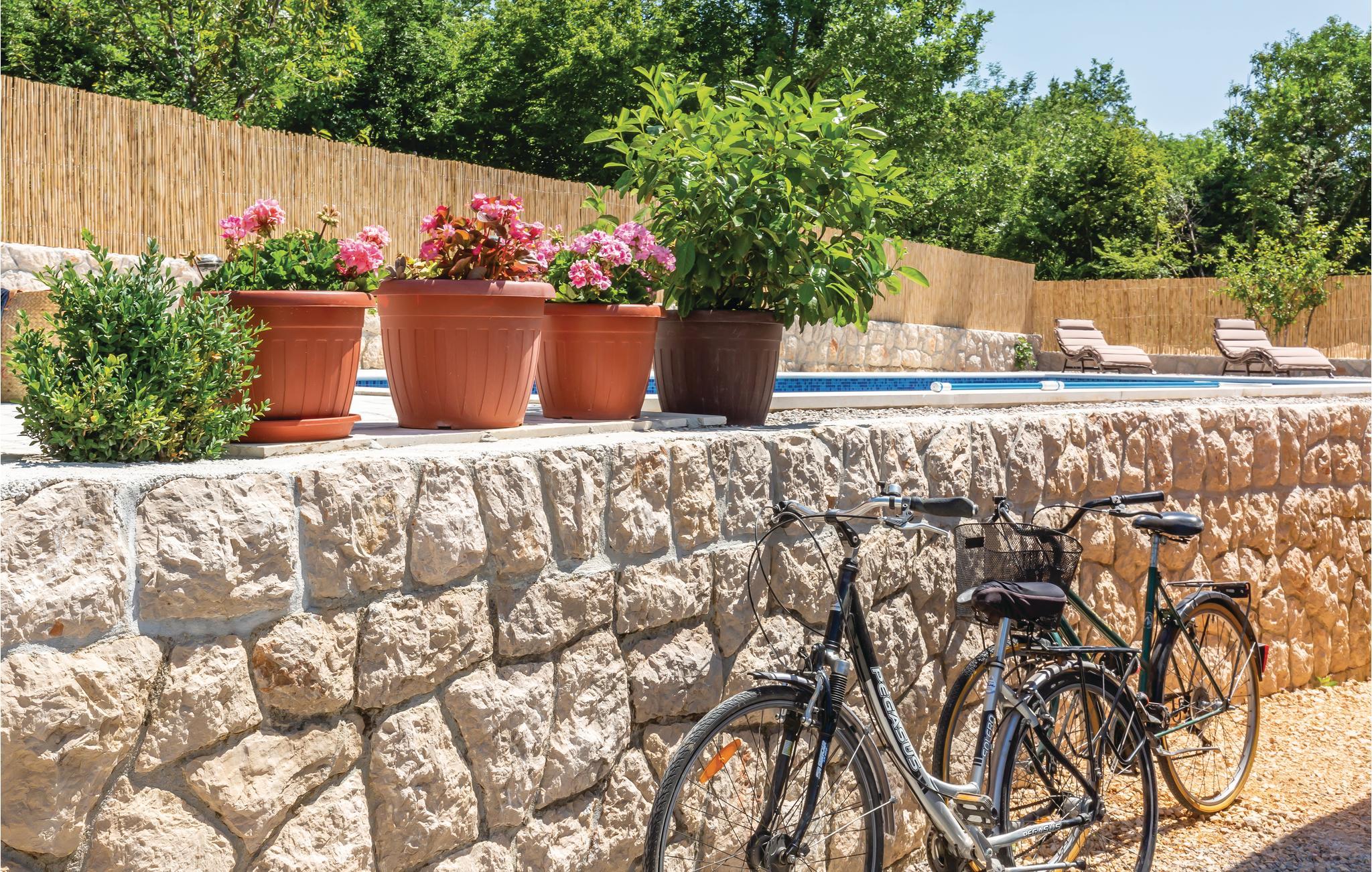 Dette feriehus med pool ligger for foden af byen Imotski i baglandet af middeldalmatien. Huset er enkelt, men hyggeligt indrettet og er fordelt på stueplan og første sal med indvendig trappe. Foran huset er der en terrasse med udsigt til naturparken Biokovos nordlige side. Bag huset er der solområdet og poolen, terrassen med grill og legeområdet for børn. Udforsk området på cyklen. Dejlige kiesstrande ved Makarska rivieraen med mange fritidsmuligheder nå I på ca. 30 minutter med bilen.