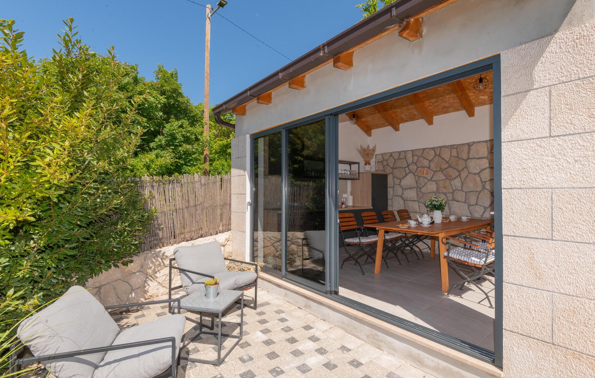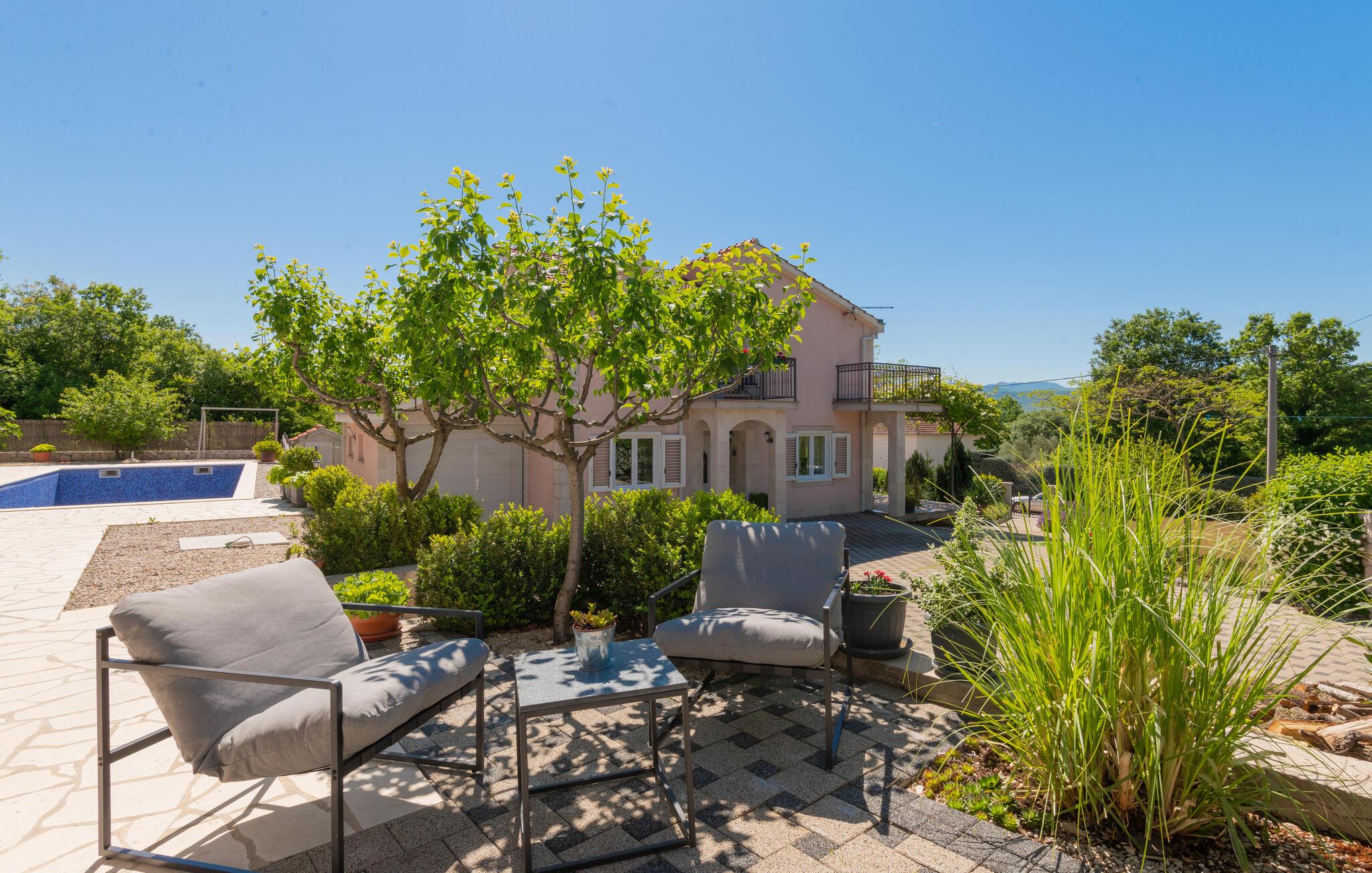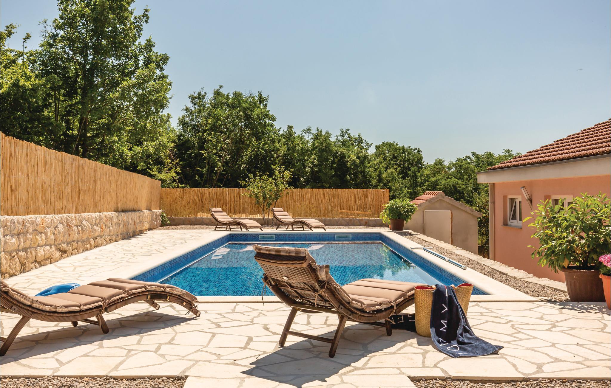Dette feriehus med pool ligger for foden af byen Imotski i baglandet af middeldalmatien. Huset er enkelt, men hyggeligt indrettet og er fordelt på stueplan og første sal med indvendig trappe. Foran huset er der en terrasse med udsigt til naturparken Biokovos nordlige side. Bag huset er der solområdet og poolen, terrassen med grill og legeområdet for børn. Udforsk området på cyklen. Dejlige kiesstrande ved Makarska rivieraen med mange fritidsmuligheder nå I på ca. 30 minutter med bilen.