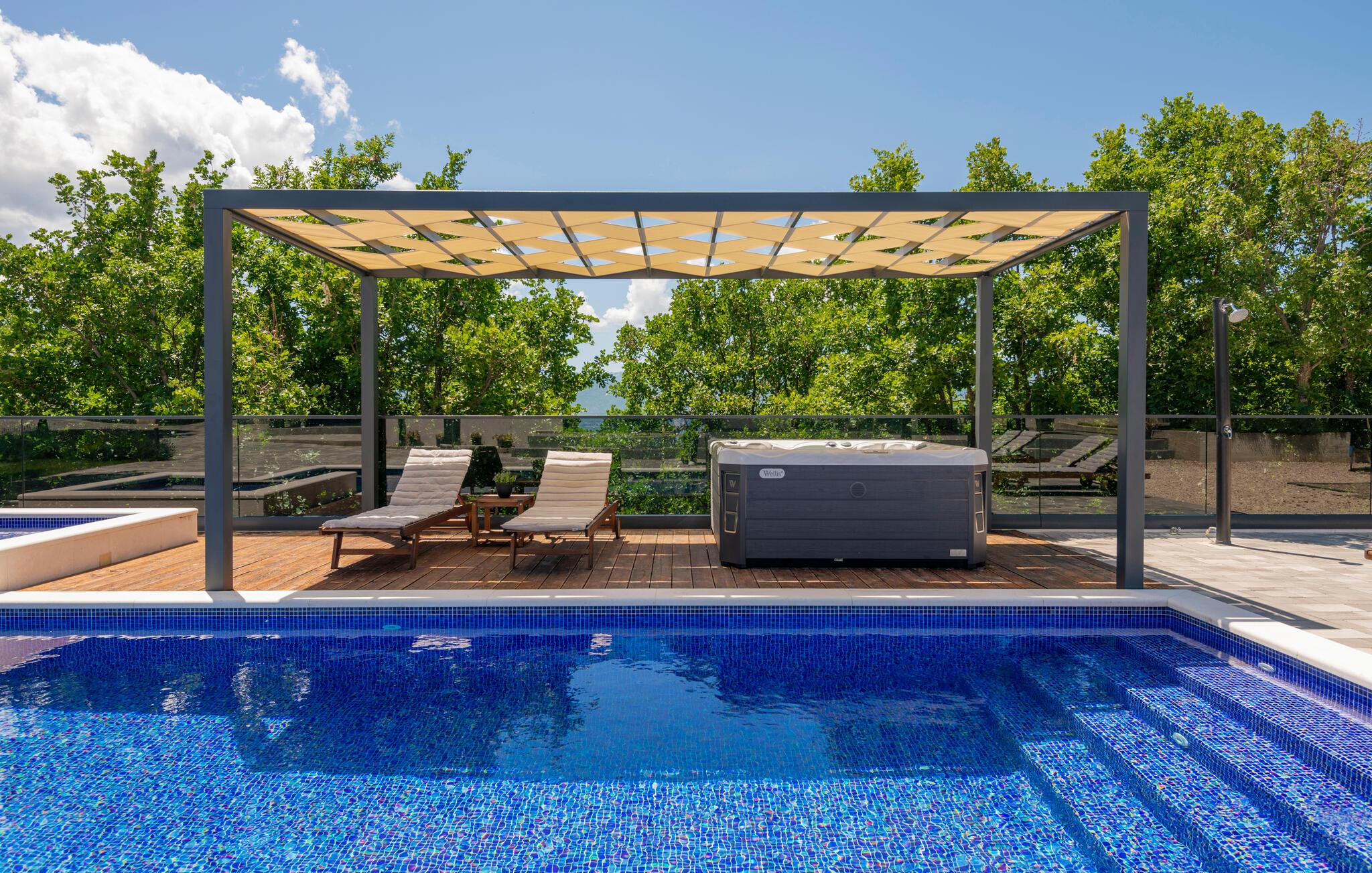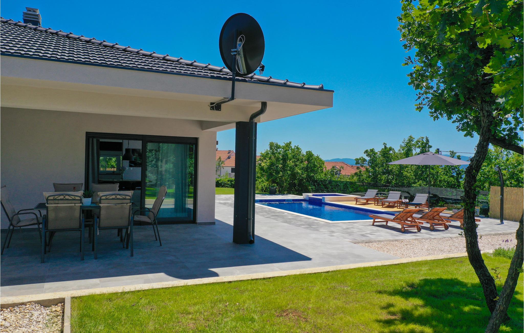 Dette hus har en beliggenhed i stueetagen og tilbyder alt, hvad der skal til for at gøre jeres ferie afslappende og hyggelig for hele familien. Der er en swimmingpool med en børnepool foran huset, som giver den nødvendige forfriskning på varme sommerdage. Der er en overdækket terrasse med en grill lige ved siden af.