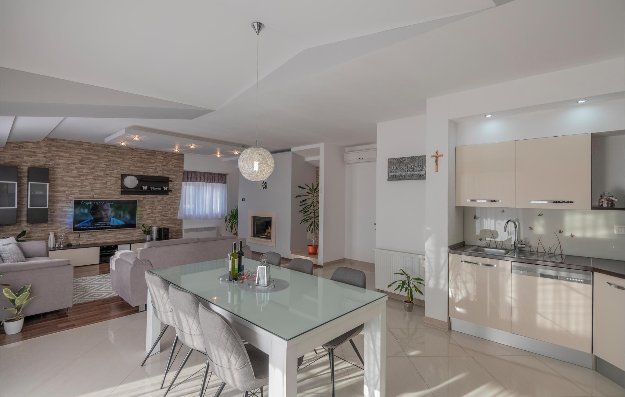 Dette familievenlige feriehus byder jer velkommen til Gornji Vinjani. Huset ligger tæt på den bosnisk-kroatiske grænse og giver jer gode rammer til en dejlig ferie med familien, hvor I ikke skal bekymre jer om noget. Huset er flot og moderne indrettet med al den komfort, I kunne ønske jer. Tag et spil bordtennis eller få pulsen op på stepperen. I kan også svømme nogle baner i poolen i haven, mens jeres børn plasker rundt i børnebassinet.