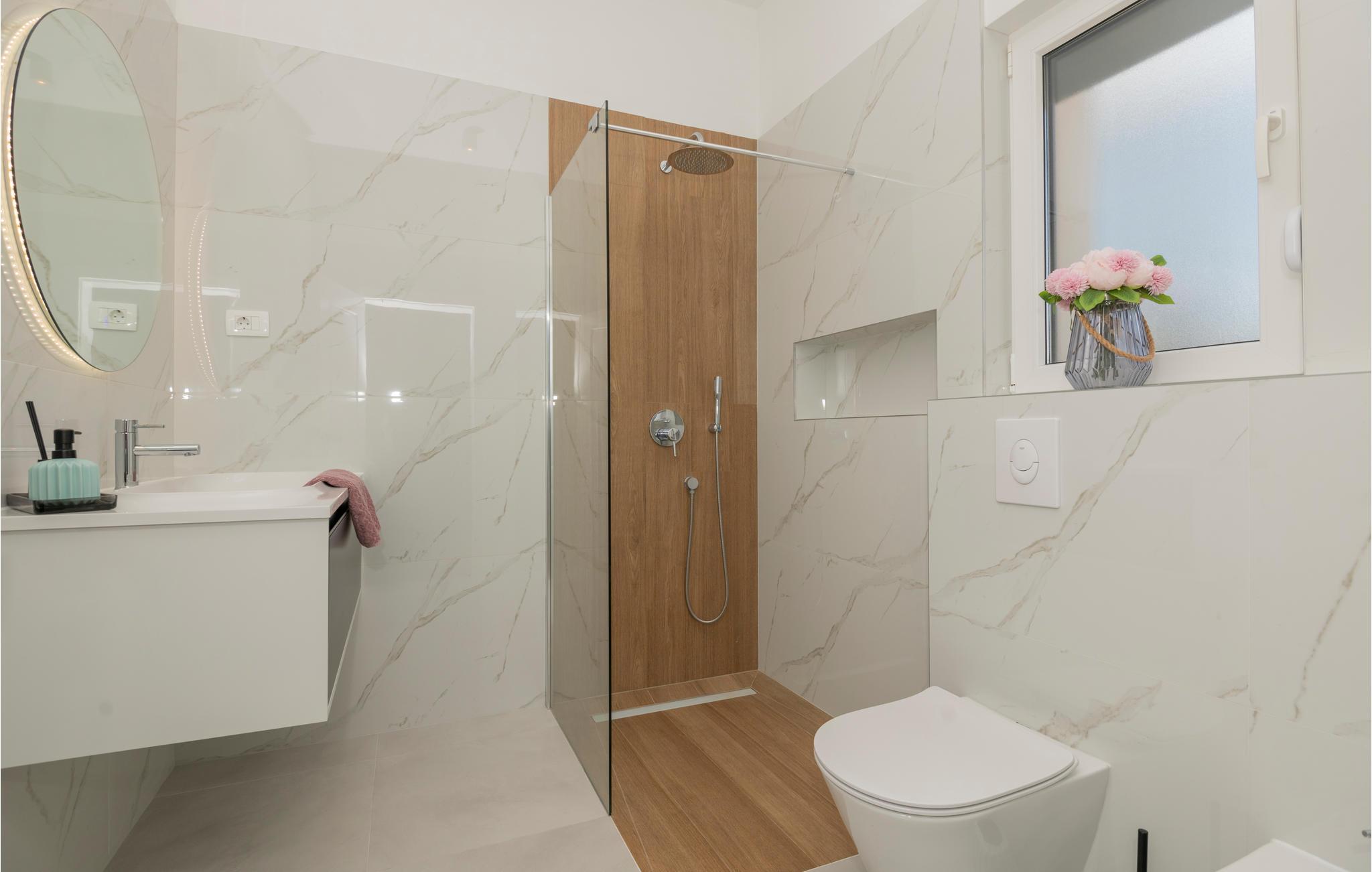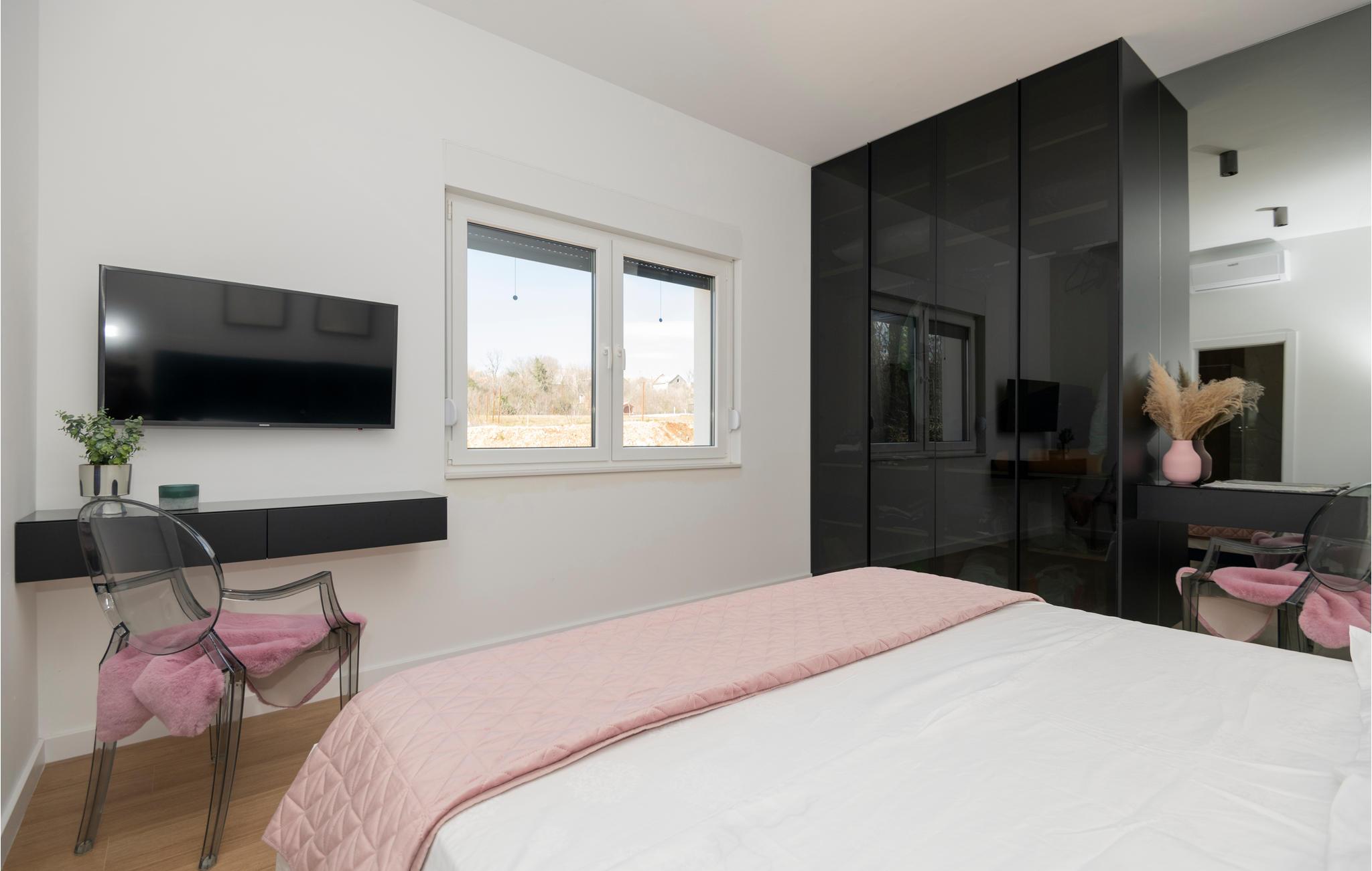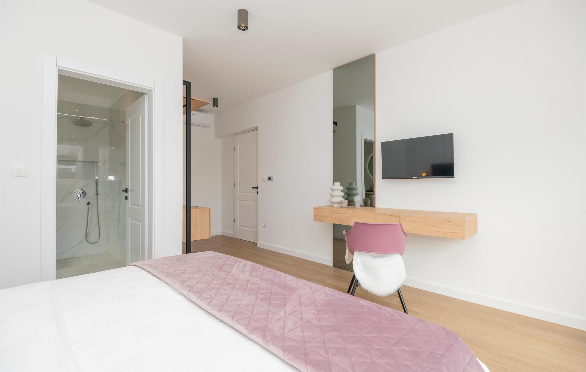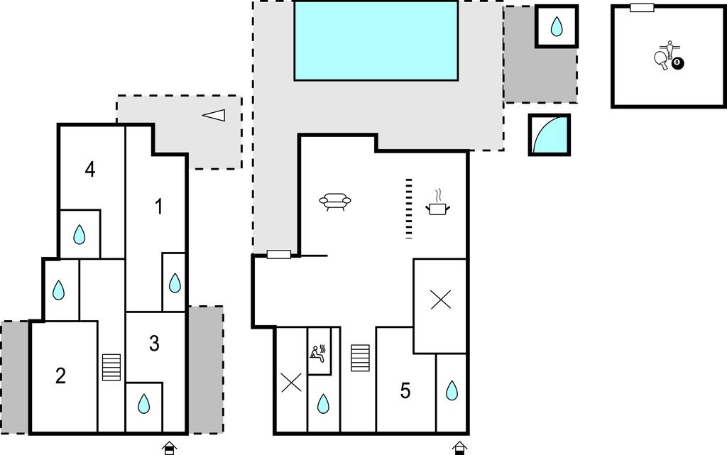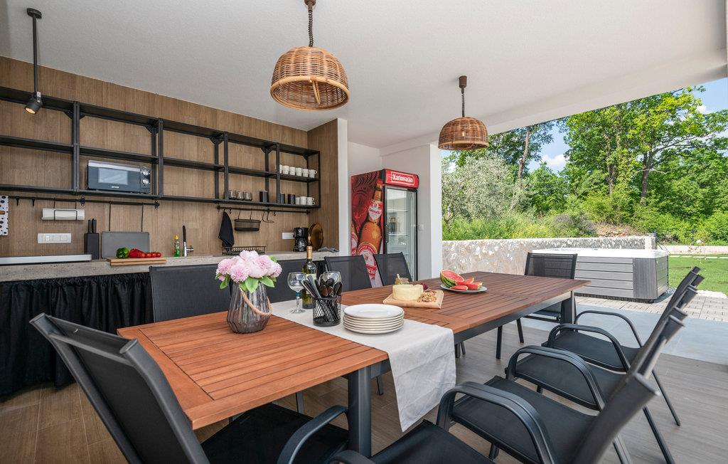 Huset er fuldt klimatiseret og består af en stueetage med stue og køkken, soveværelse, badeværelse og ekstra badeværelse med finsk sauna. En intern trappe fører til 1. sal med fire soveværelser, hver med eget badeværelse og flere balkoner med smuk udsigt til Imotski. Der er også et underholdningsrum i kælderen med billard, bordfodbold og bordtennis og en PlayStation-konsol. Friske dukkerter på varme sommerdage kan fås i den attraktive pool foran huset, som også har et lavvandet område for børn. Ved siden af dette finder I et spabad og et sommerkøkken med grill til at tilberede jeres yndlingsspecialiteter. Der er også faciliteter for børn, der kan lege på legepladsen ved huset.