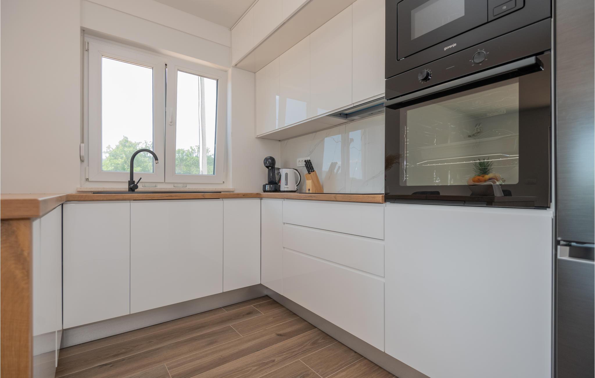 Huset er meget rummeligt. Gør salaterne klar i det åbne køkken, mens I griner af dagens sjoveste oplevelser og lægger planer for dagen, der kommer.