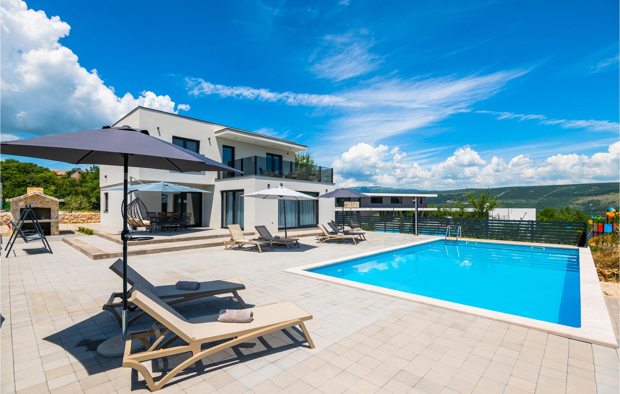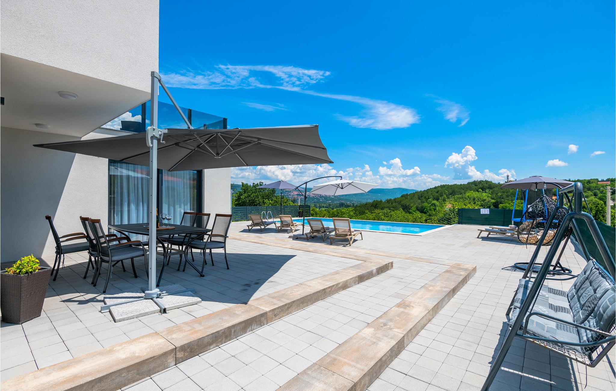 Glæd jer til en skøn ferie i dette lækre hus, hvor der er masser af plads til alle. Efter en dukkert i poolen om morgenen kan I sætte jer med morgenmaden og nyde den fantastiske udsigt fra jeres terrasse. Senere kan I tilberede aftensmaden på grillen i udekøkkenet.