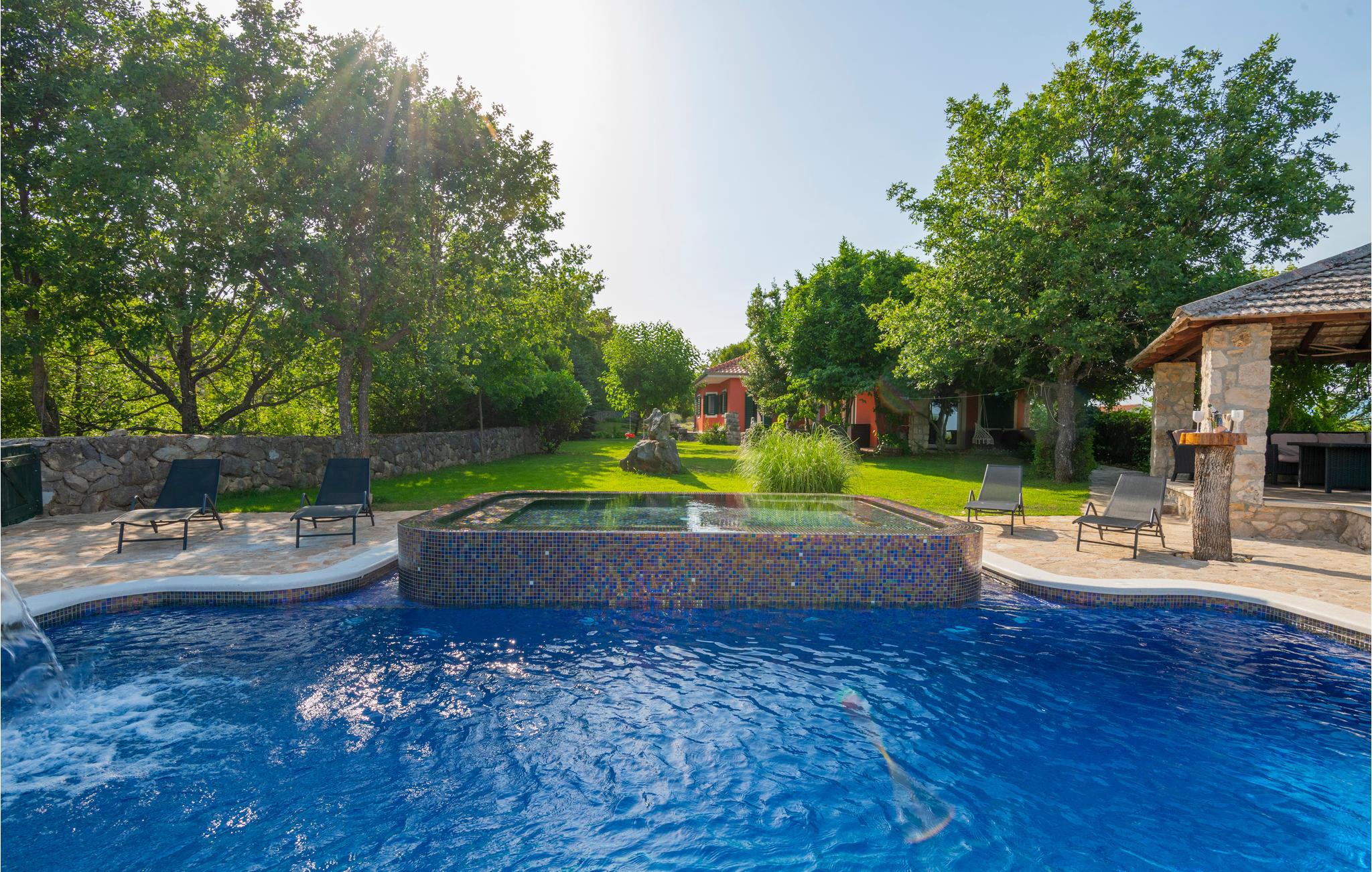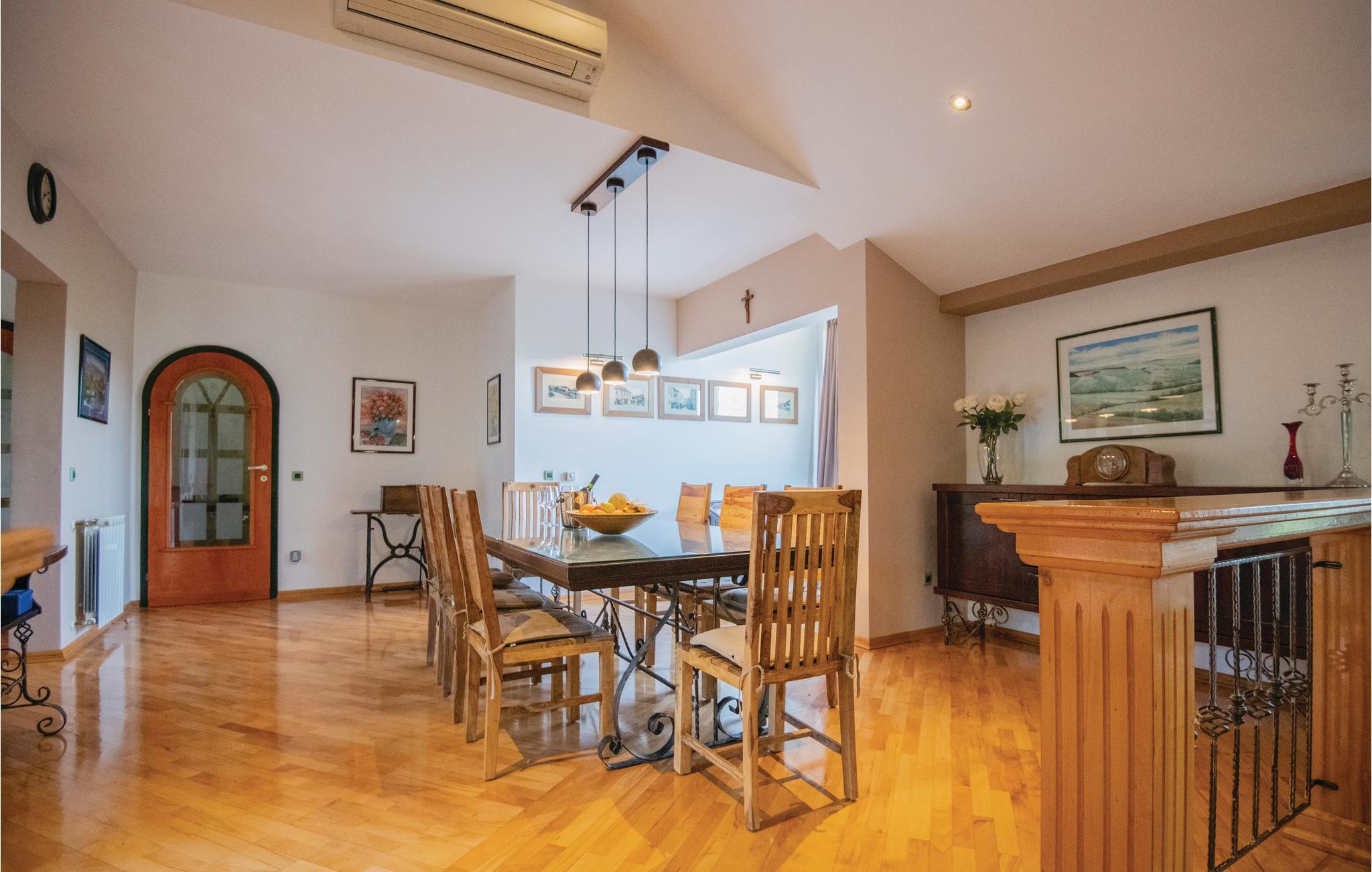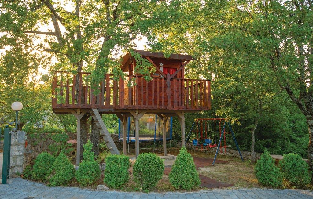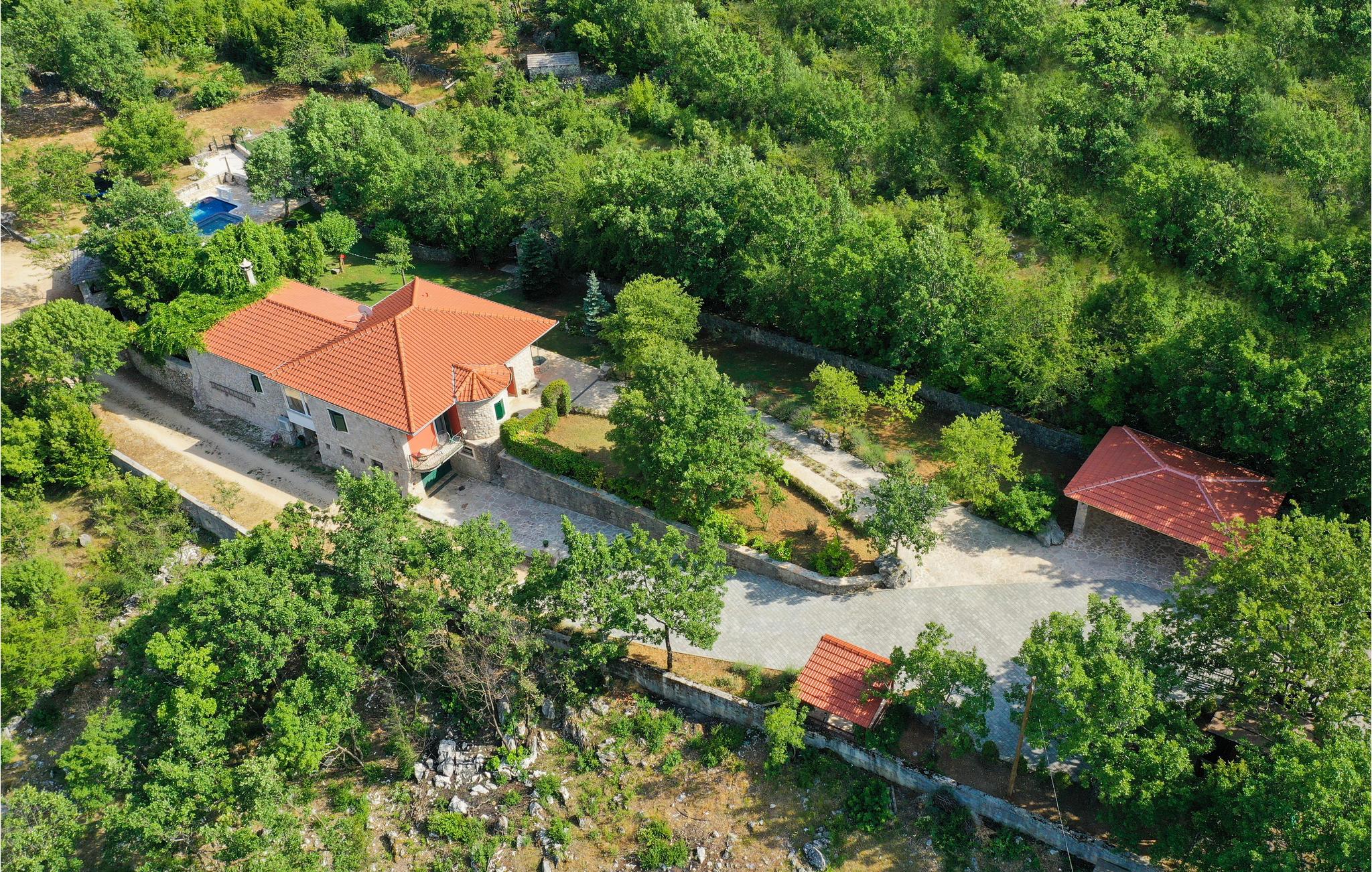 I Mellemdalmatiens rolige og idylliske bagland, ligger dette komfortable og smukt indrettede feriehus. I stueplan er der tre soveværelser, to badeværelser, toilet og en stue i åben forbindelse med køkkenet. I husets souterrain med adgang via en indendørs trappe, er der en stue der er indrettet i lokal dalmatisk stil og et fitnessrum. I haven ligger en overdækket terrasse ved siden af swimmingpoolen. De små kan få timer til at gå på husets egen legeplads. Fra terrassen på husets østside er der en skøn udsigt ud over byen Imotski, fem km væk. I det centrum afholdes der mange sjove arrangementer for regionens sommergæster. Besøg også de smukke søer: den blå sø og den røde sø. Der er cykler og en multifunktionslegeplads til fodbold, badminton og en basketballkurv til rådighed.