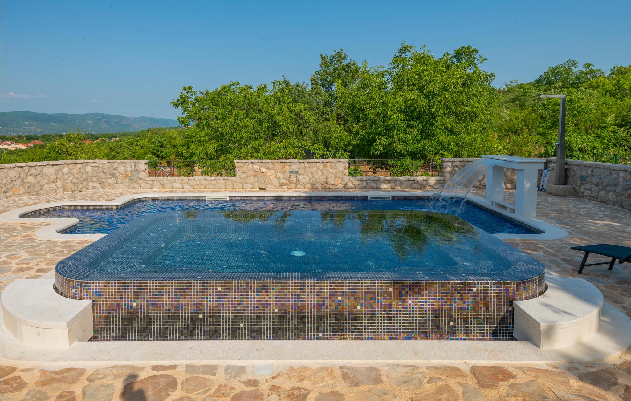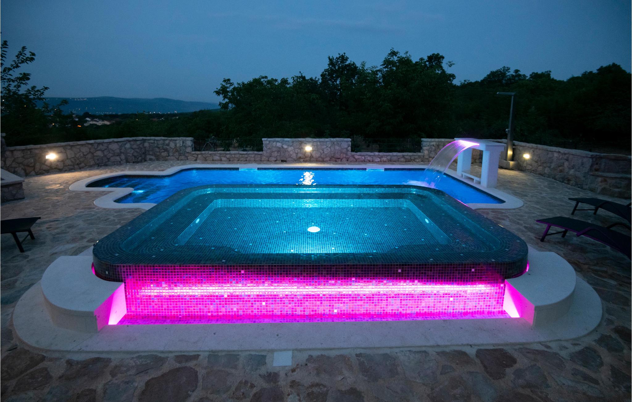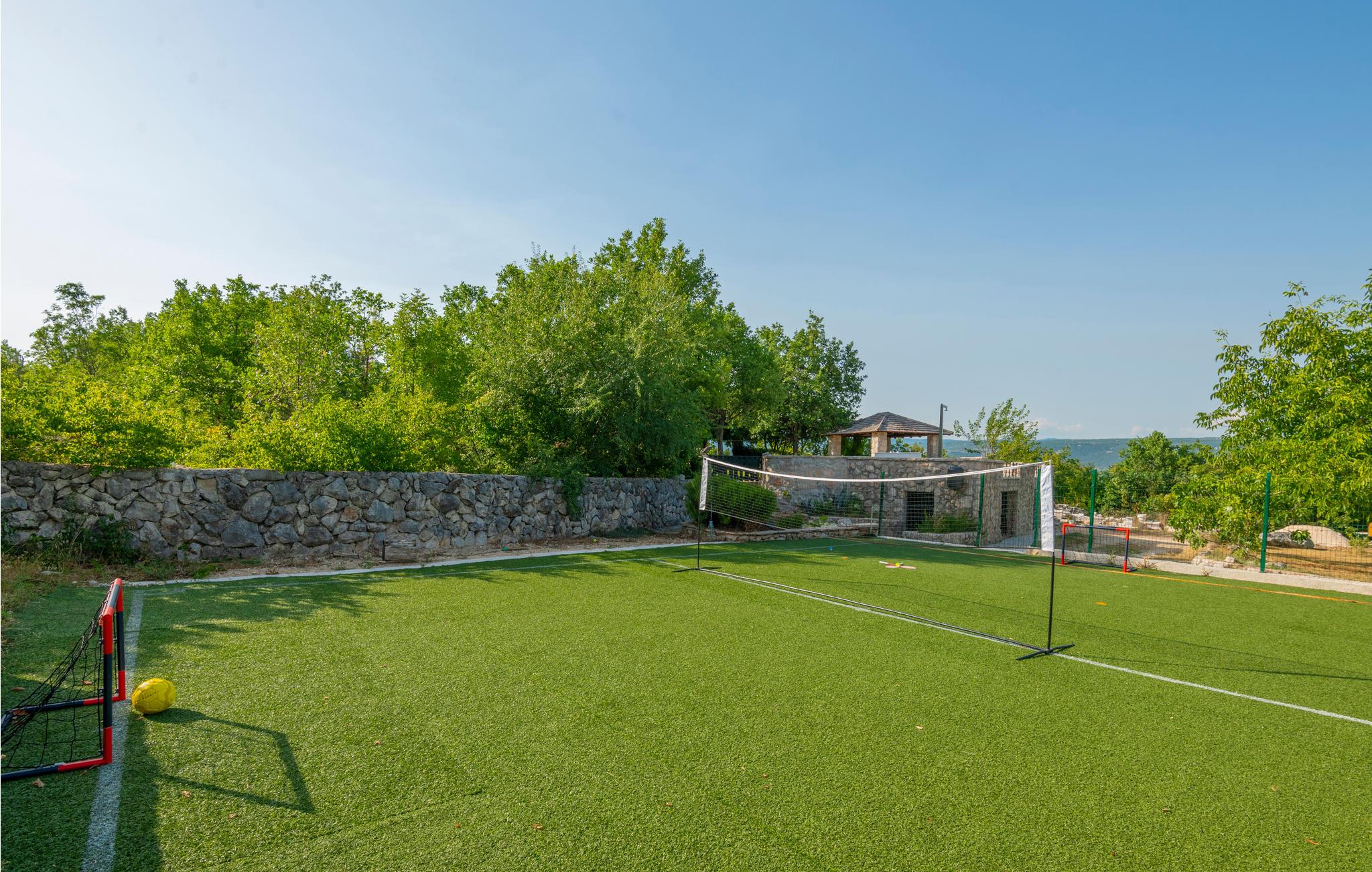 I Mellemdalmatiens rolige og idylliske bagland, ligger dette komfortable og smukt indrettede feriehus. I stueplan er der tre soveværelser, to badeværelser, toilet og en stue i åben forbindelse med køkkenet. I husets souterrain med adgang via en indendørs trappe, er der en stue der er indrettet i lokal dalmatisk stil og et fitnessrum. I haven ligger en overdækket terrasse ved siden af swimmingpoolen. De små kan få timer til at gå på husets egen legeplads. Fra terrassen på husets østside er der en skøn udsigt ud over byen Imotski, fem km væk. I det centrum afholdes der mange sjove arrangementer for regionens sommergæster. Besøg også de smukke søer: den blå sø og den røde sø. Der er cykler og en multifunktionslegeplads til fodbold, badminton og en basketballkurv til rådighed.
