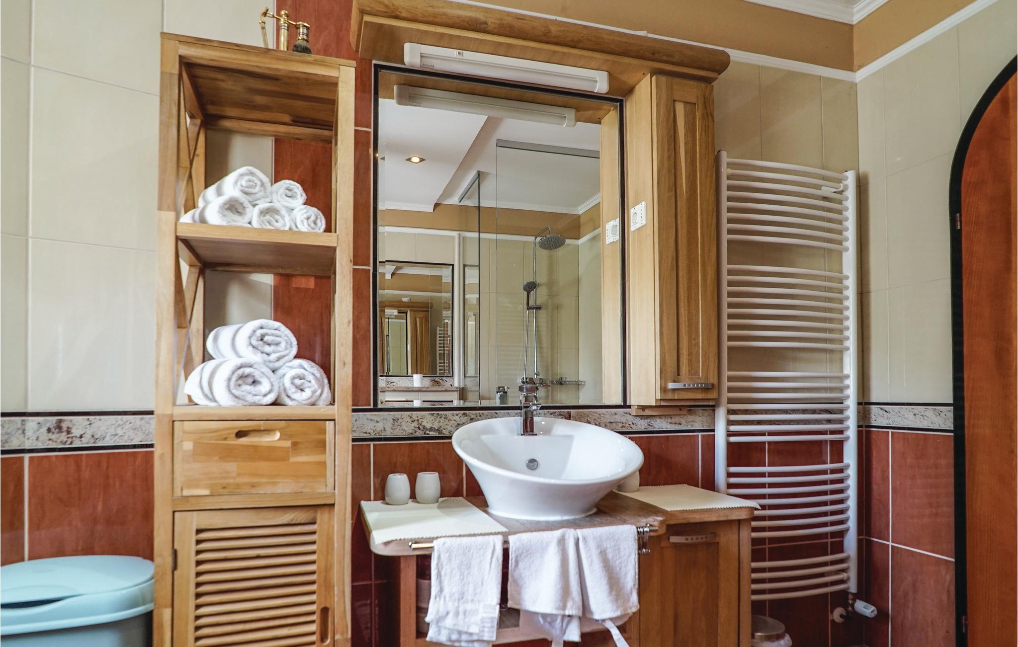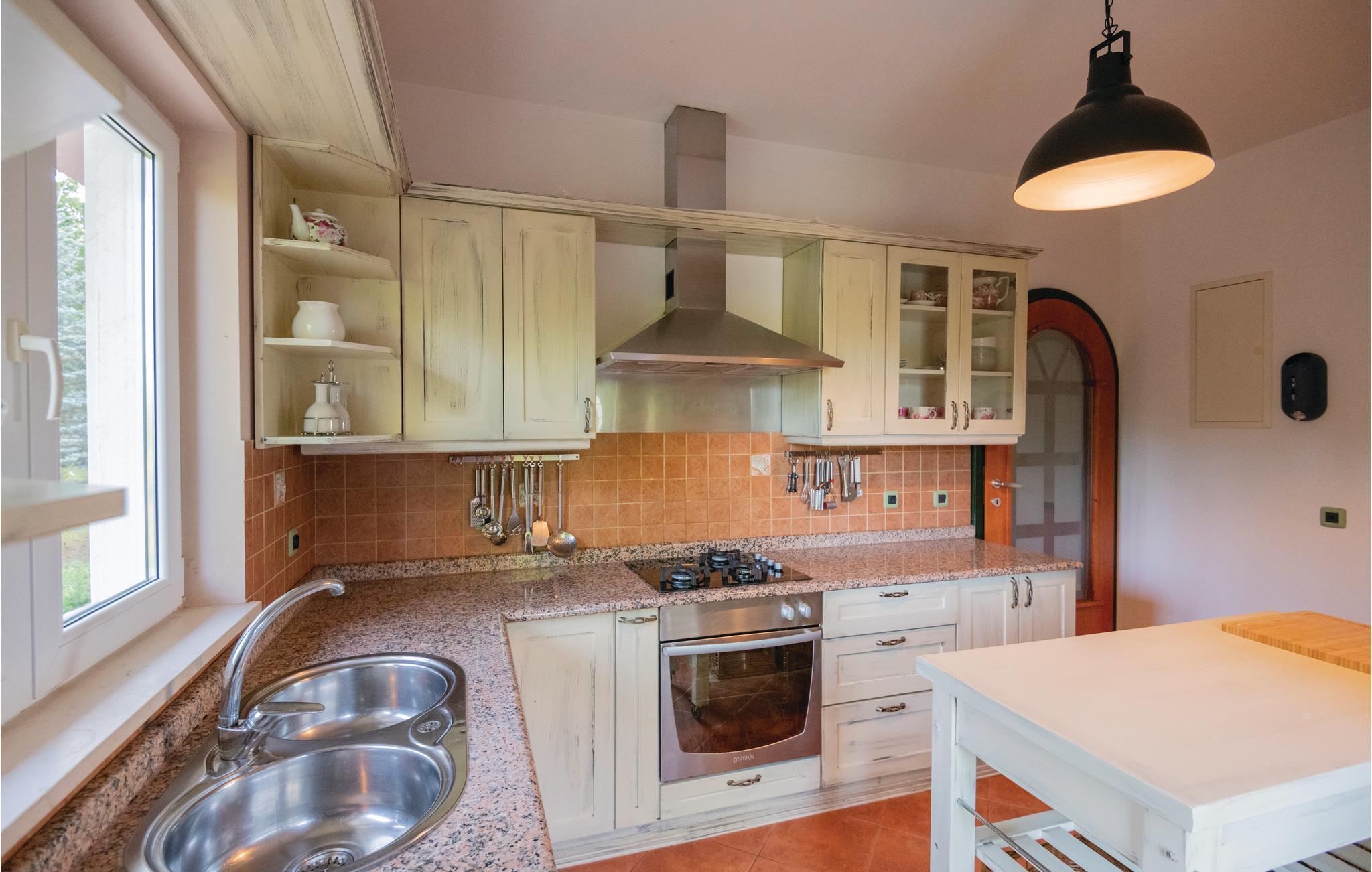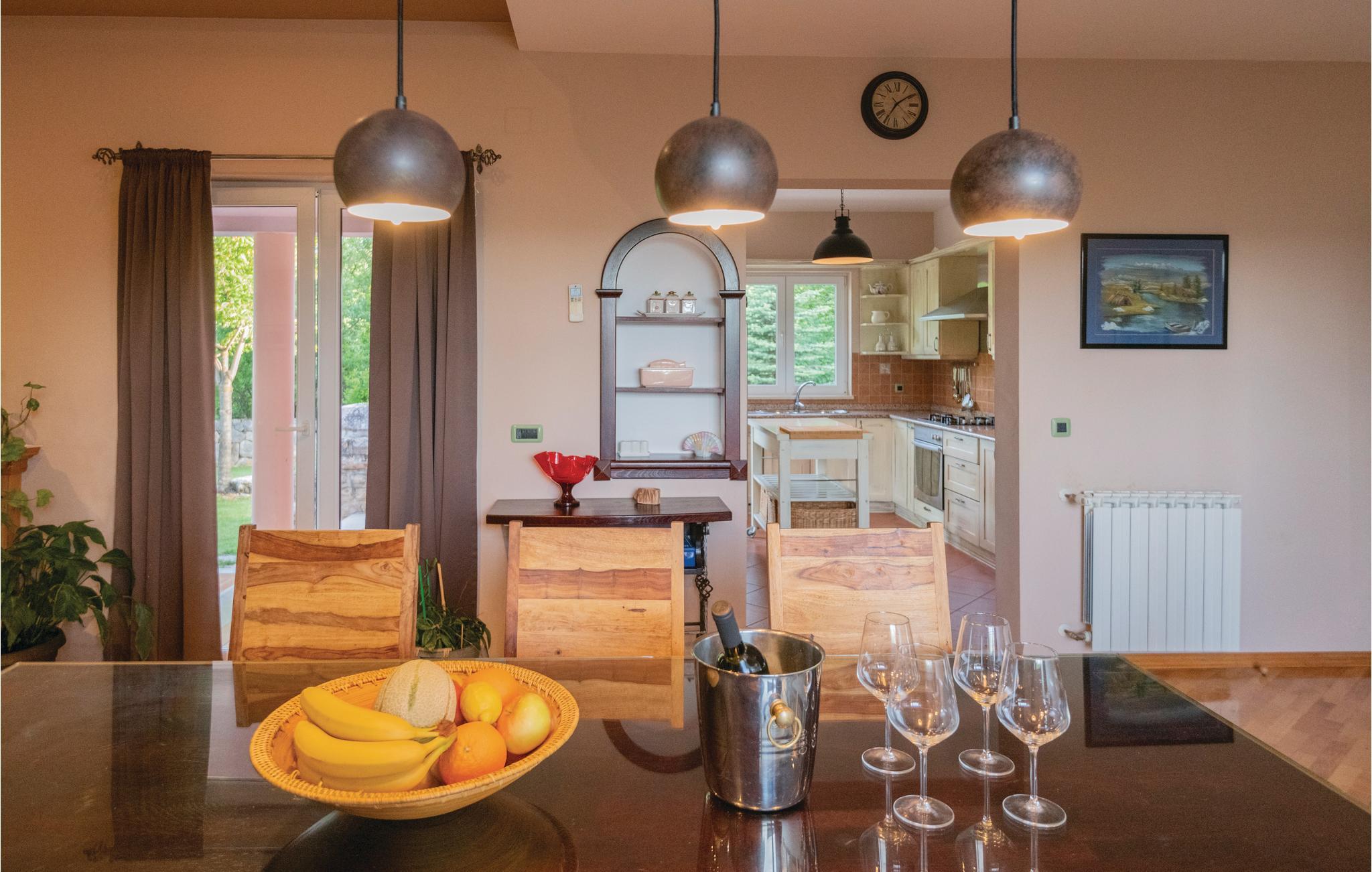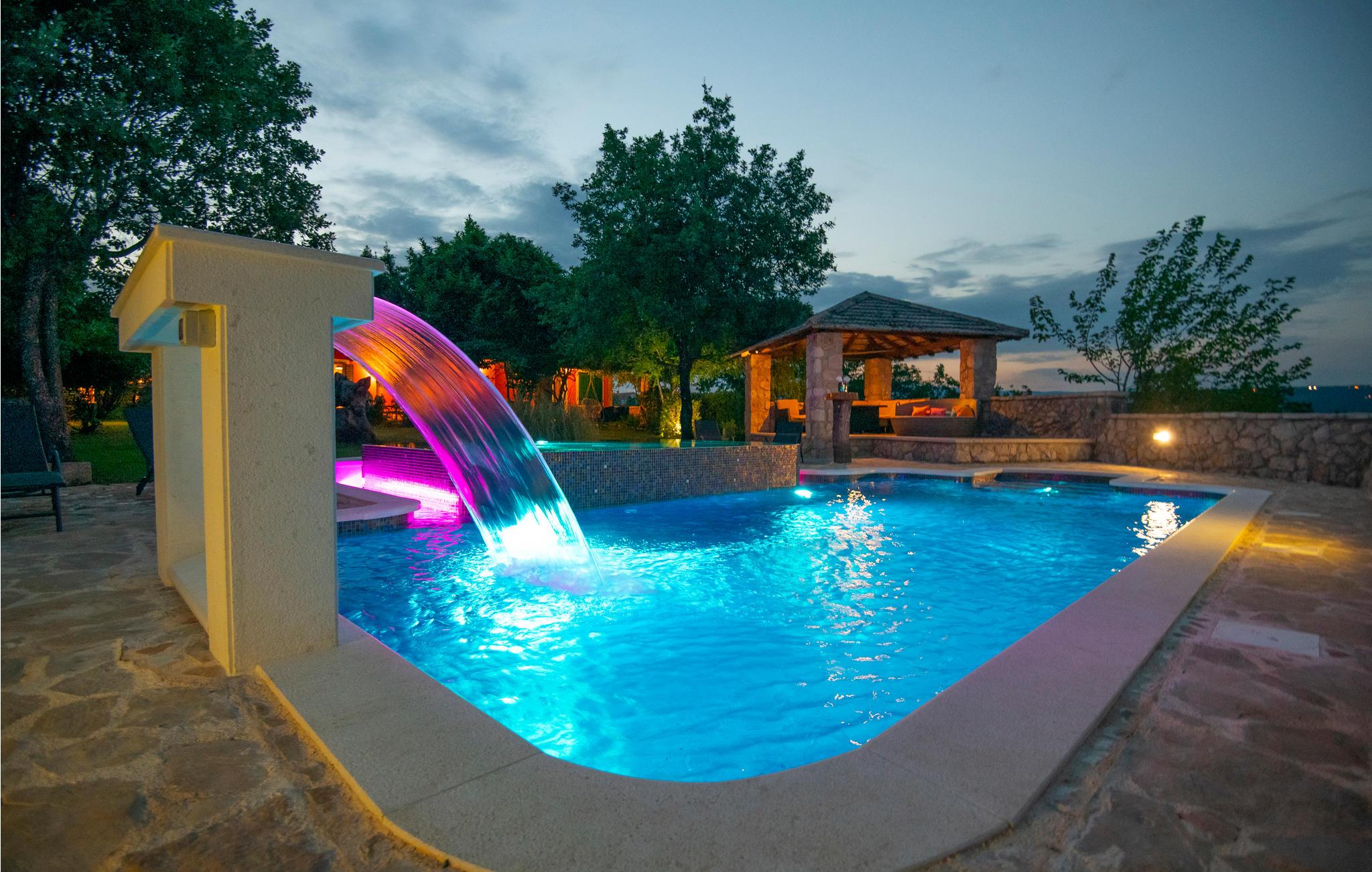 I Mellemdalmatiens rolige og idylliske bagland, ligger dette komfortable og smukt indrettede feriehus. I stueplan er der tre soveværelser, to badeværelser, toilet og en stue i åben forbindelse med køkkenet. I husets souterrain med adgang via en indendørs trappe, er der en stue der er indrettet i lokal dalmatisk stil og et fitnessrum. I haven ligger en overdækket terrasse ved siden af swimmingpoolen. De små kan få timer til at gå på husets egen legeplads. Fra terrassen på husets østside er der en skøn udsigt ud over byen Imotski, fem km væk. I det centrum afholdes der mange sjove arrangementer for regionens sommergæster. Besøg også de smukke søer: den blå sø og den røde sø. Der er cykler og en multifunktionslegeplads til fodbold, badminton og en basketballkurv til rådighed.