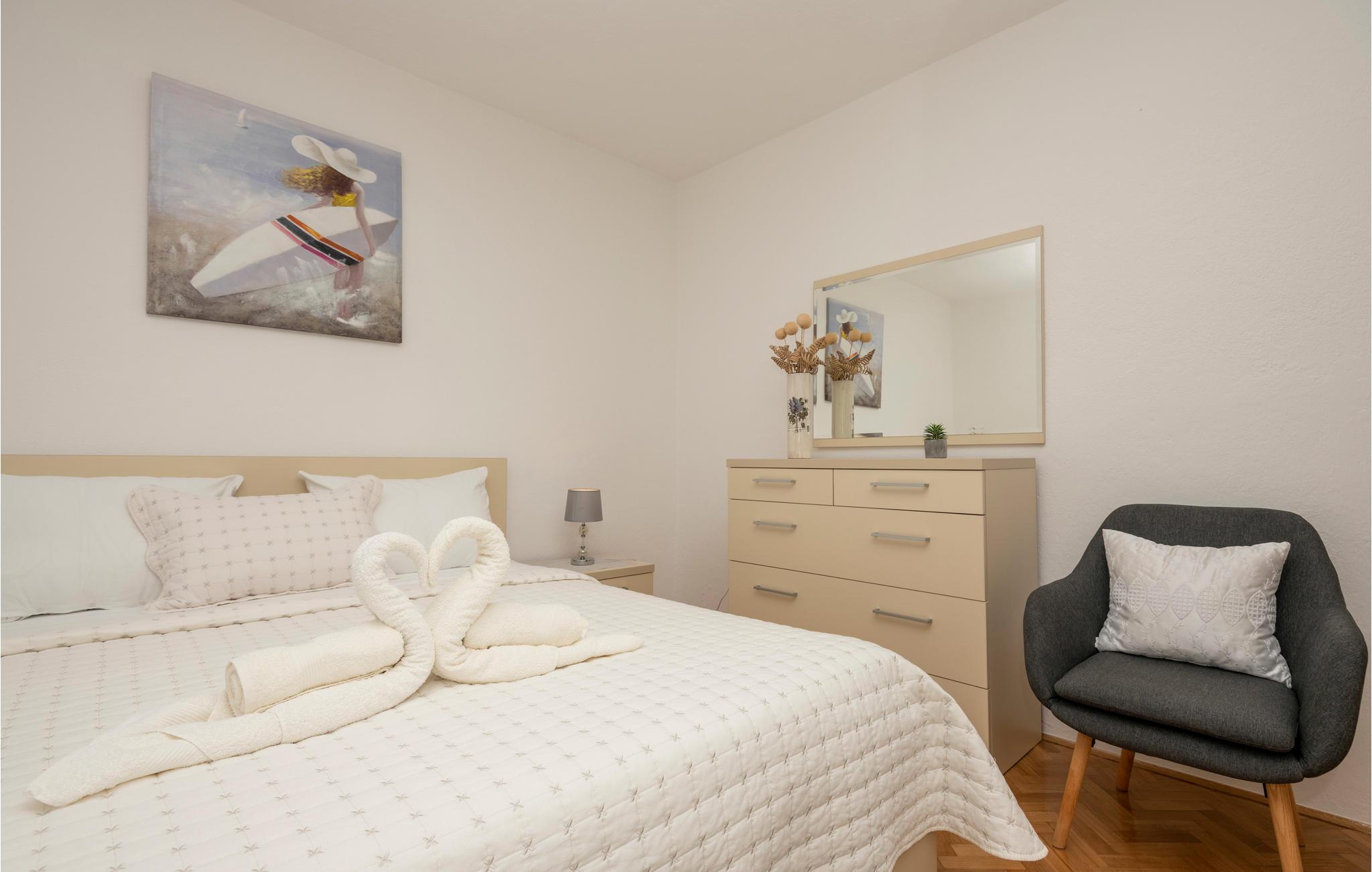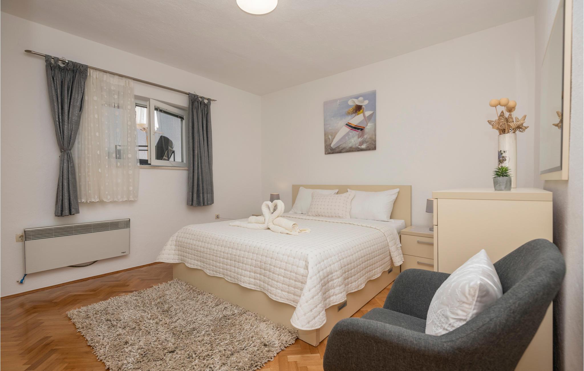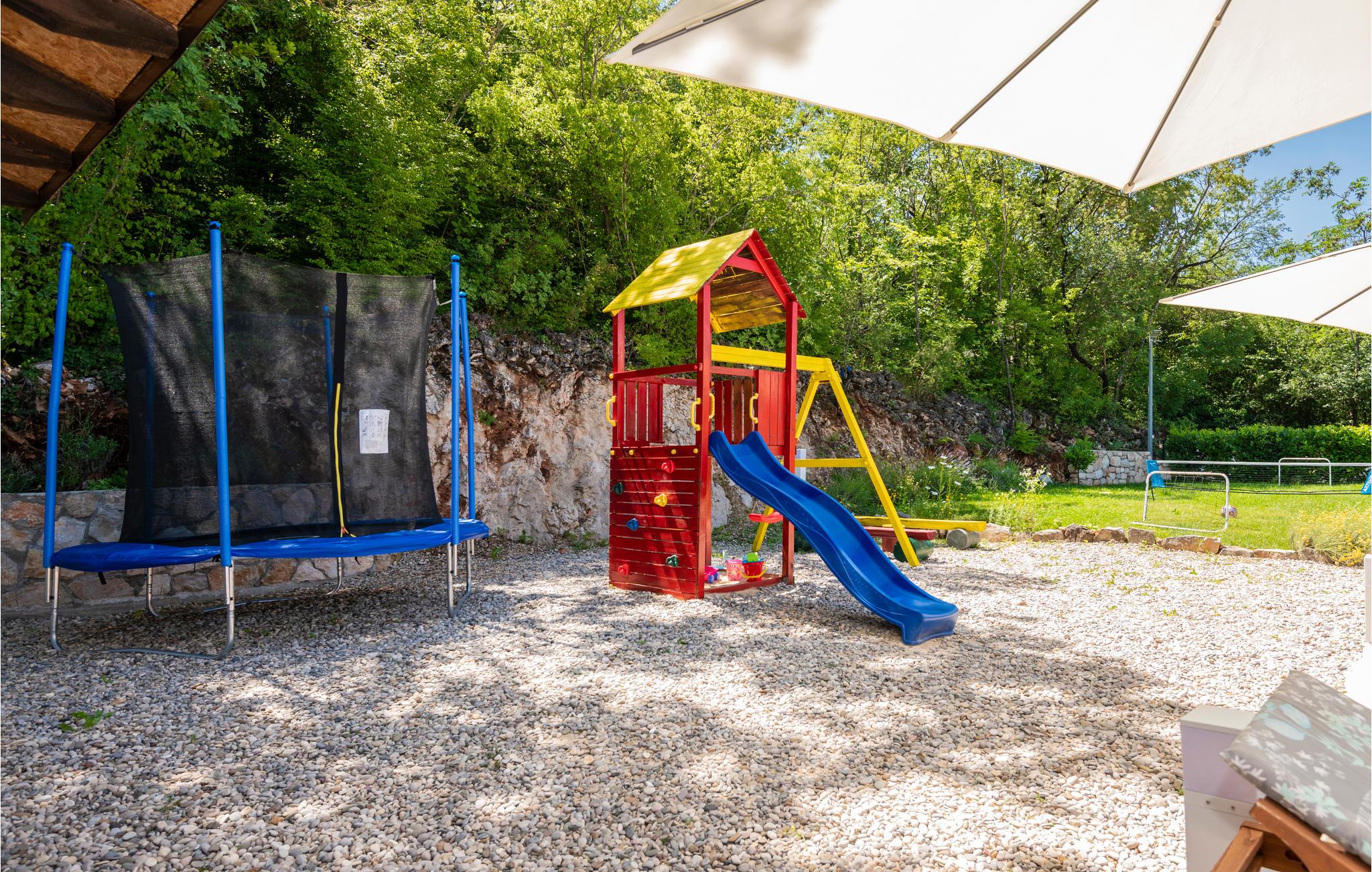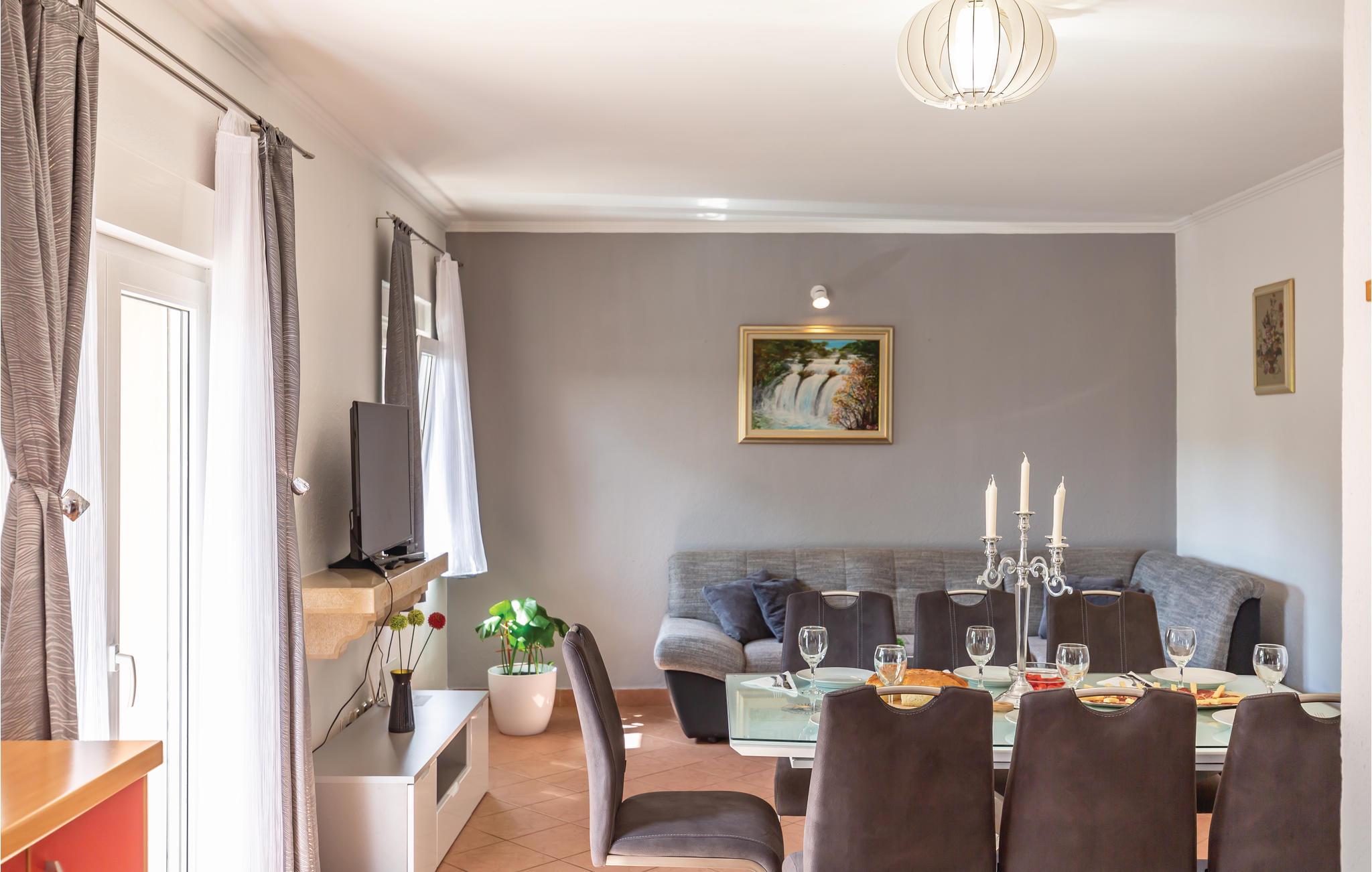 Dette smagfuldt indrettede feriehus med privat pool ligger i Grubine, i Dalmatiens skønne bagland. Der rummer alt, hvad I behøver til en komfortabel og uforglemmeligt dejlig ferie. Nyd at svømme og pjaske i den skønne ugenerte pool, lav lækker mad på grillen og hav sjov i aktivitetsrummet, mens jeres yngste leger på legepladsen. I stueplan er der køkken der åbent mod stuen, wc og aktivitetsrum. Indre trapper fører op til overetagen, med fire soveværelser og to badeværelser. Det tager kun 20 minutter i bil at køre til de skønne kiesstrande ved Makarskas riviera. Der er kun fem km til byen Imotski med forskellige former for underholdning.