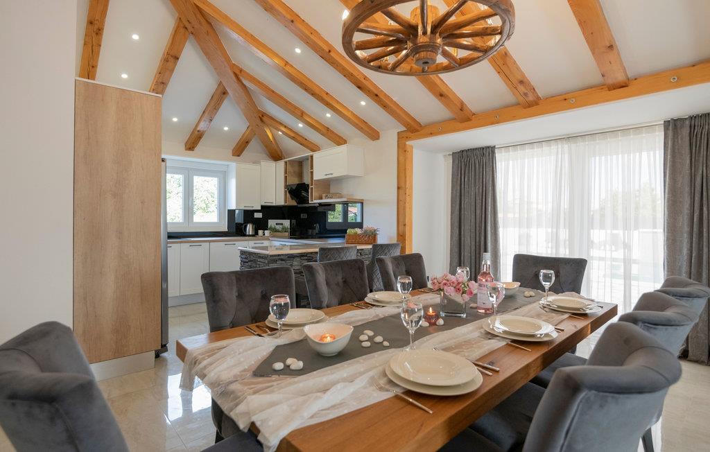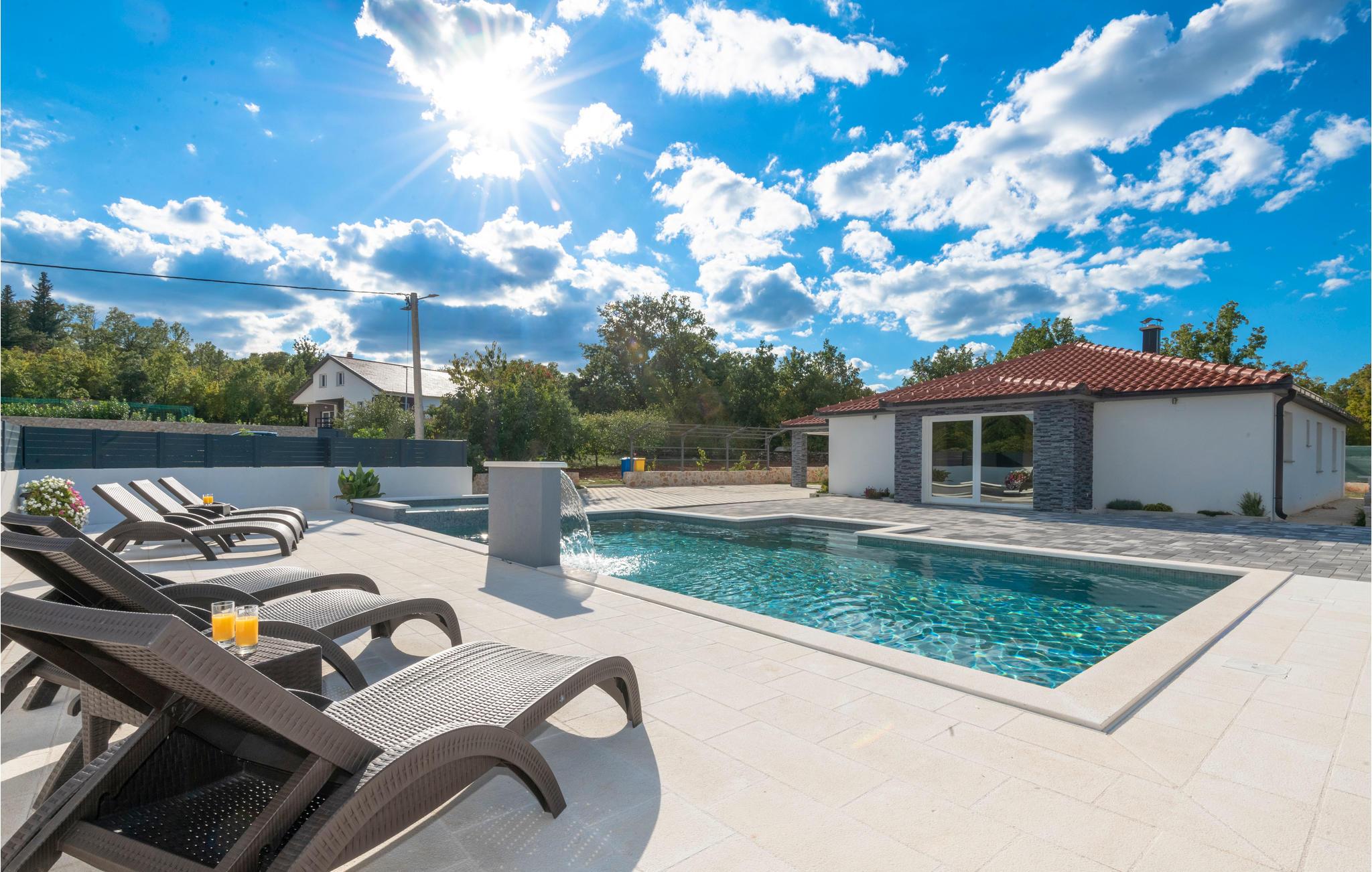 I Centraldalmatiens smukke landregion ligger dette lækre feriehus ud til af grønne områder på en stor grund, som er indhegnet næsten hele vejen rundt. Her får I en skøn oase, hvor I kan hvile mellem alle de oplevelser, der venter jer. Ud over ??det skønne feriehus kan I se frem til et underholdningsområde med billard, bordtennis og bordfodbold. I gården er der desuden en stor, opvarmet pool med separat afdeling til jeres børn, og lige ved siden af ??er der en terrasse, hvor I kan sætte jer i skyggen og tænde op i grillen på de lune sommeraftener. Der er også en legeplads ved siden af huset, hvor jeres børn kan have det sjovt og måske få nye venner.