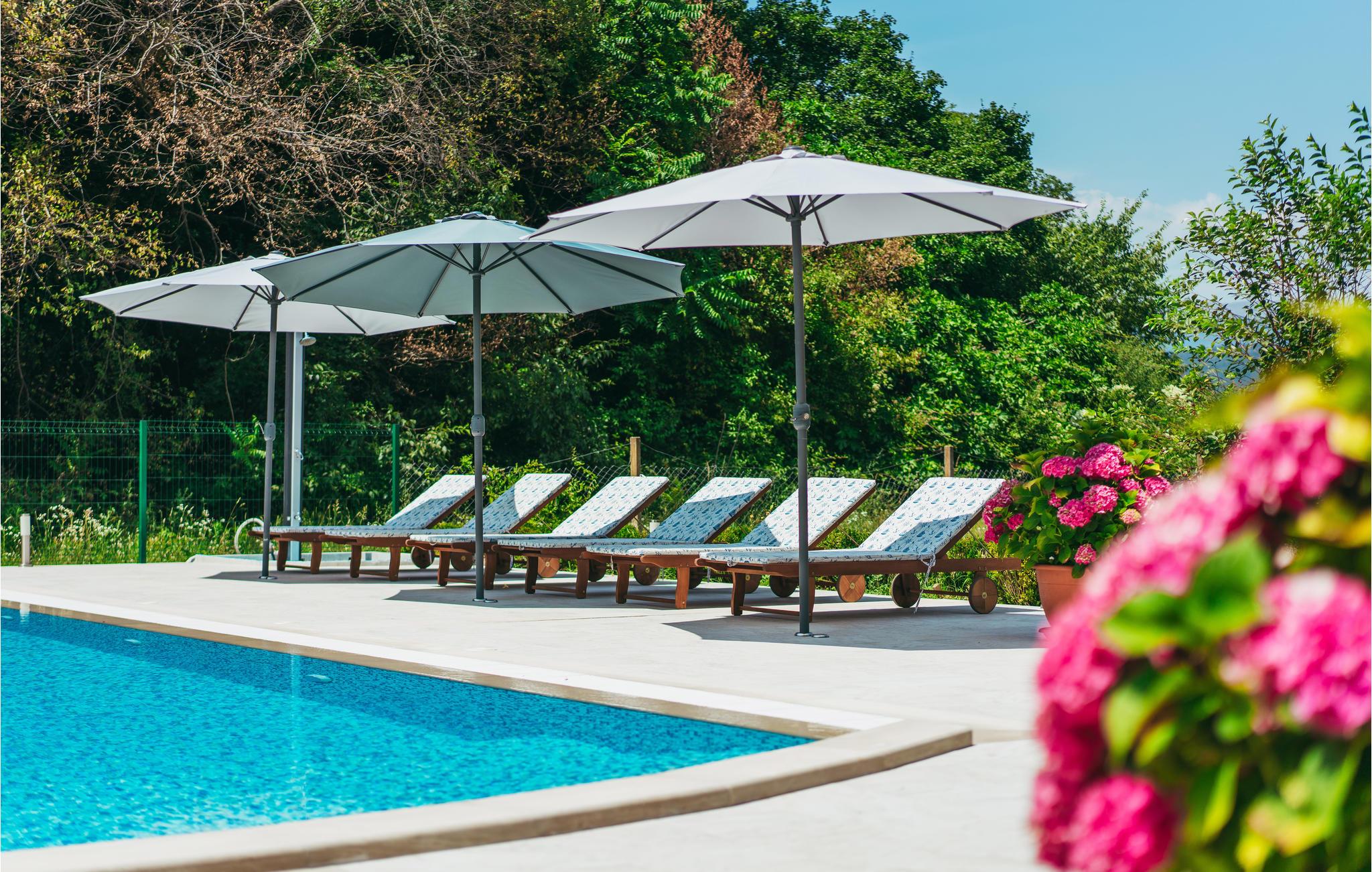 Slap af i solen på de forskellige terrasser, mens I ser udsigten over det omkringliggende landskab. Svøm et par omgange i poolen, mens børnene leger glade og afslut dagen med et godt måltid fra grillen på en lun sommeraften.