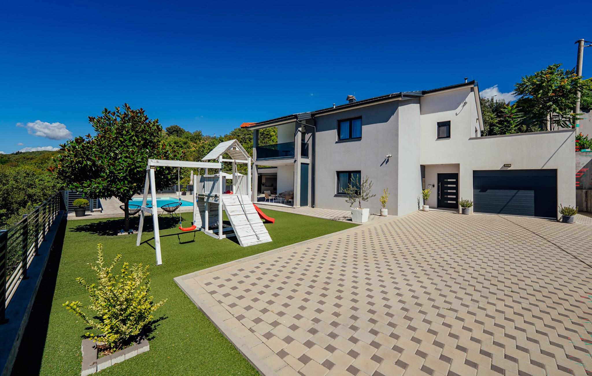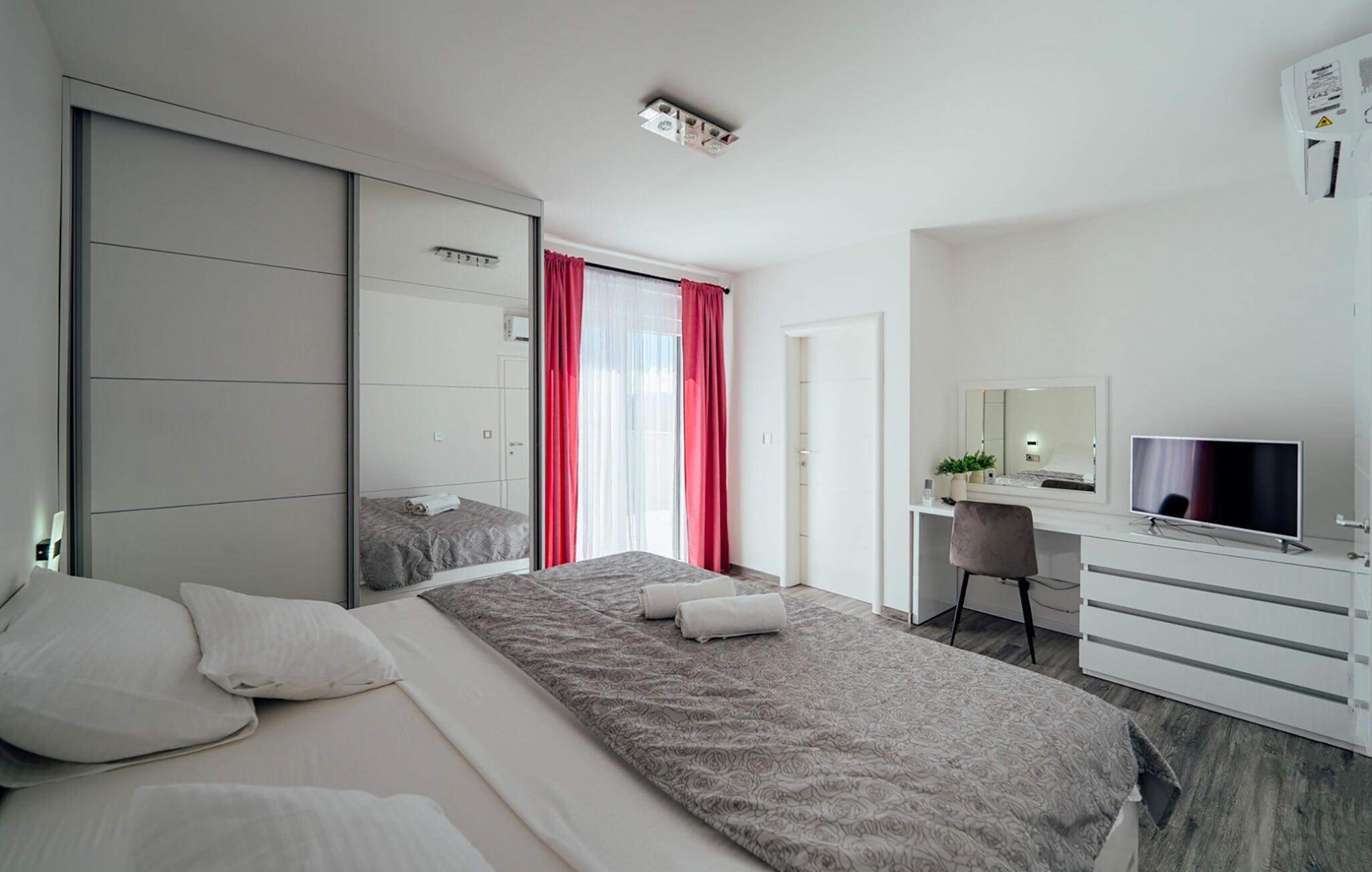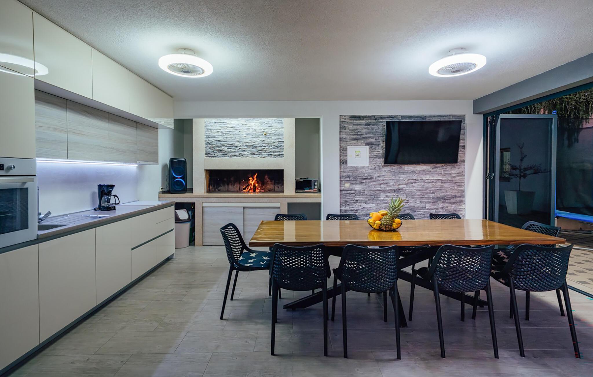 Dette skønne feriehus ligger i Mellemdalmatiens bagland, ikke langt fra centrum i Imotski og kun 700 meter fra de smukke søer: den røde og den blå. I haven ligger den store pool, til svømmeture og vandlege og lige ved siden af ligger legepladsen, sommerkøkken med grill og aktivitetsrum med forskellige underholdningsmuligheder. På første sal ligger soveværelserne. Feriehuset har klimaanlæg overalt og har flere terrasser, hvorfra der er en vidunderlig udsigt over de omkringliggende marker og naturparken Biokovo. Her er der utroligt meget at se og opleve, herlige søer, en flod og kulinariske specialiteter i de utallige taverner og restauranter i nærheden. Tag på afslappede badeudflugter ved de skønne kiesstrande ved Makarskas riviera og også besøge Split, Omiš, pilgrimsbyen Medugorje og Mostar.