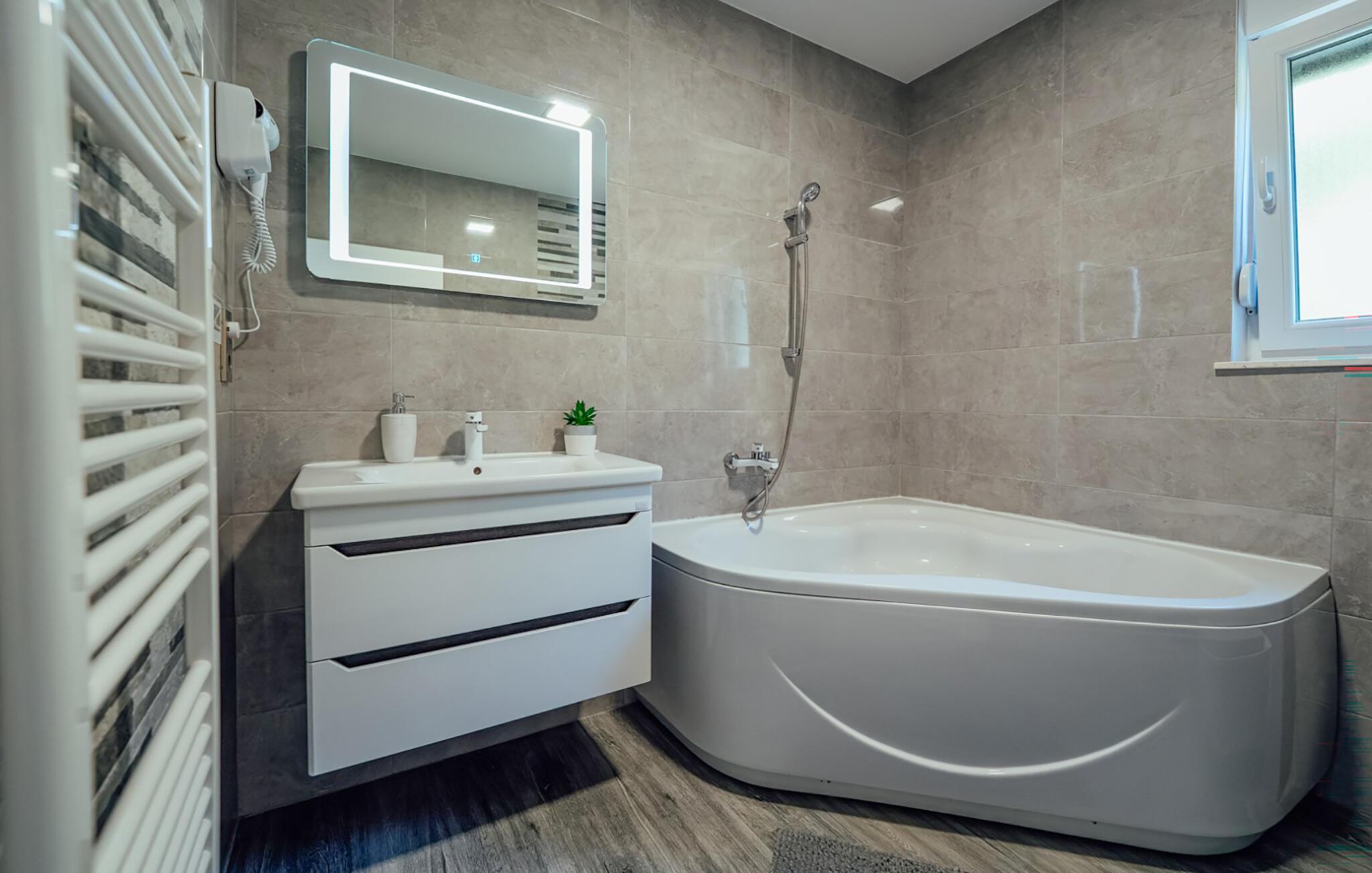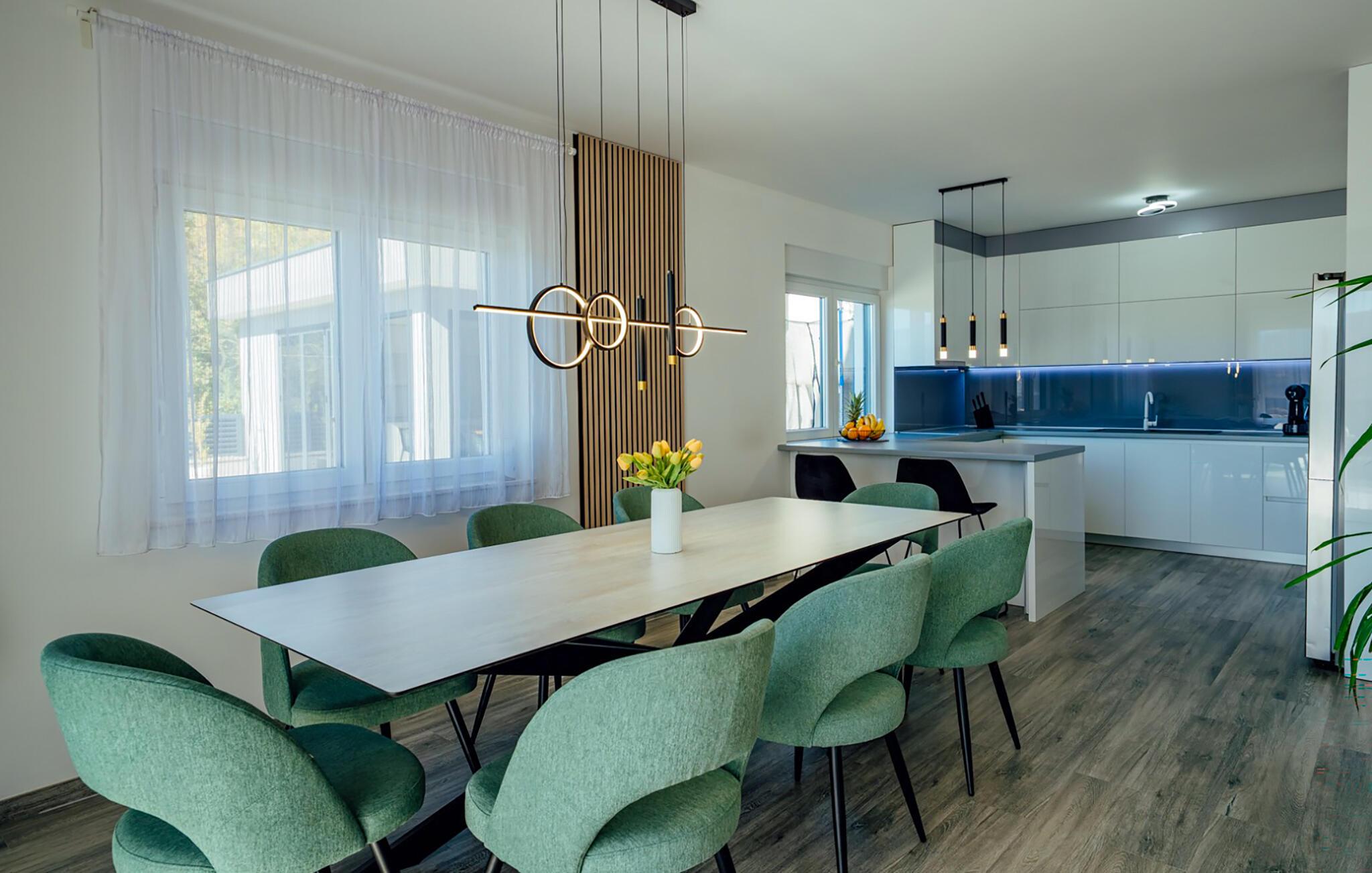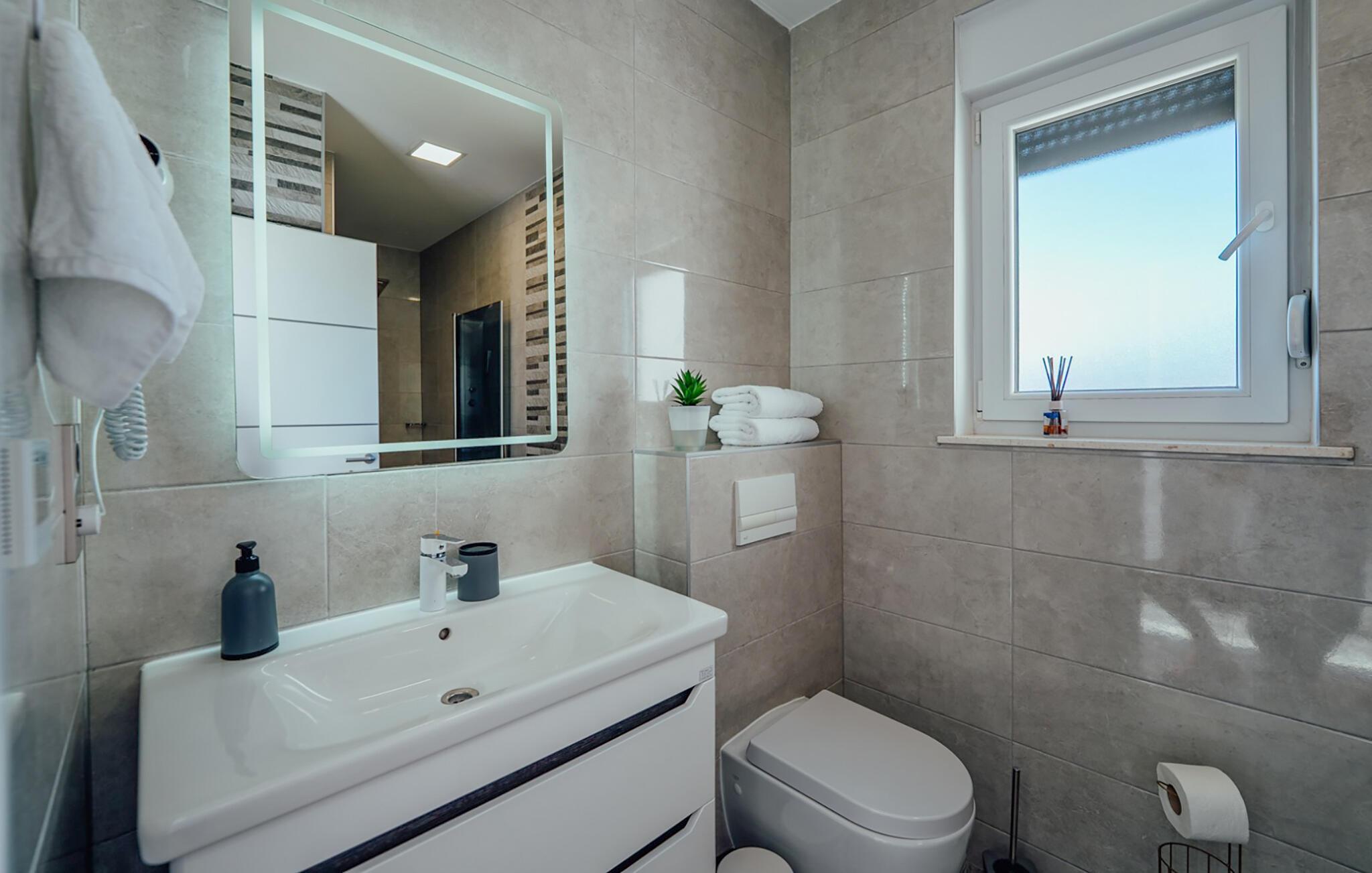 Dette skønne feriehus ligger i Mellemdalmatiens bagland, ikke langt fra centrum i Imotski og kun 700 meter fra de smukke søer: den røde og den blå. I haven ligger den store pool, til svømmeture og vandlege og lige ved siden af ligger legepladsen, sommerkøkken med grill og aktivitetsrum med forskellige underholdningsmuligheder. På første sal ligger soveværelserne. Feriehuset har klimaanlæg overalt og har flere terrasser, hvorfra der er en vidunderlig udsigt over de omkringliggende marker og naturparken Biokovo. Her er der utroligt meget at se og opleve, herlige søer, en flod og kulinariske specialiteter i de utallige taverner og restauranter i nærheden. Tag på afslappede badeudflugter ved de skønne kiesstrande ved Makarskas riviera og også besøge Split, Omiš, pilgrimsbyen Medugorje og Mostar.